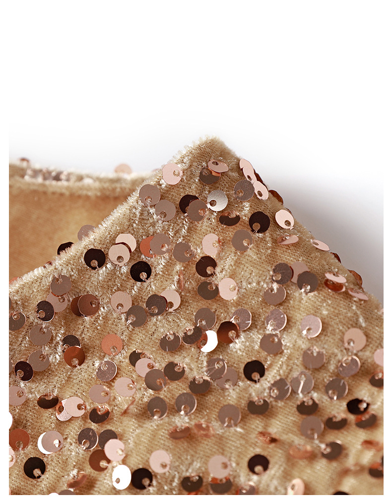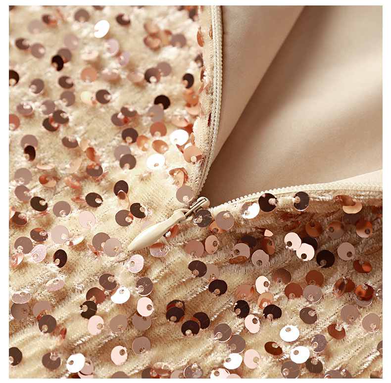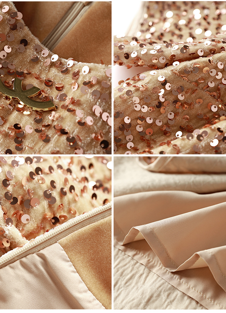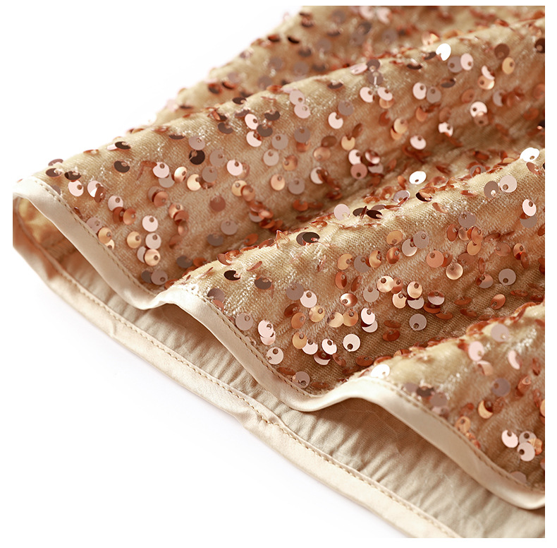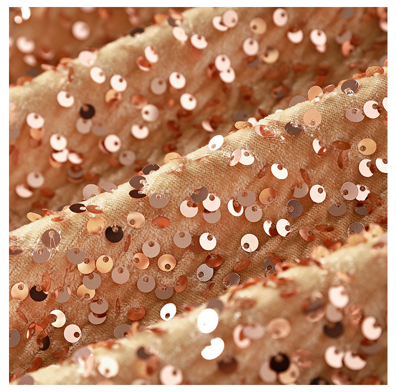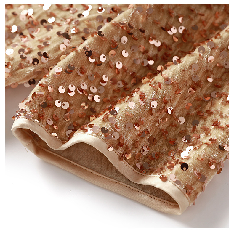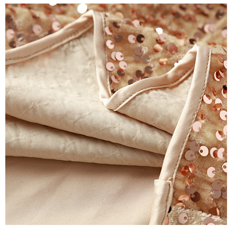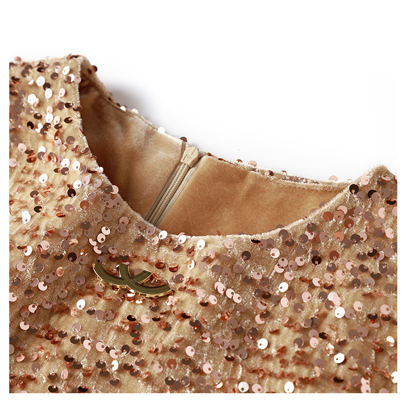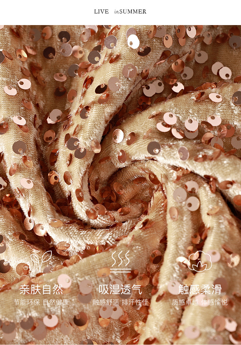 宽松显瘦,重工圆领净色丝绒亮片连衣裙WLZD-2307305