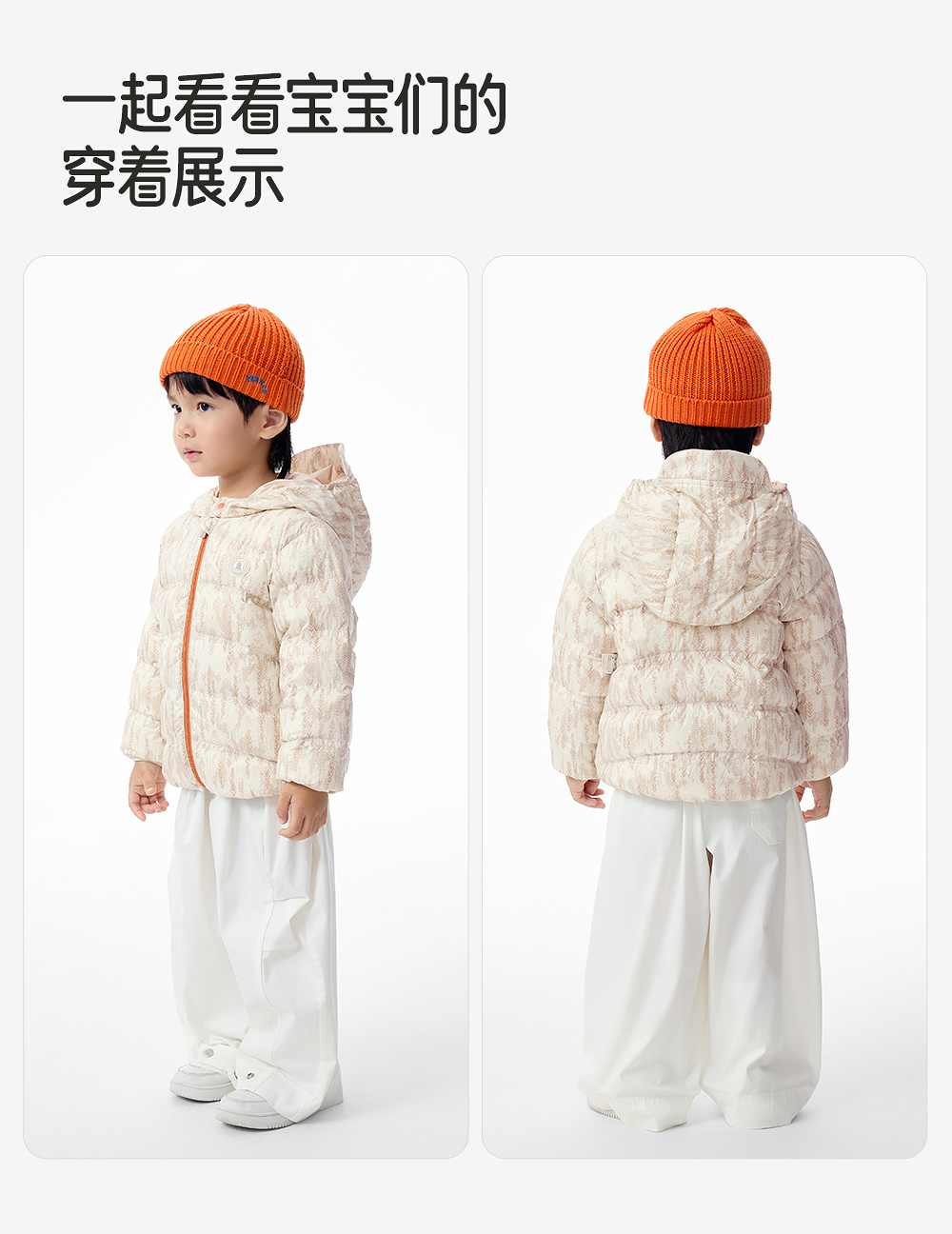 【商场同款】英氏童装秋冬季保暖防寒羽绒服男童外套连帽羽绒上衣超韧绒