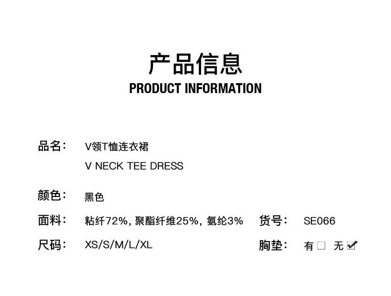 【新品】V领T恤连衣裙/V NECK TEE DRESS