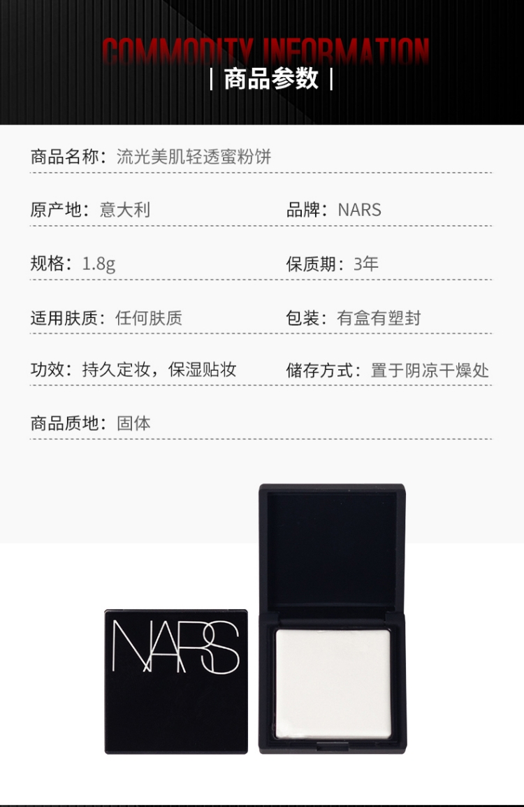 【门店直发】Nars娜斯流光美肌清透蜜粉饼3g纳斯大白饼小样定妆