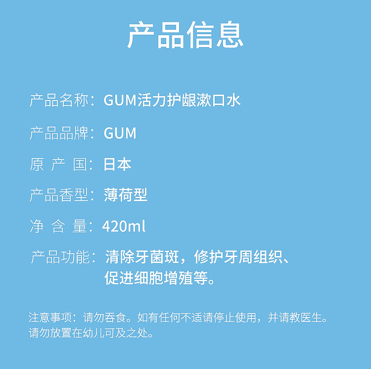 【品牌直发】包邮!GUM日本进口牙周护理漱口水450ml/900ml