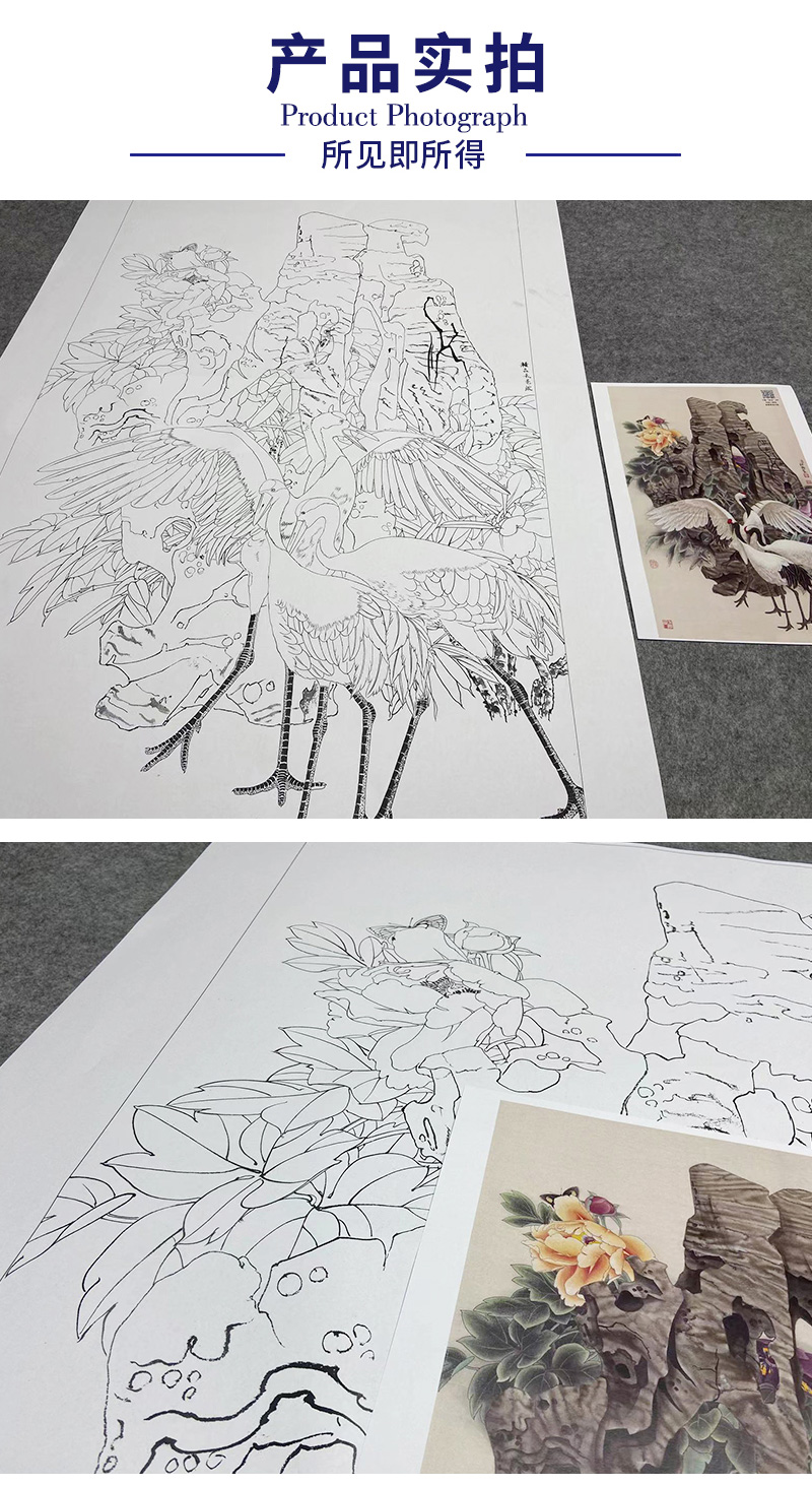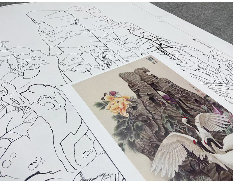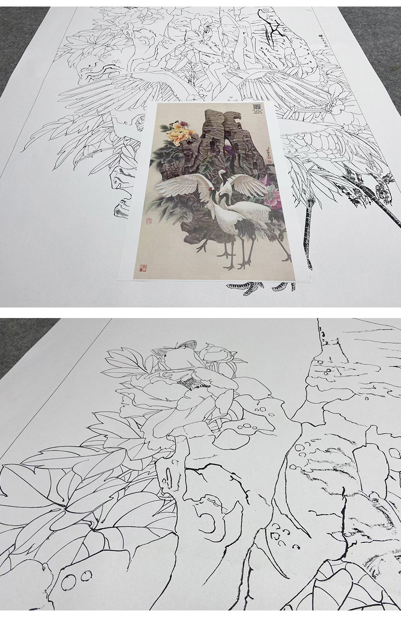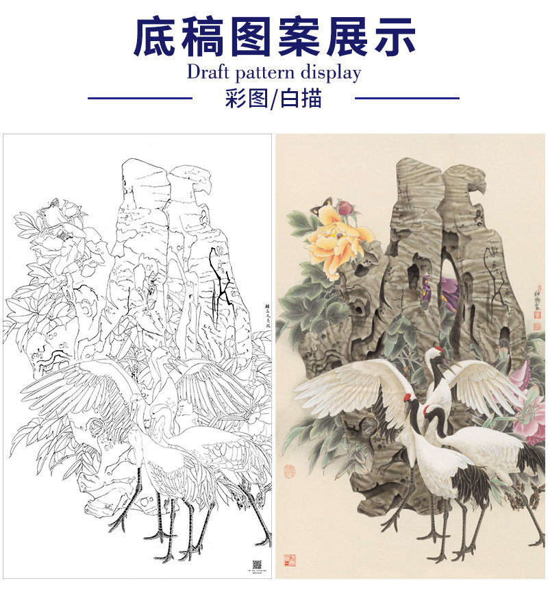 【大彩图】窦绅卿工笔画白描底稿《吉瑞图》仙鹤临摹勾线花鸟线稿HN11