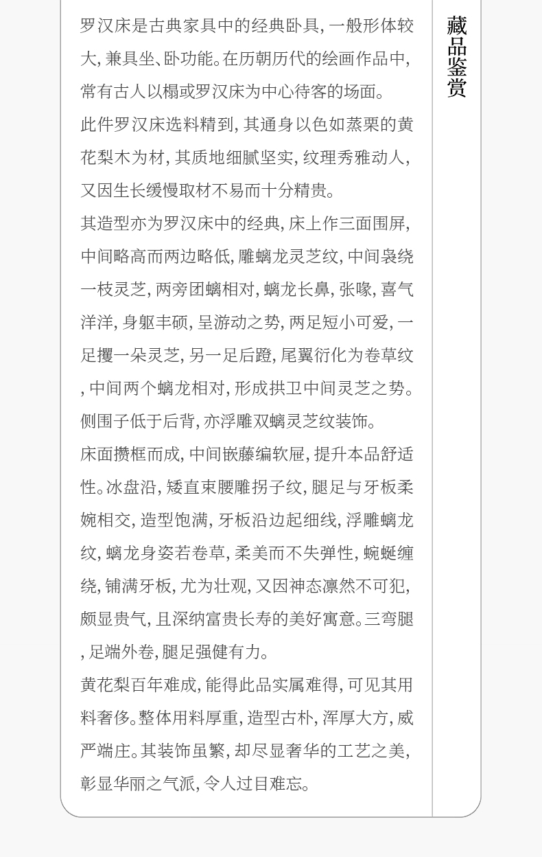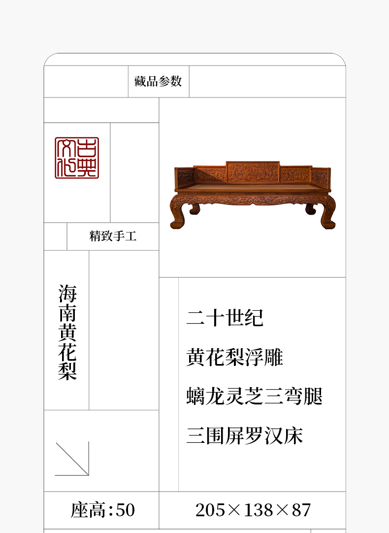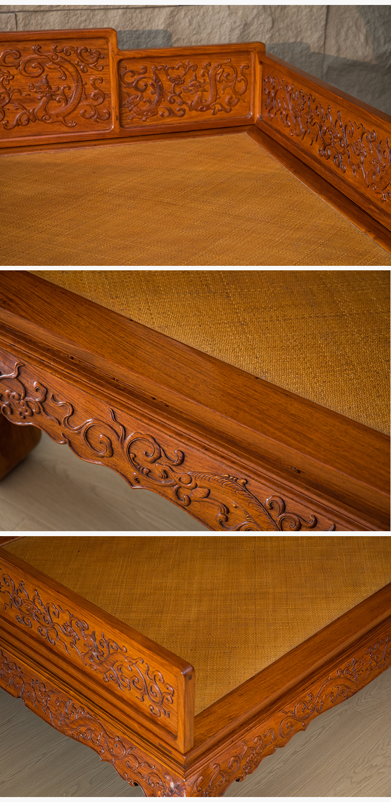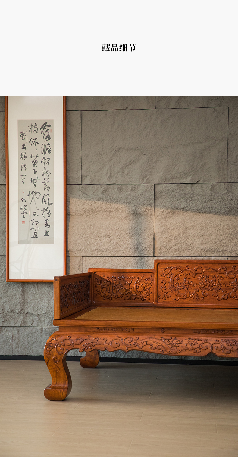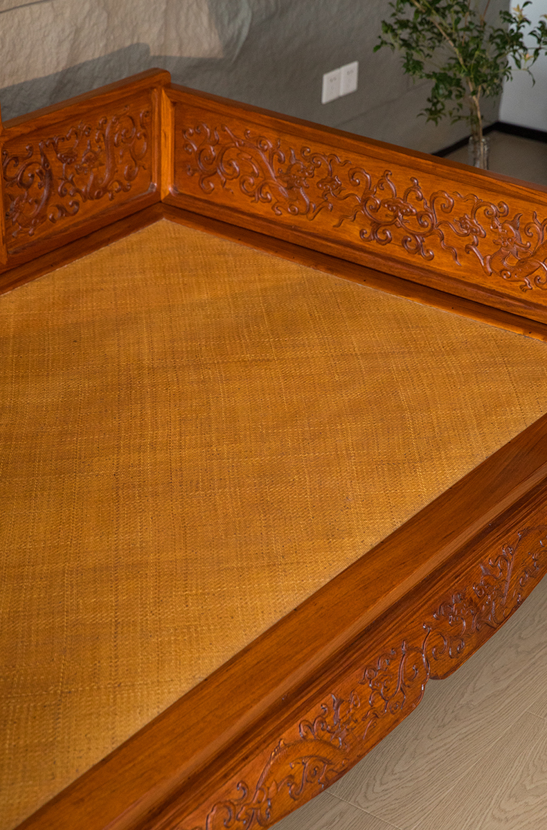 二十世纪 黄花梨浮雕螭龙灵芝三弯腿三围屏罗汉床