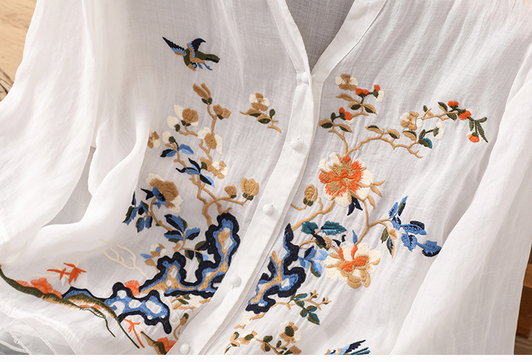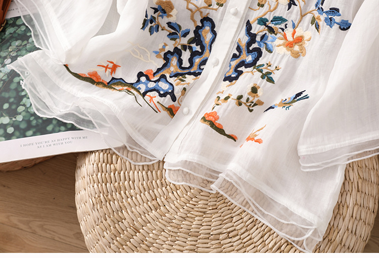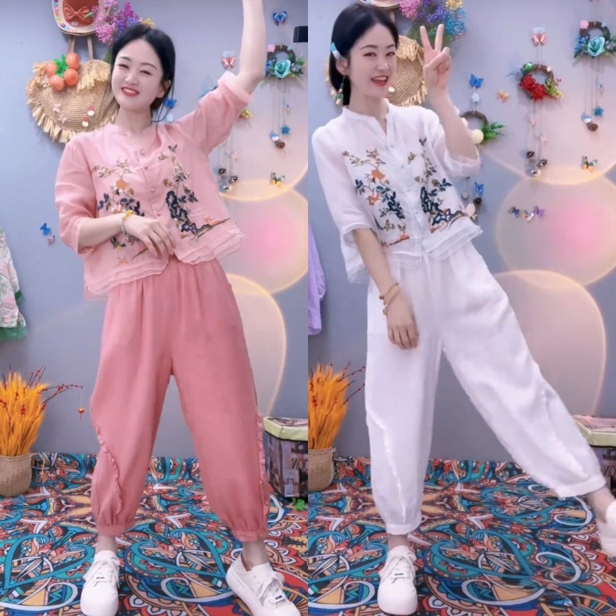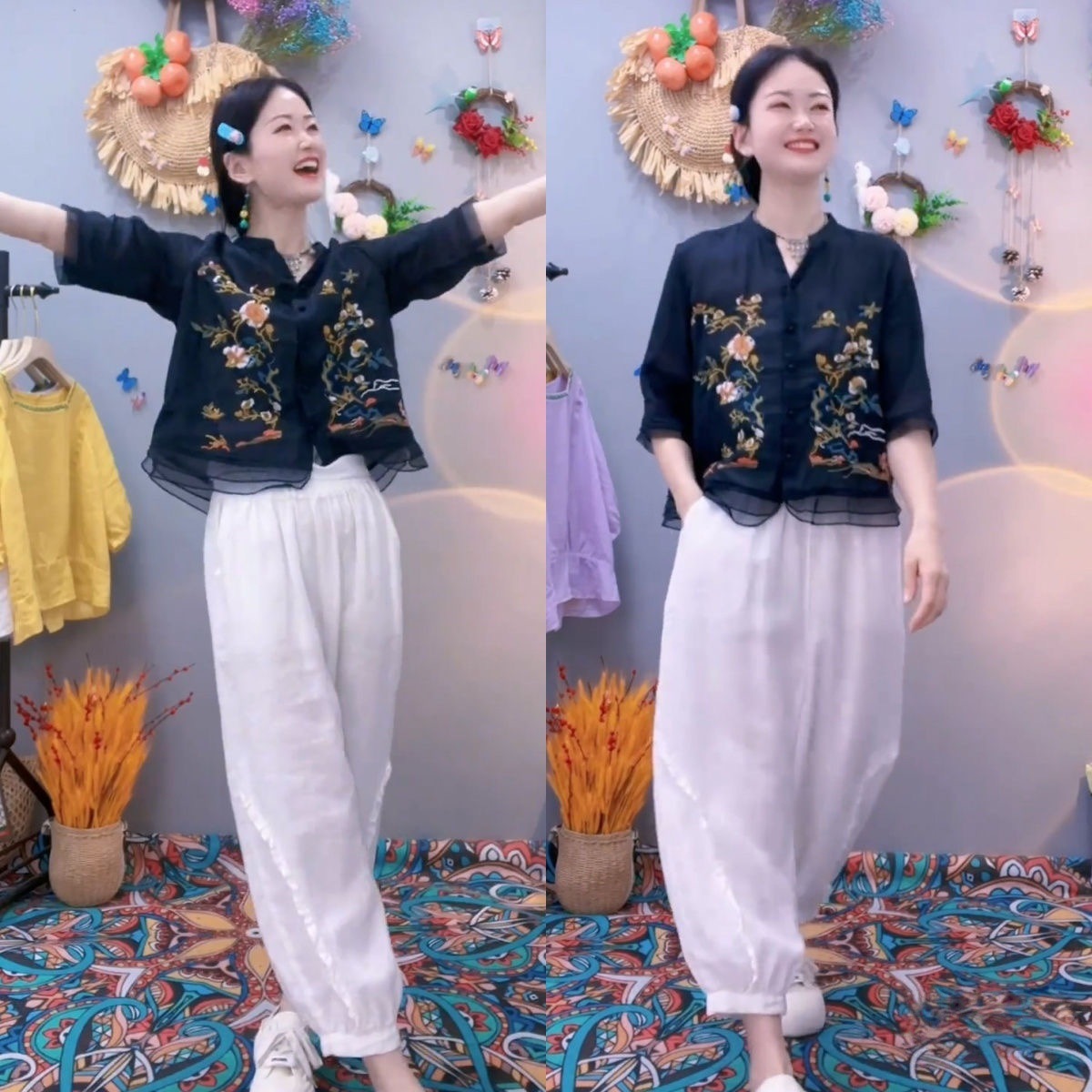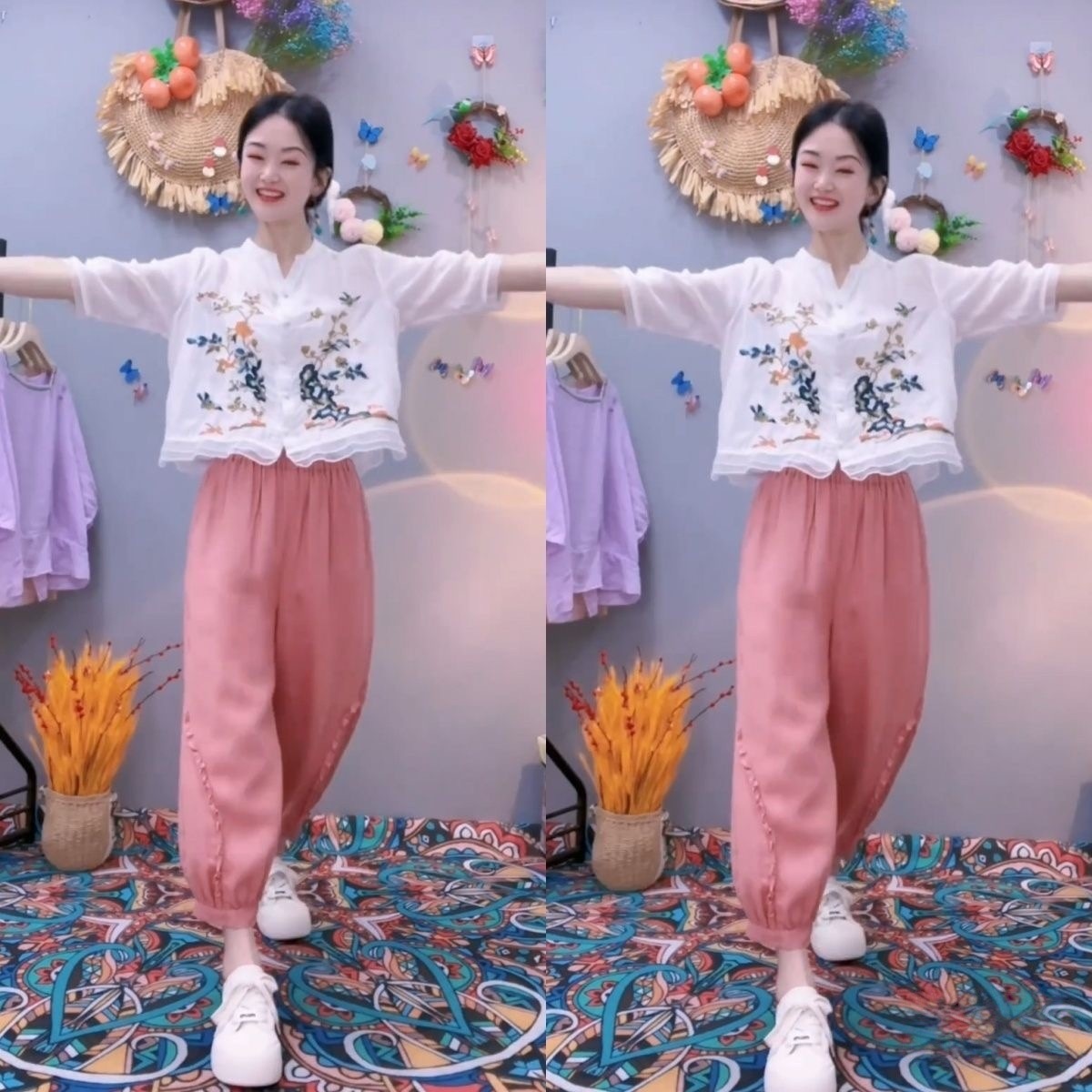 ZWD155476976 2025夏季新款绣花文艺复古包扣中式衬衣小衫加灯笼裤两件套装