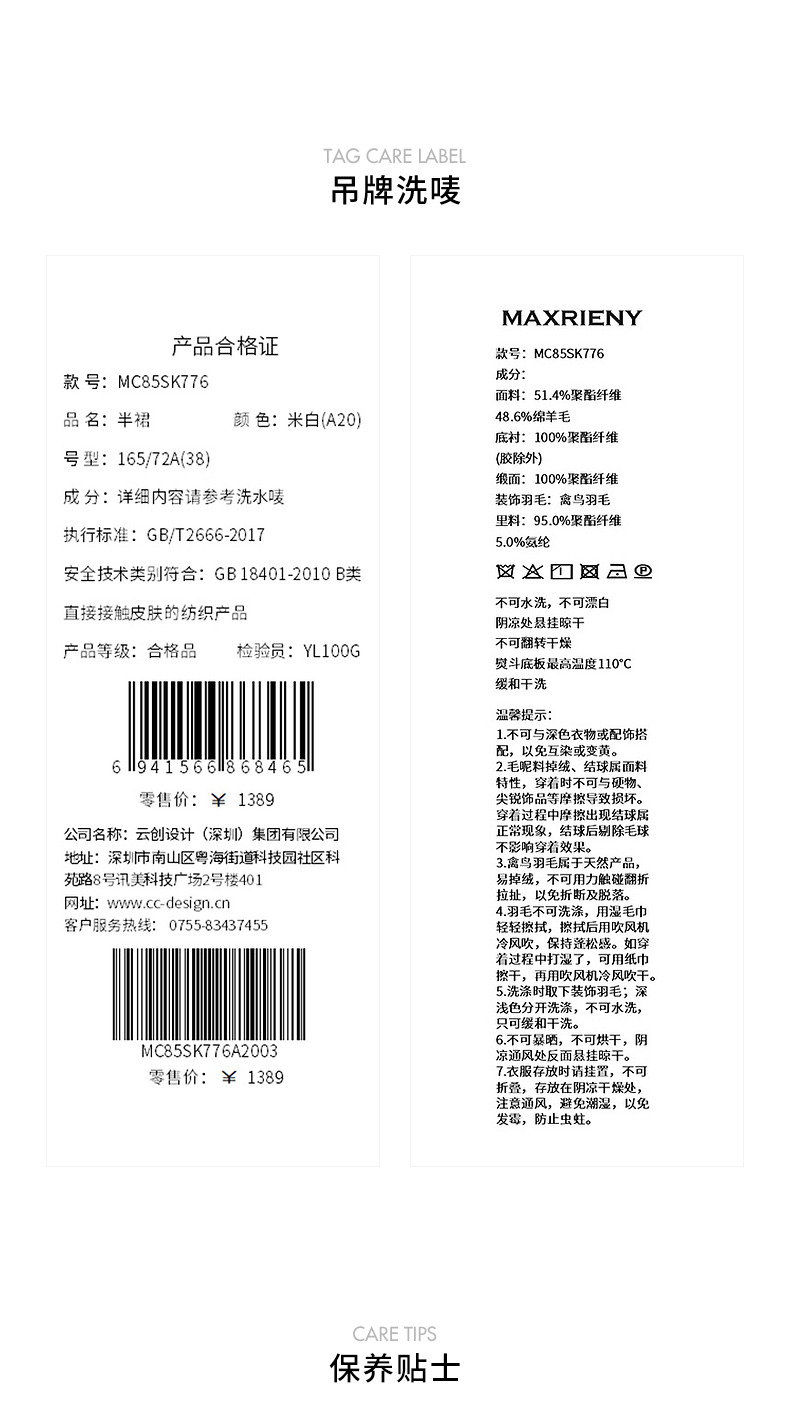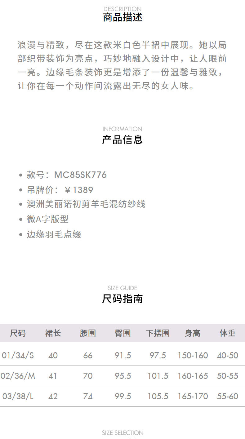 【商场同款】MAXRIENY精致浪漫感高腰a字半身短裙(货号:MC85SK776)