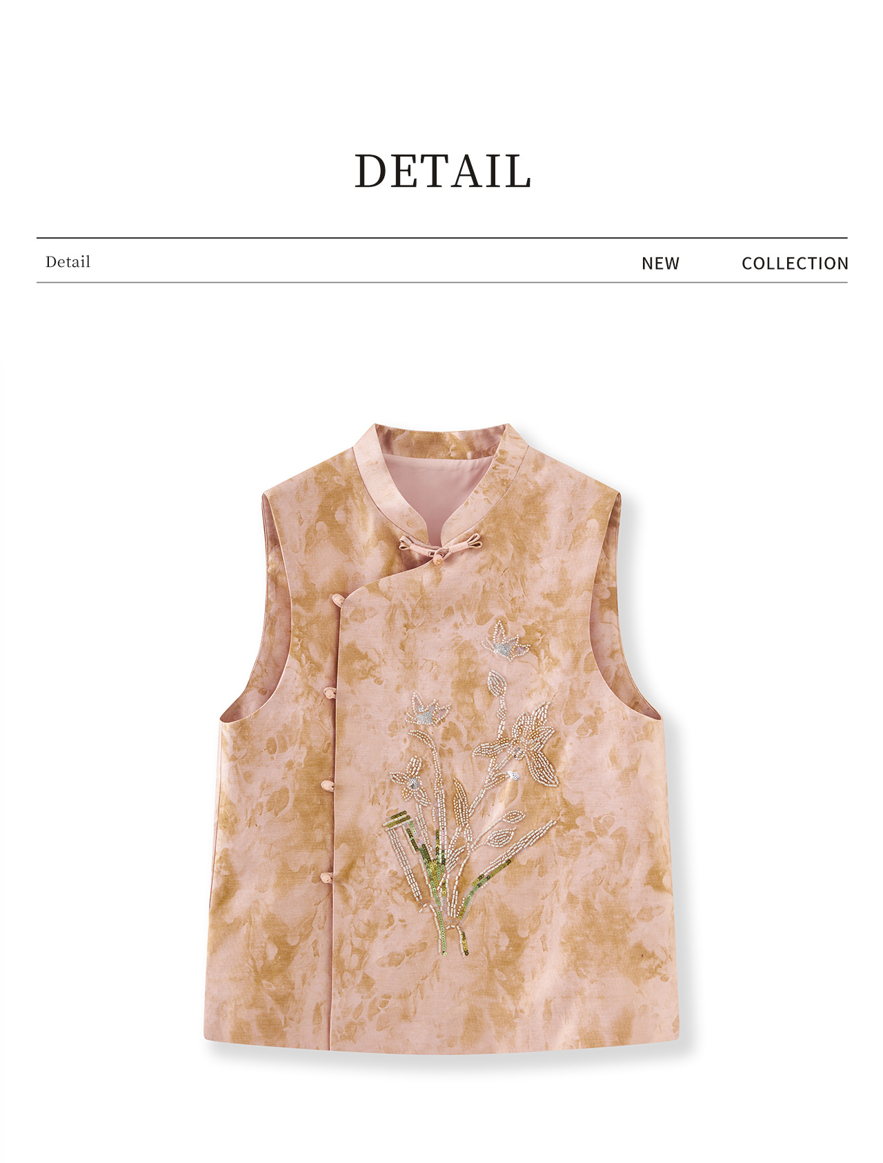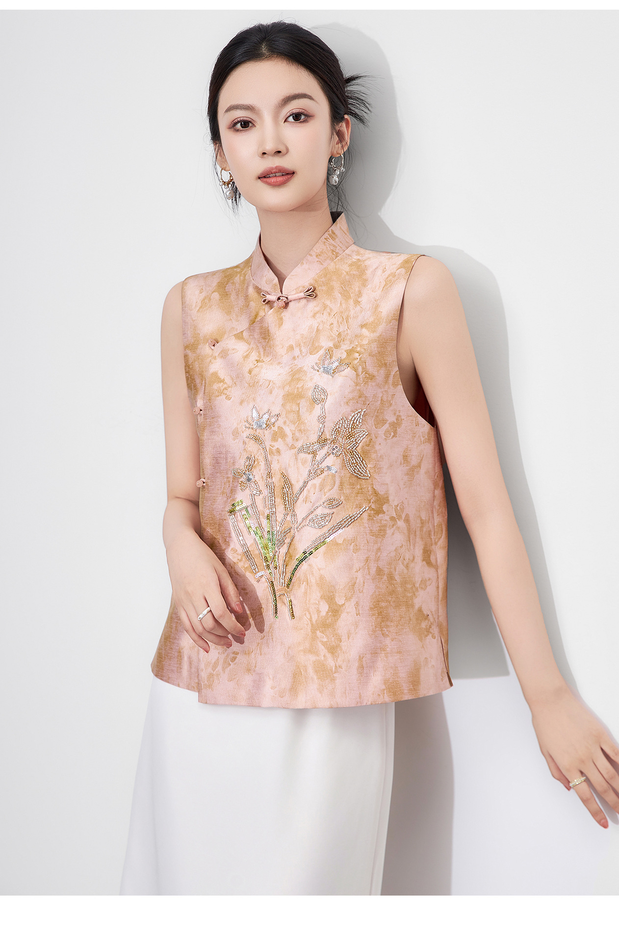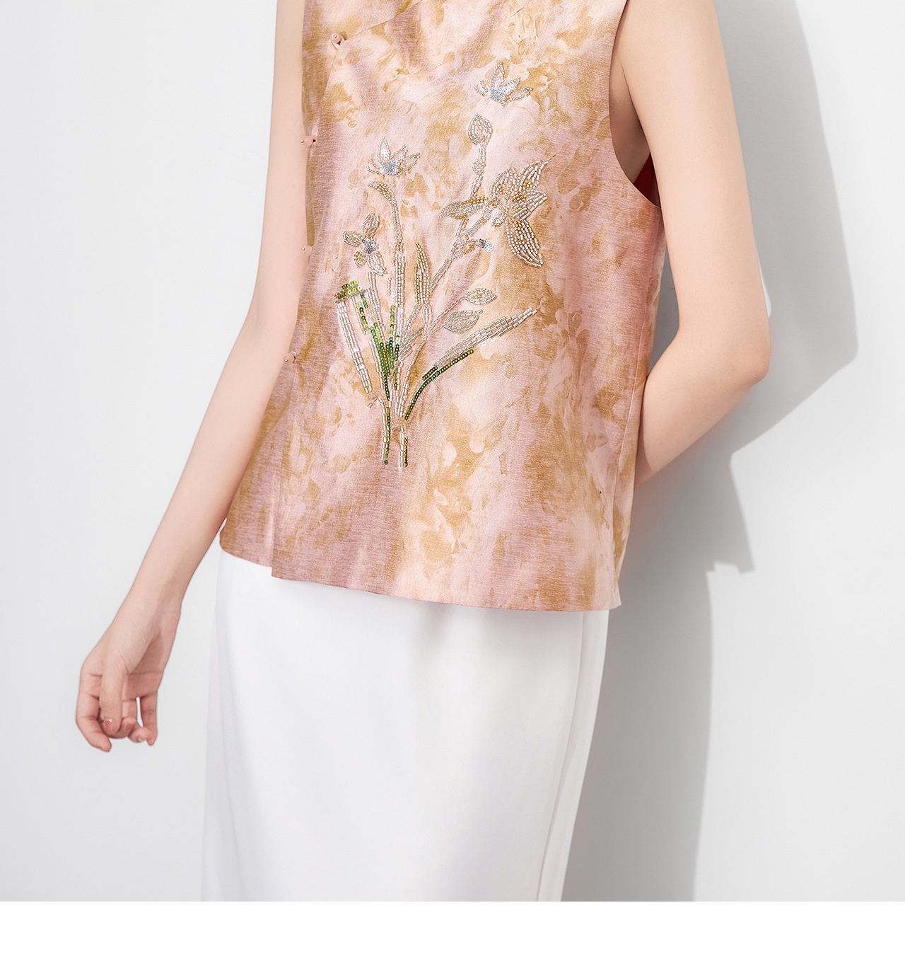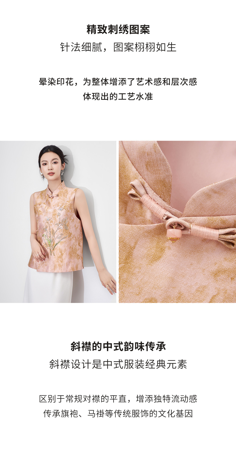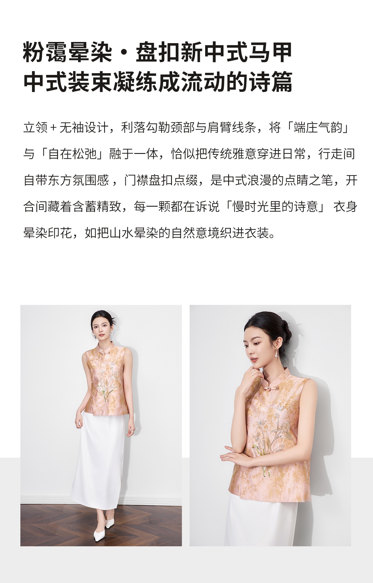「高货wl」全新升级【铂金会员339/天猫459/差价120】(44102)洛诗琳气质晕染印花国风上衣2025秋季新中式立领马甲上衣