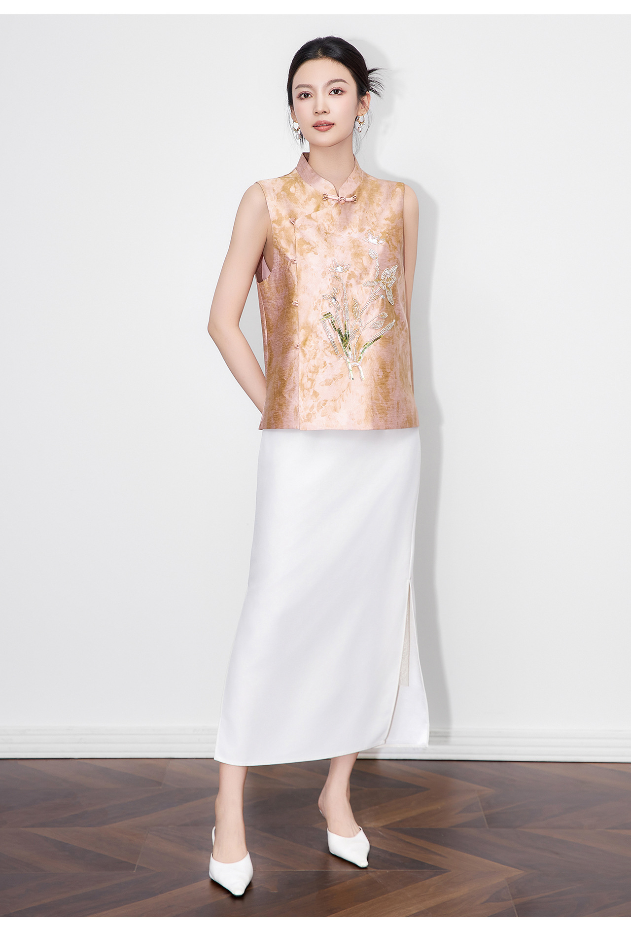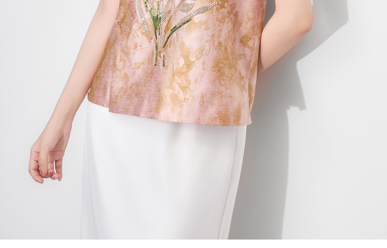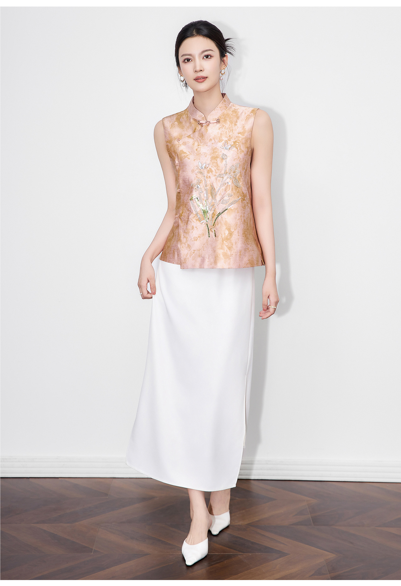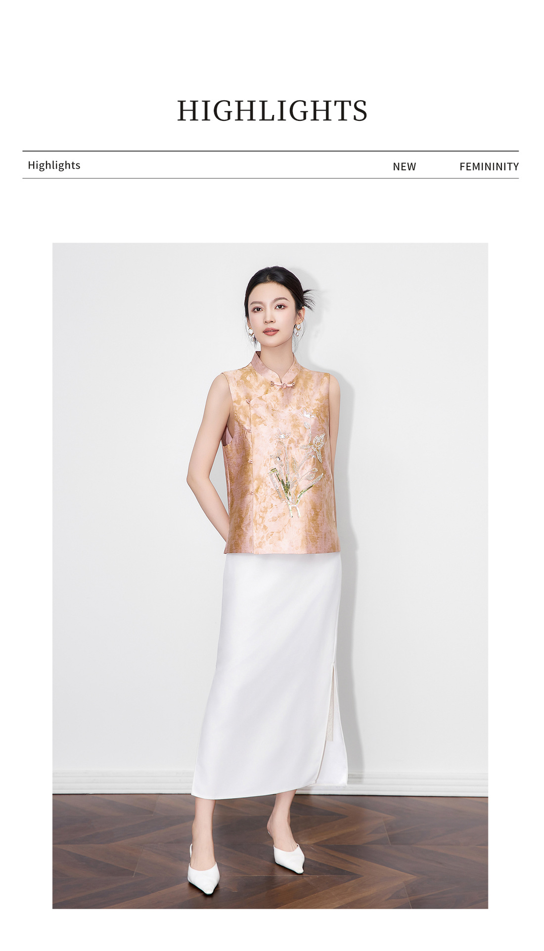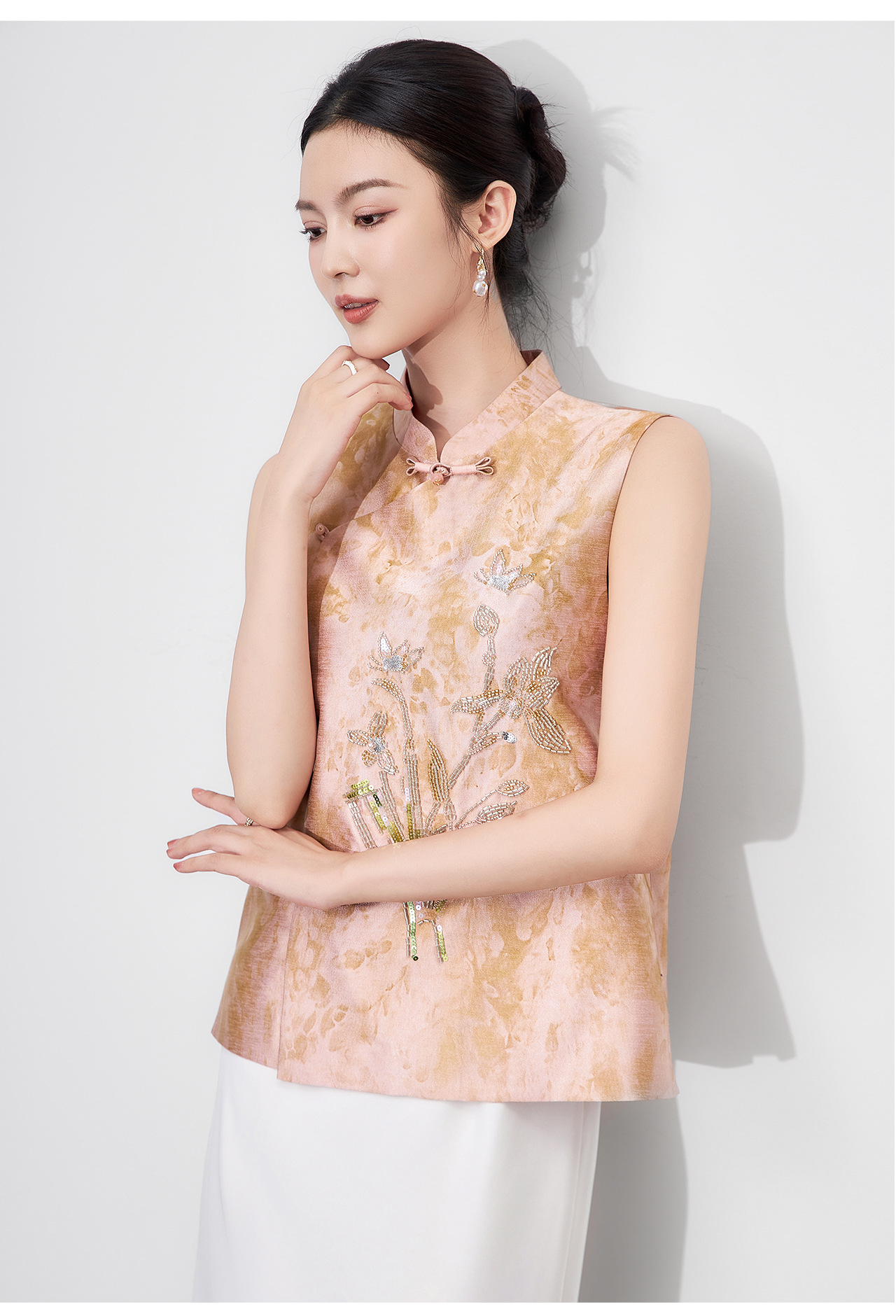 「高货wl」全新升级【铂金会员339/天猫459/差价120】(44102)洛诗琳气质晕染印花国风上衣2025秋季新中式立领马甲上衣