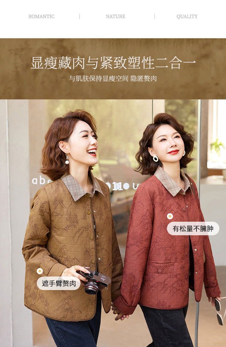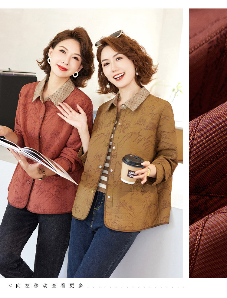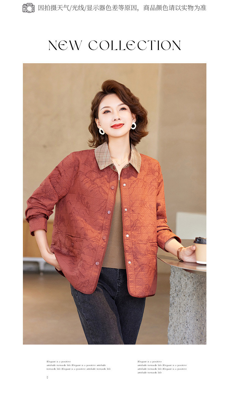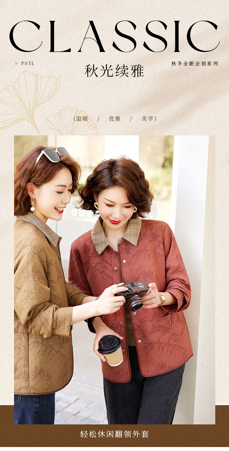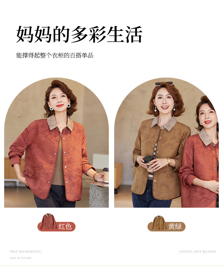 WP-2509 2025中年妈妈春装洋气翻领外套阔太太风衣中老年女装春秋短款夹克