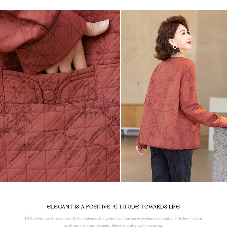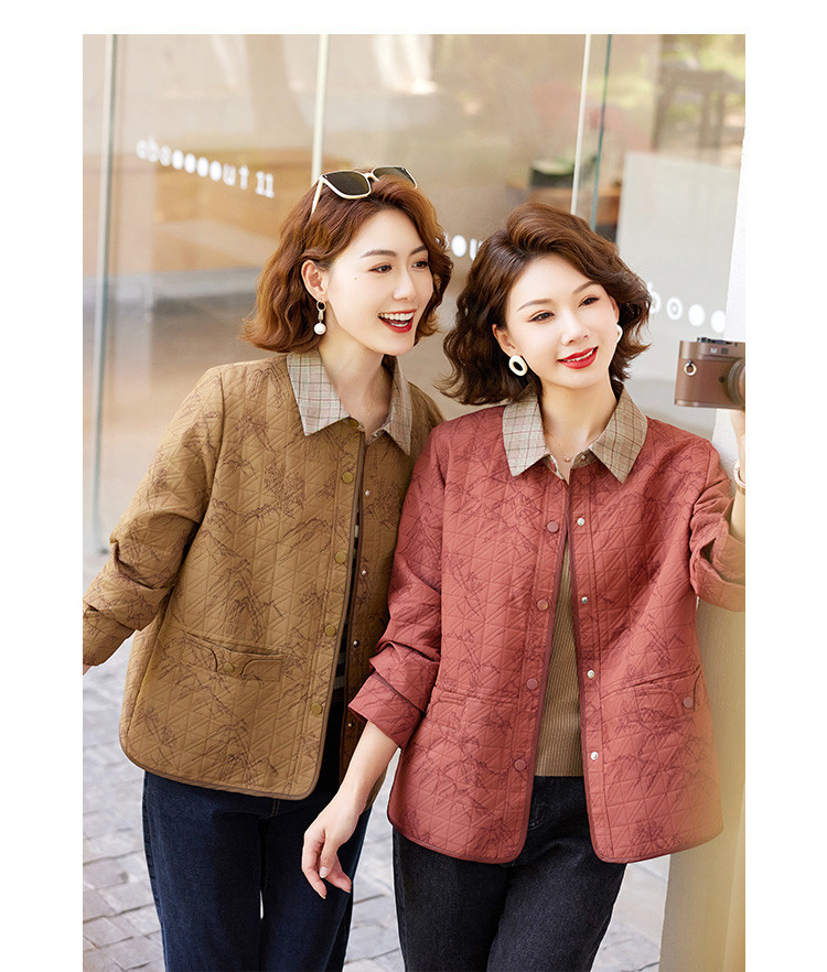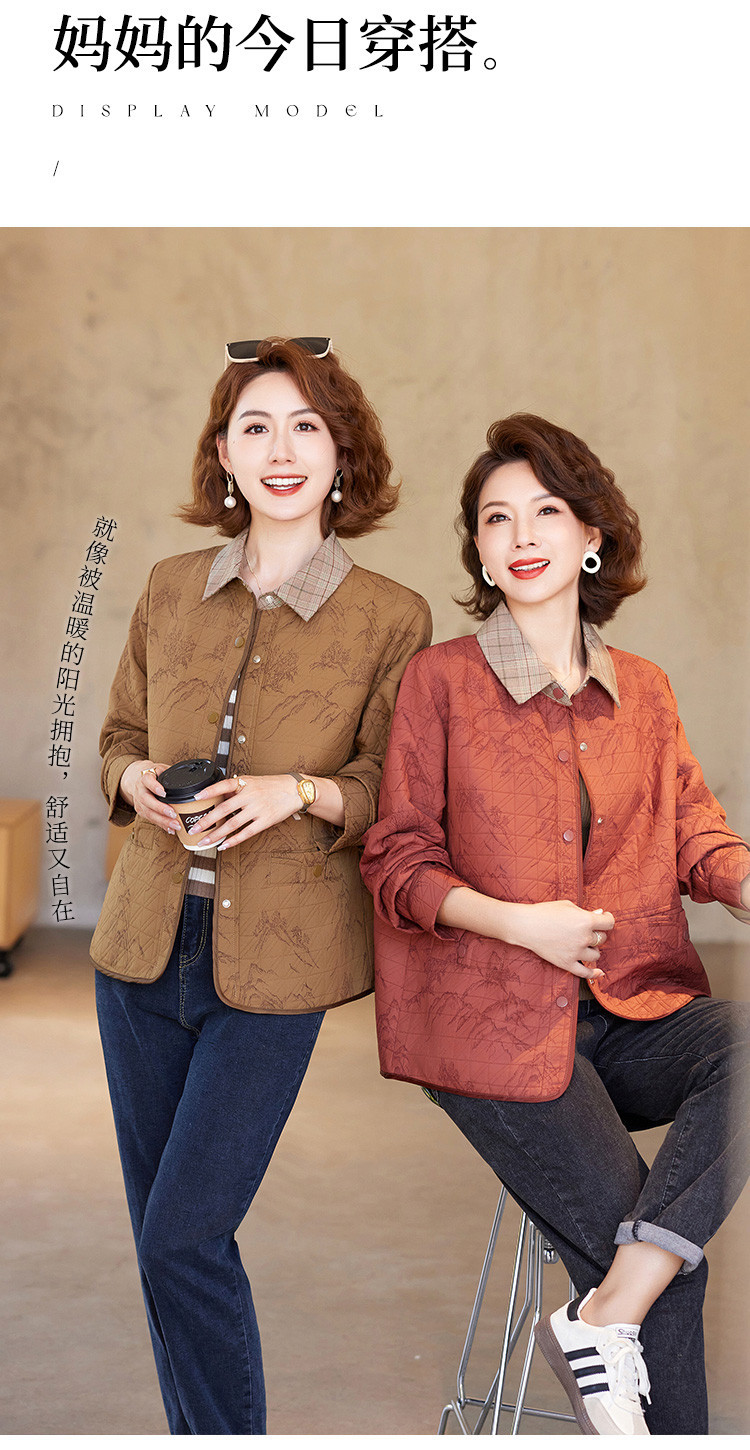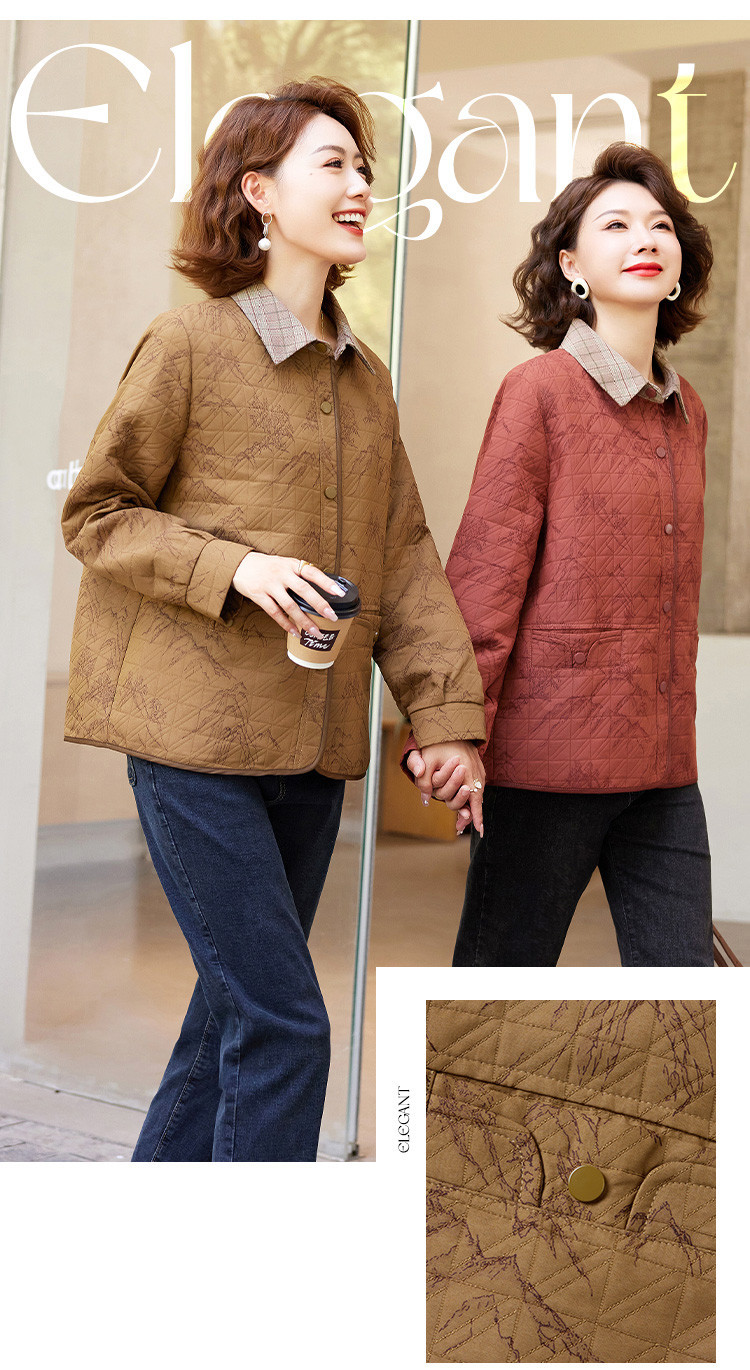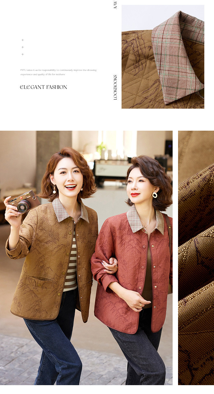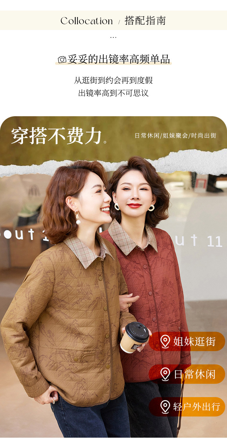 WP-2509 2025中年妈妈春装洋气翻领外套阔太太风衣中老年女装春秋短款夹克