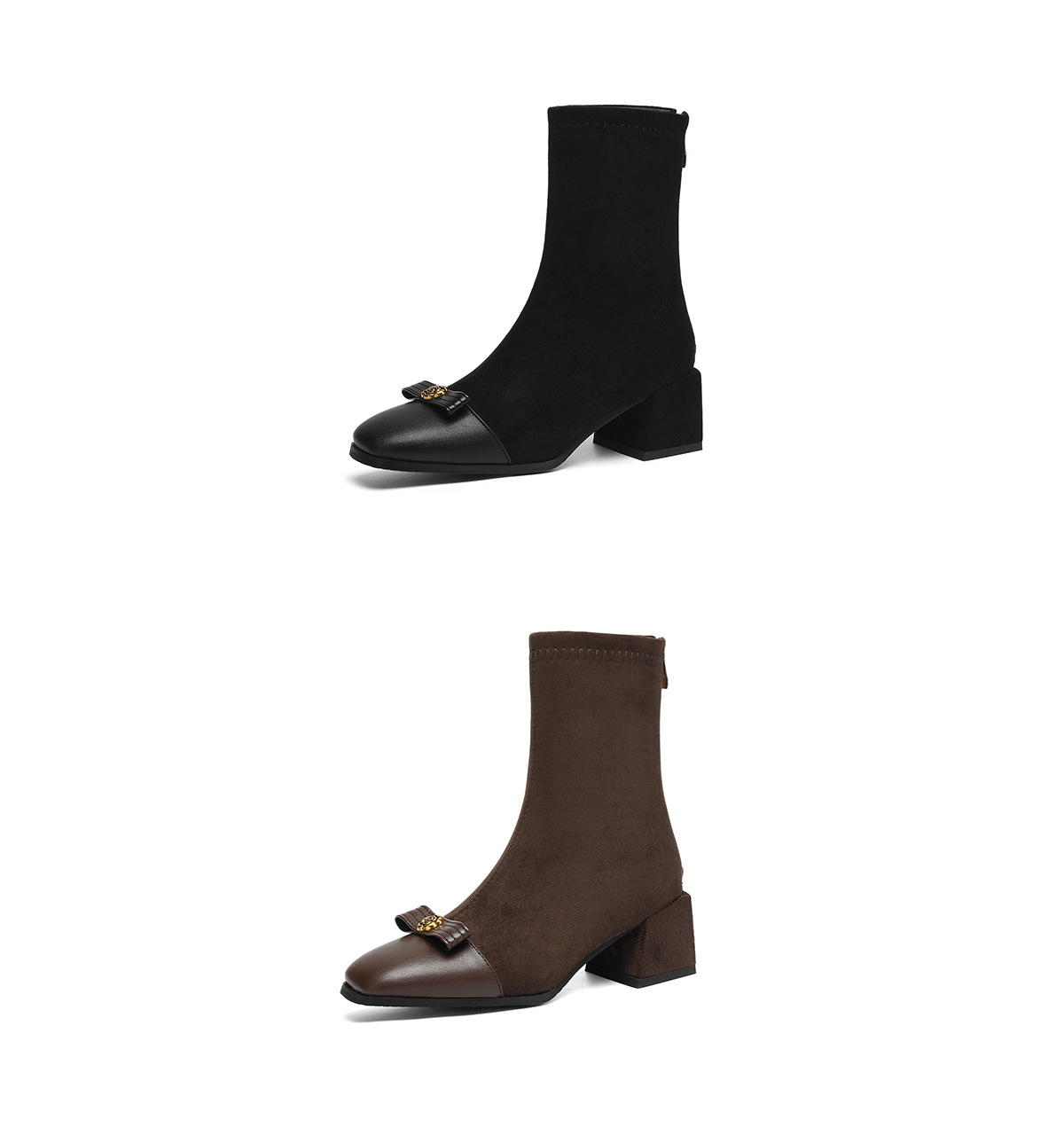 YLY&8965-9法式方头瘦瘦靴女2025秋冬新款粗跟中跟弹力靴百搭山茶花女靴复古 商品图1