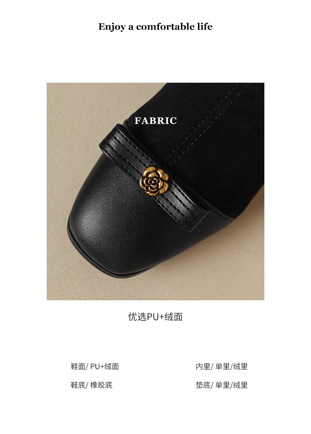 YLY&8965-9法式方头瘦瘦靴女2025秋冬新款粗跟中跟弹力靴百搭山茶花女靴复古 商品图2