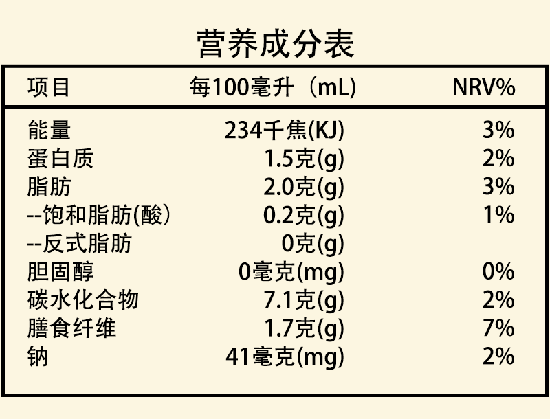 原味有机燕麦奶营养成分表