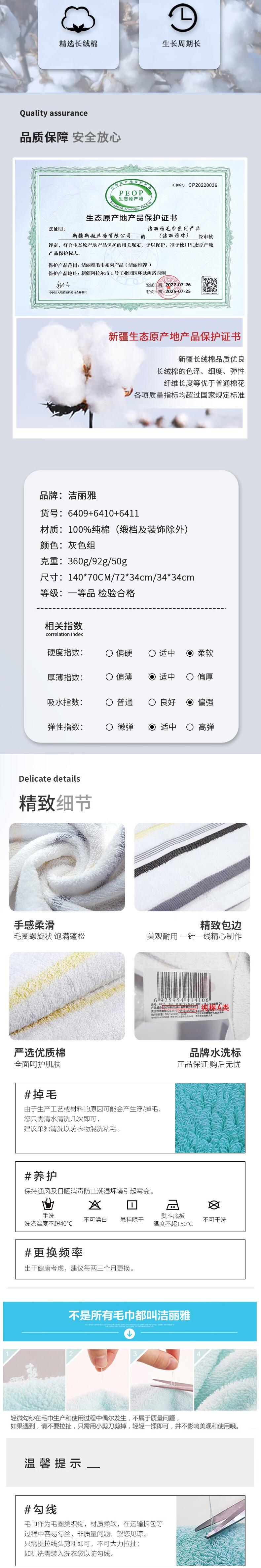 洁丽雅 纯棉浴巾面巾方巾三件套 641164106409