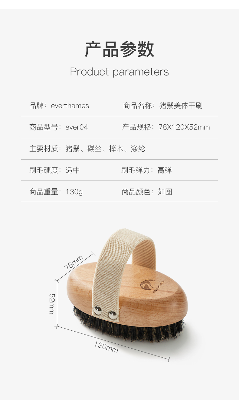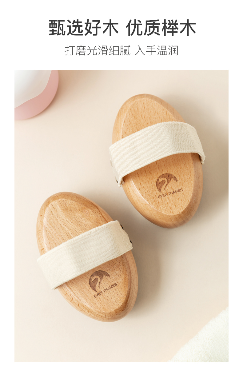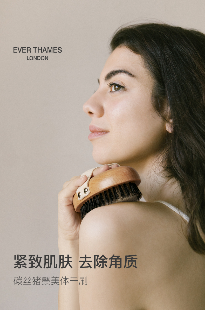EverThames身体刷干刷猪鬃毛沐浴洗澡刷子去角质按摩搓背刷磨砂膏搓澡刷子