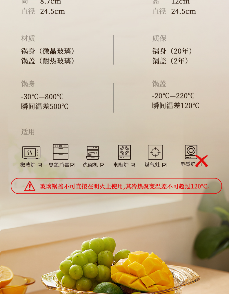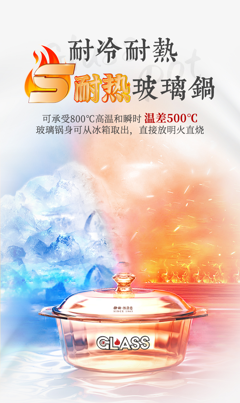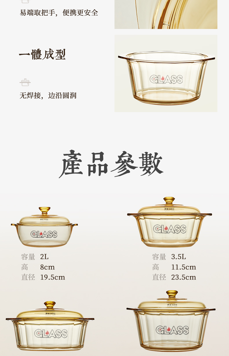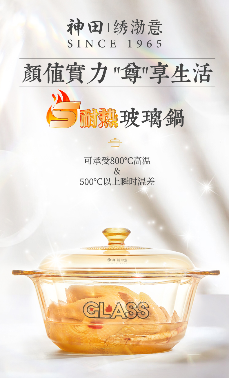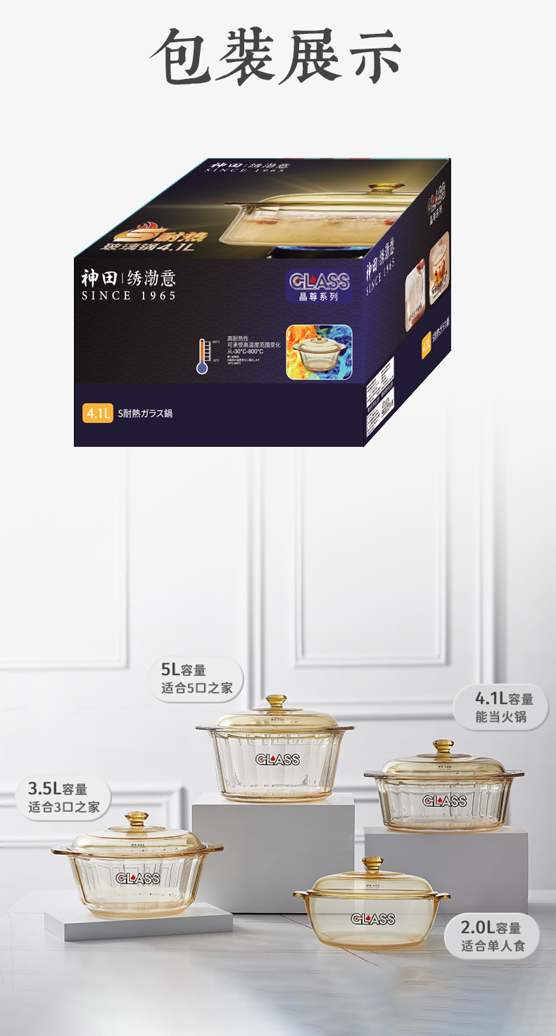 神田|绣渤意耐热玻璃锅 2L/ 3.5L /4.1L/ 5L