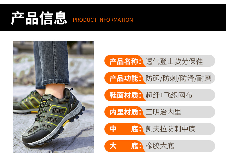 夏季款劳保鞋钢包头防砸防刺穿透气工作鞋