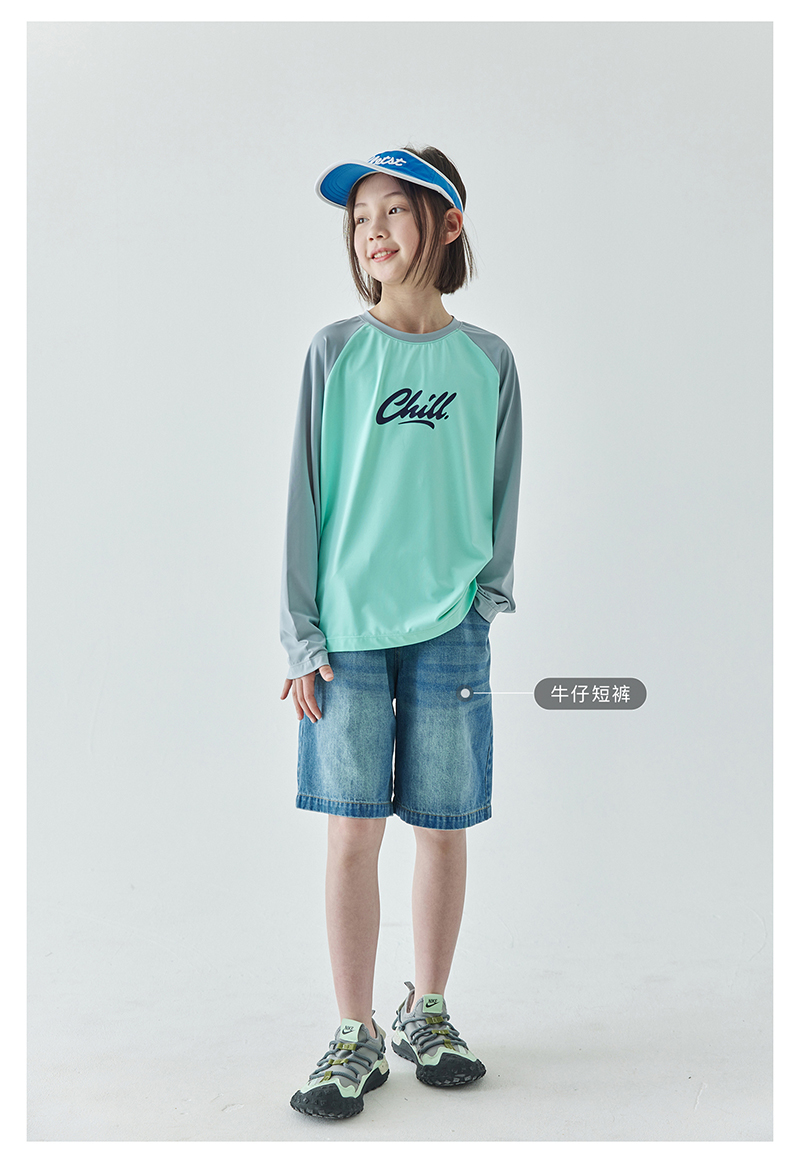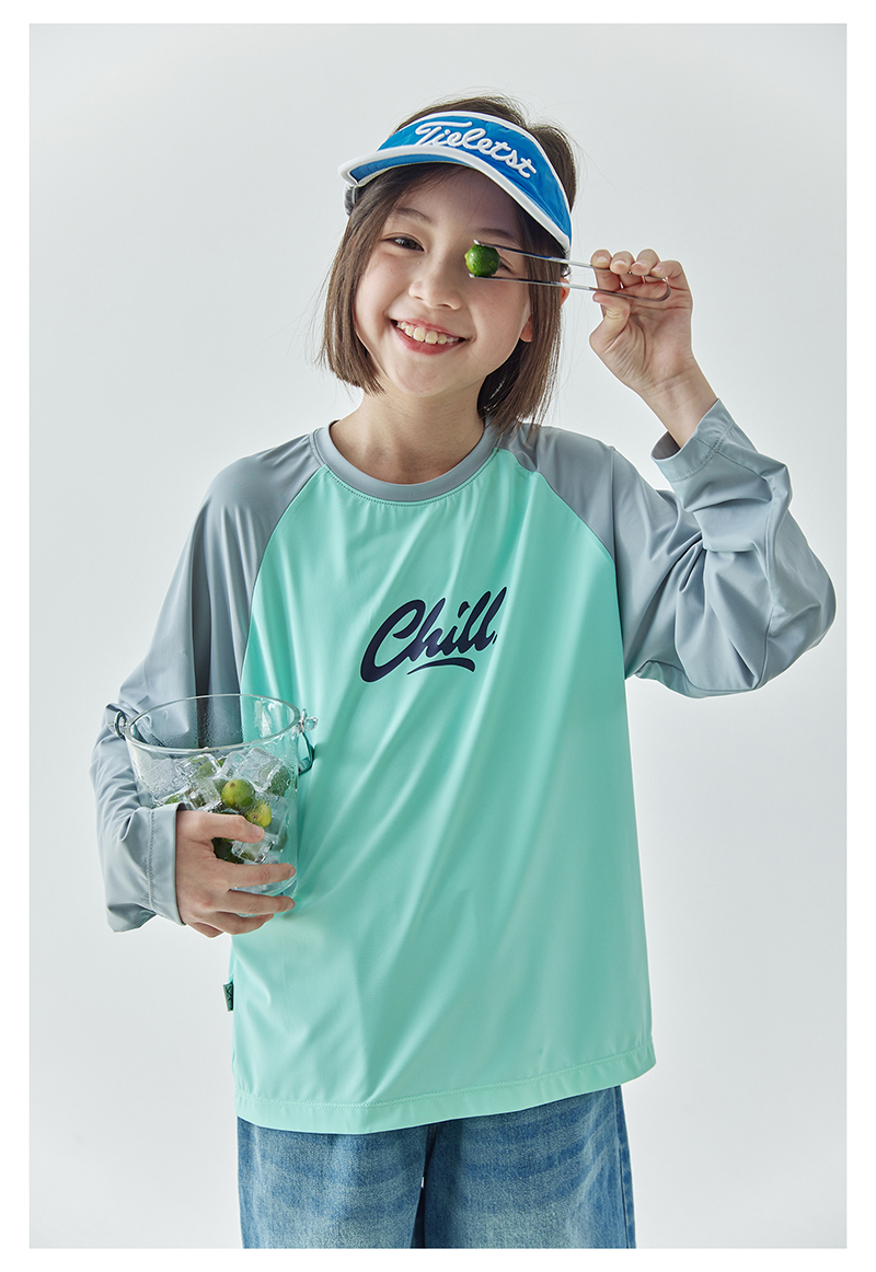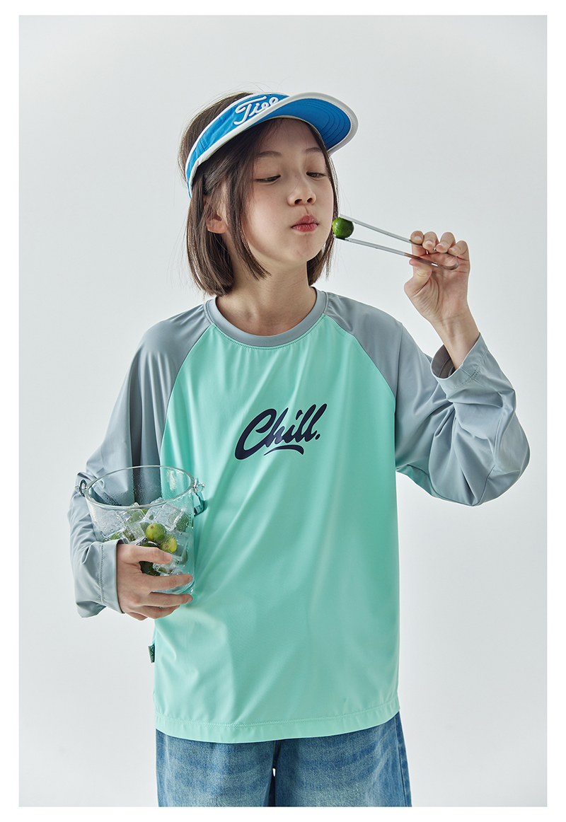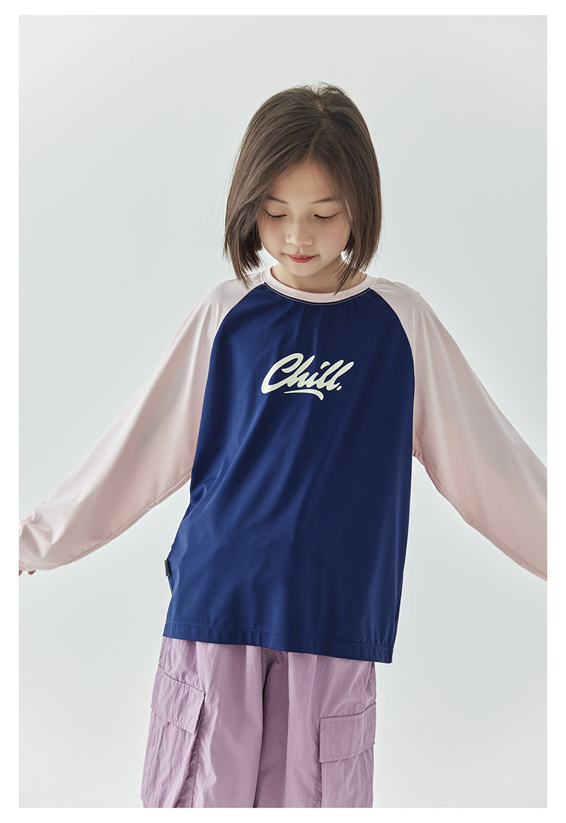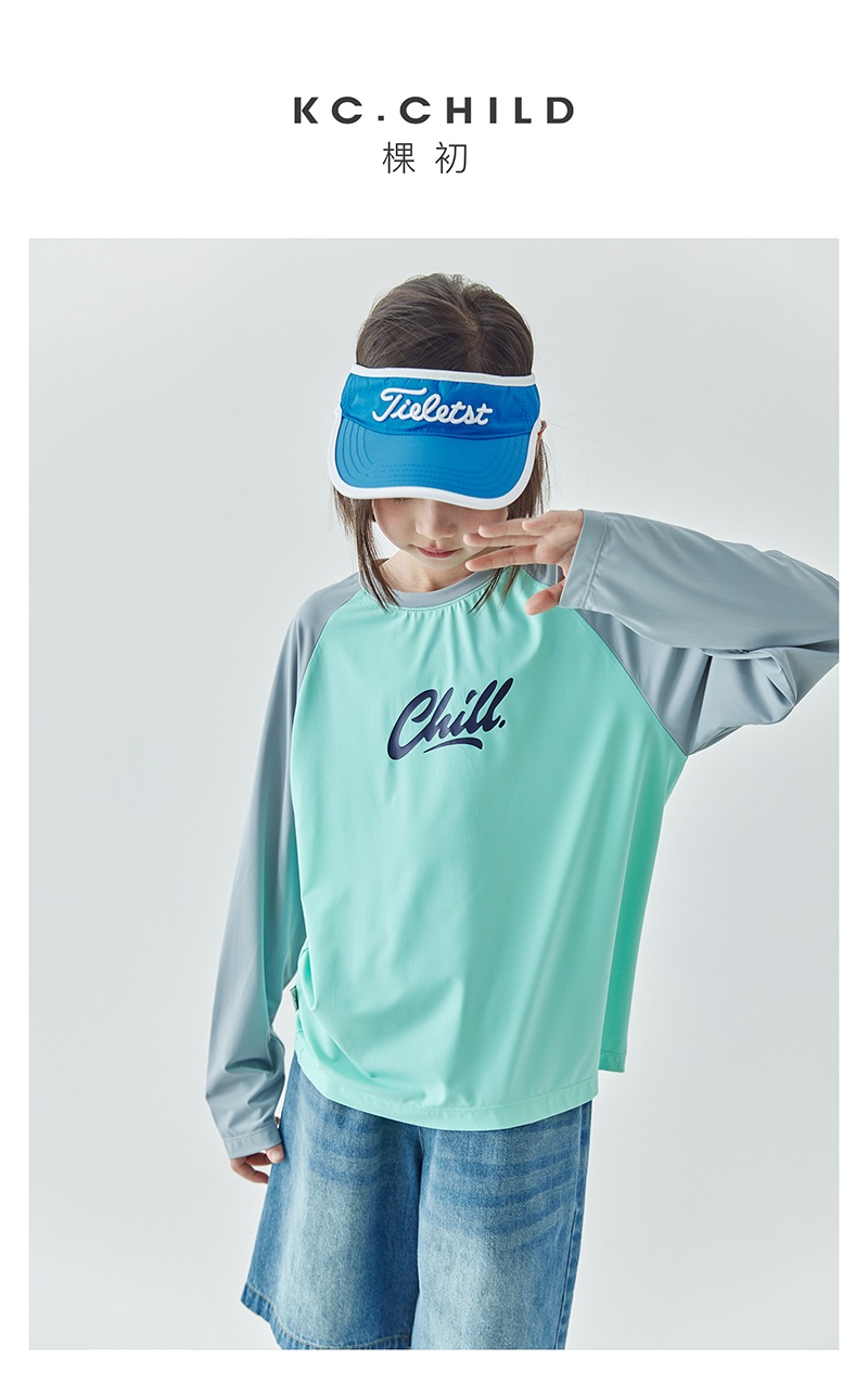 棵初夏季新款亲子凉感撞色插肩防晒T恤UPF50+儿童圆领长袖上衣