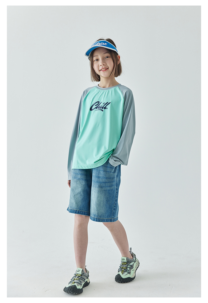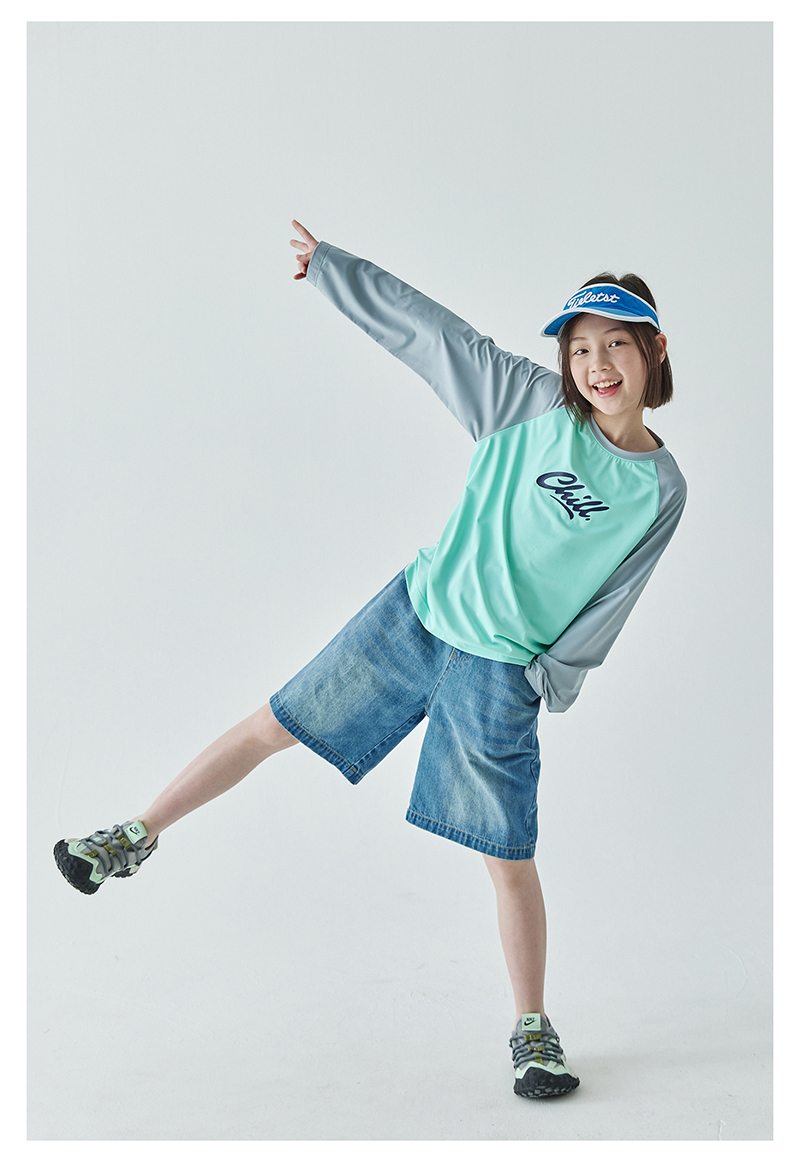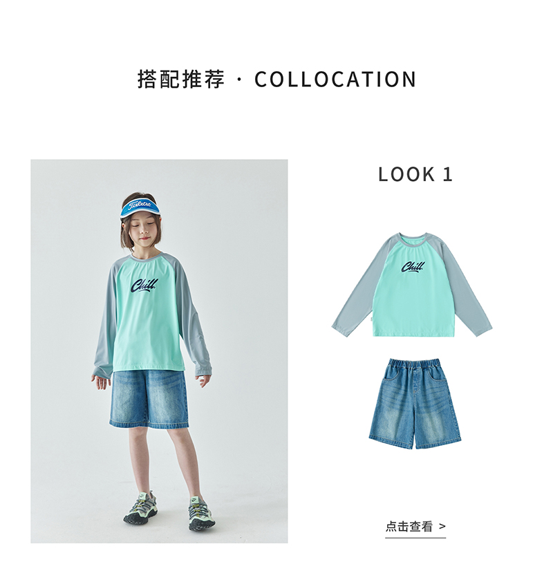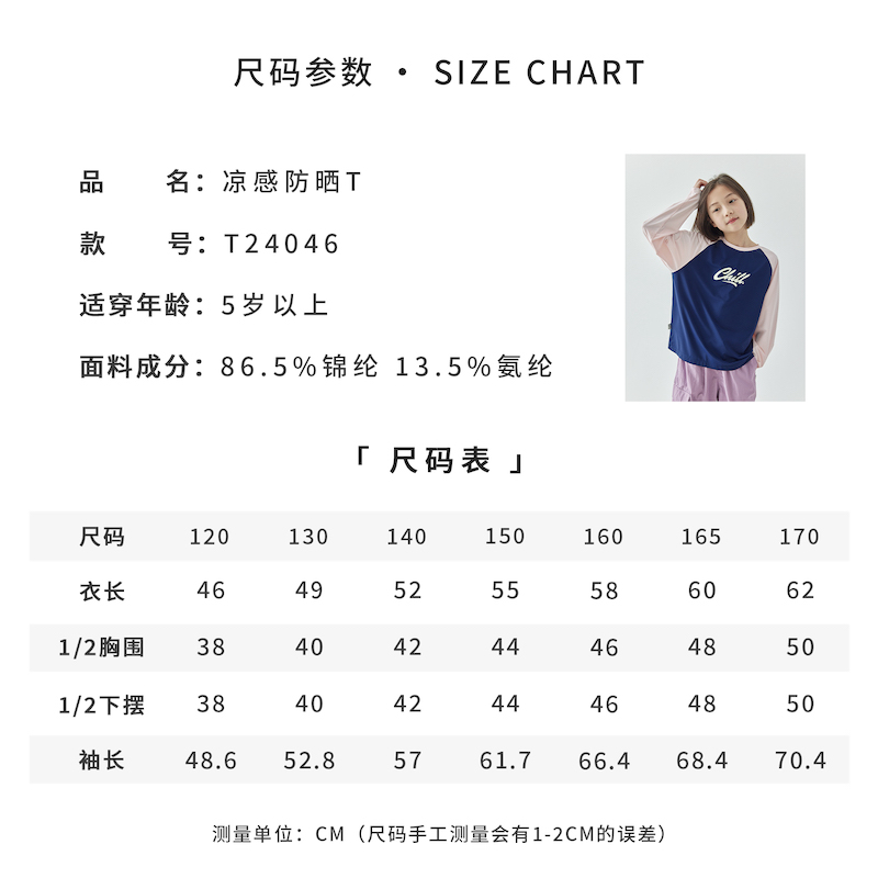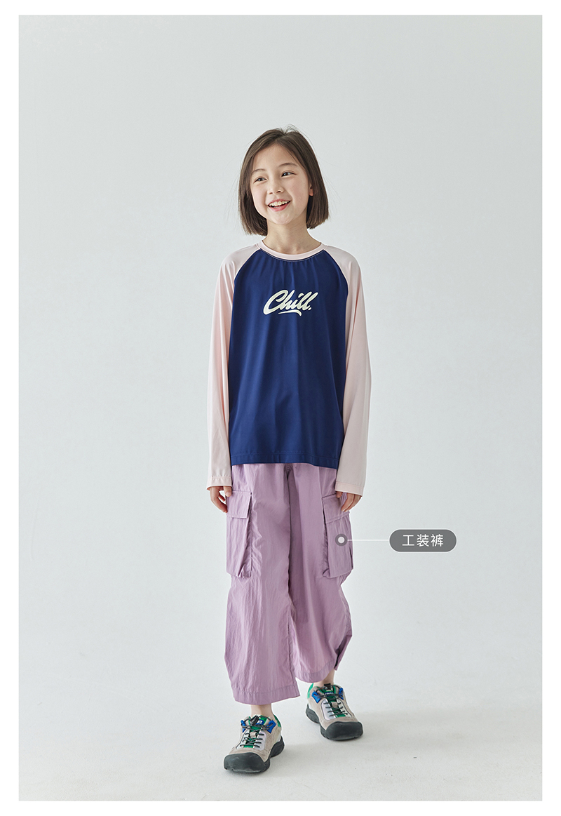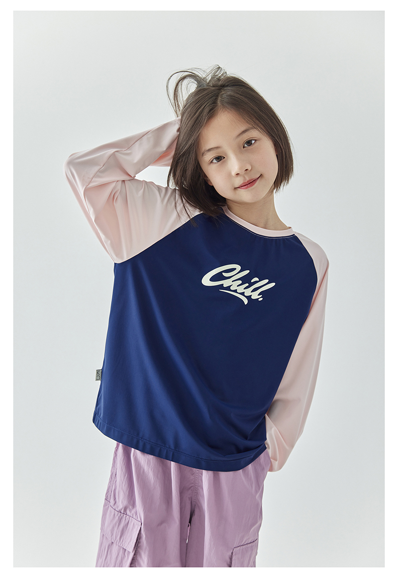 棵初夏季新款亲子凉感撞色插肩防晒T恤UPF50+儿童圆领长袖上衣