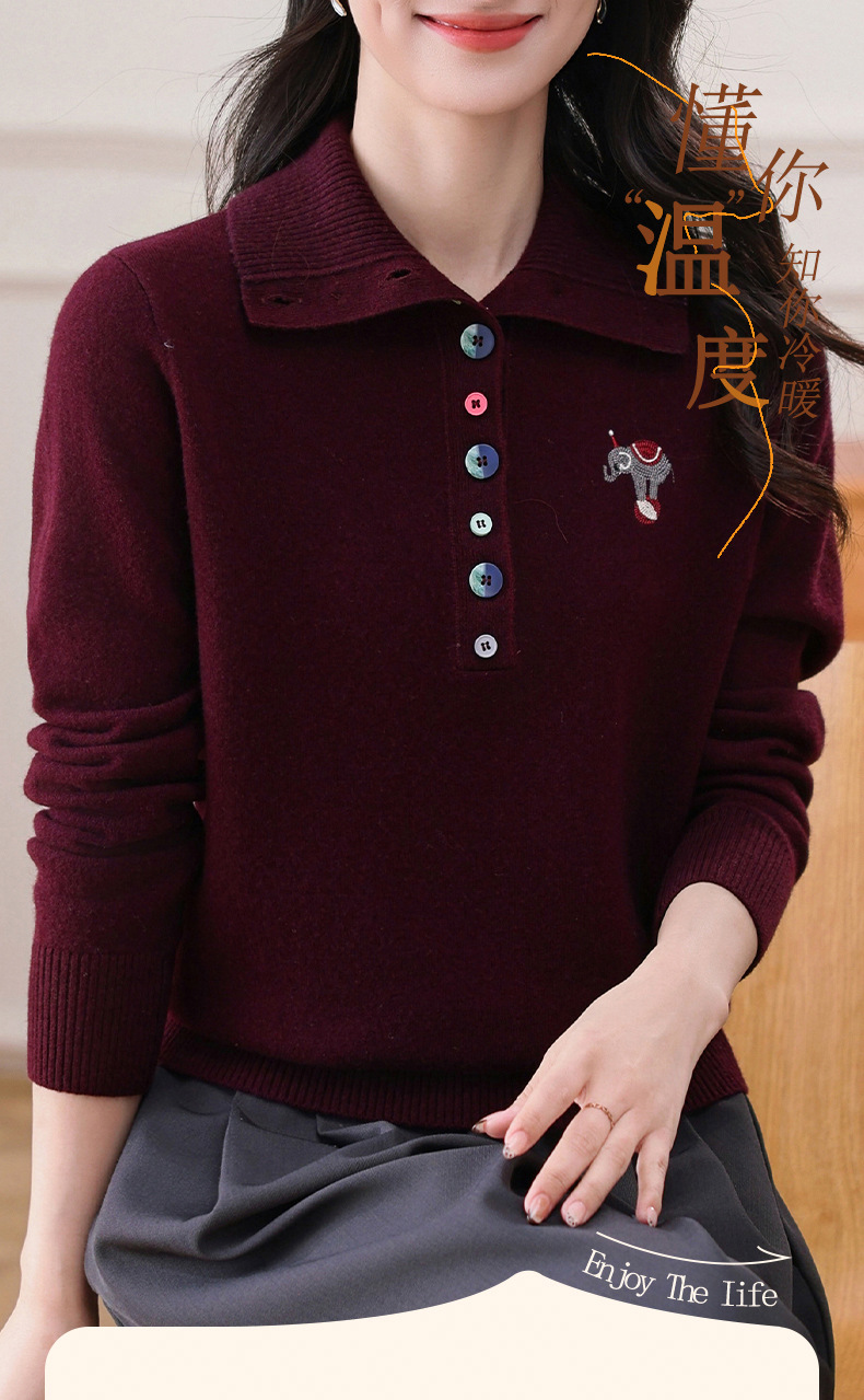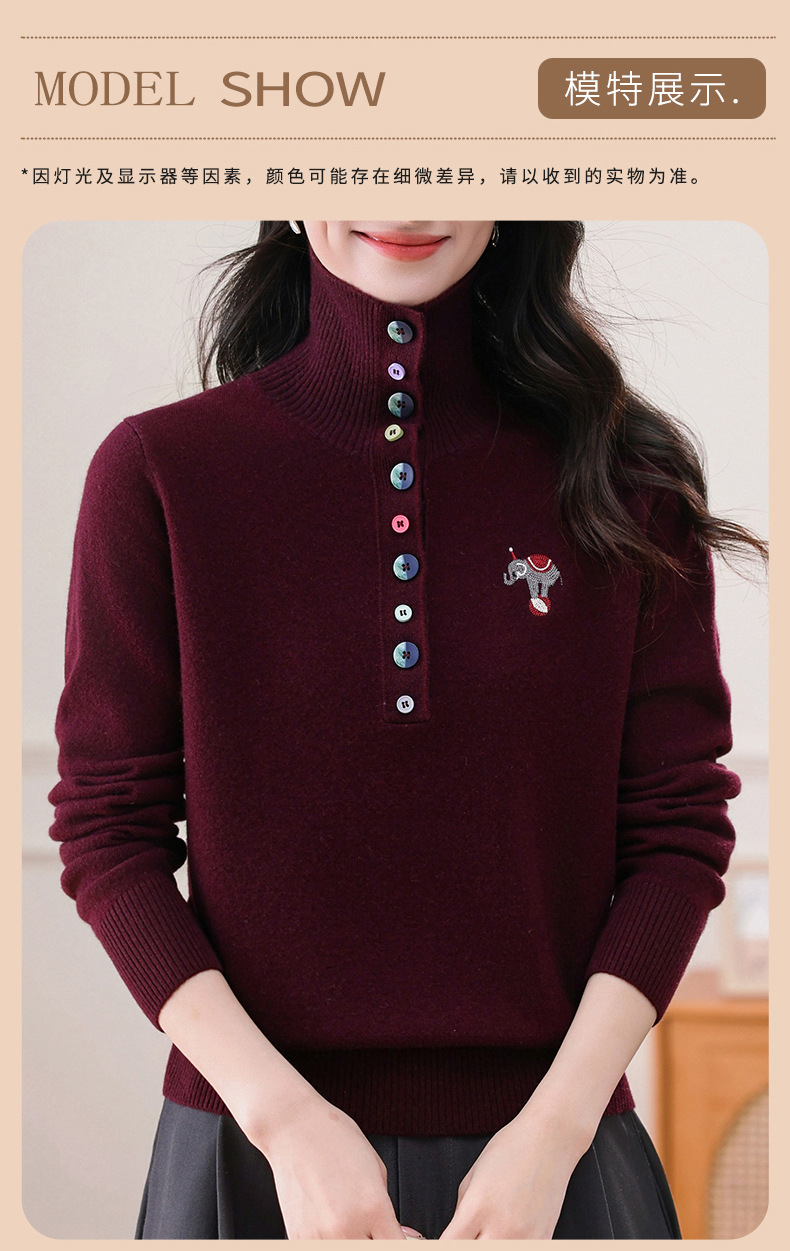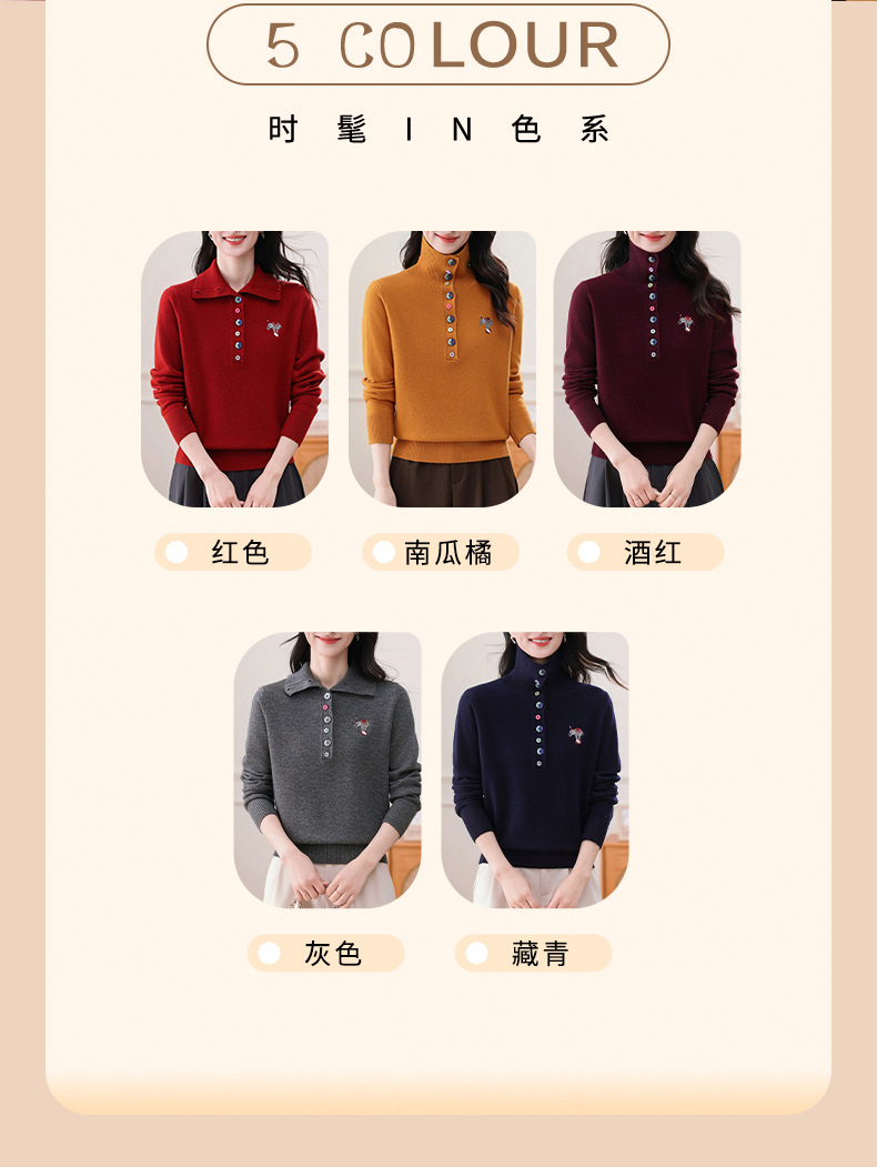 CC 13-98852翻领毛衣秋冬洋气遮肚上衣保暖羊毛衫