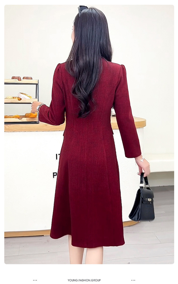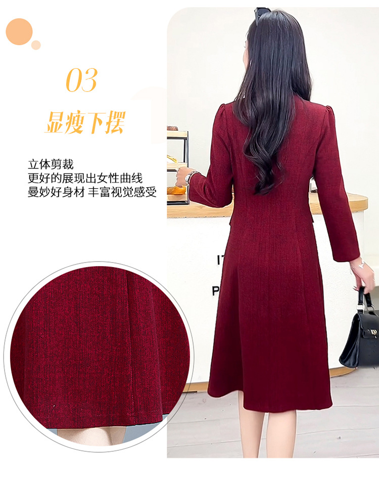 QYM 99H251-Y时尚气质连衣裙收腰假两件木耳边长袖裙 商品图4