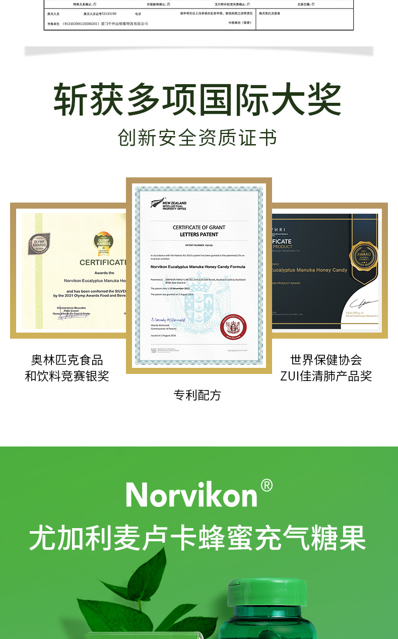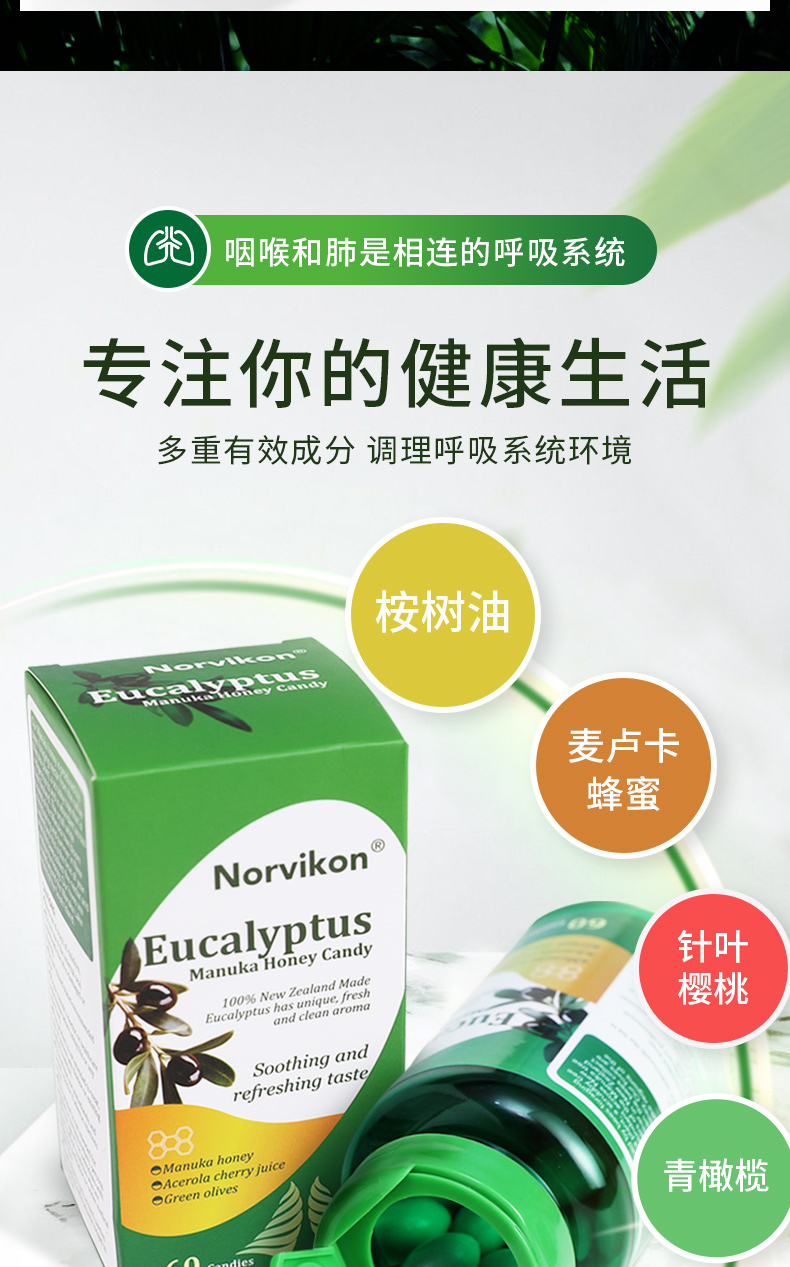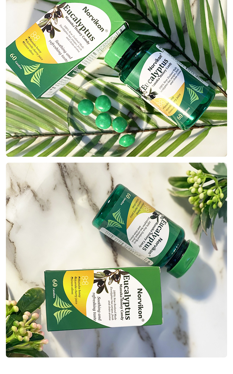 【缓解嗓子不舒,呼吸更顺畅】新西兰诺维康润喉清肺充气糖尤加利麦卢卡蜂蜜充气糖果3瓶起送99元LOFR口气珠
