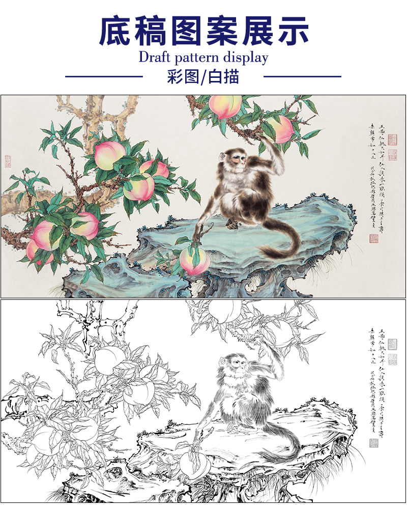 任重花鸟工笔画白描底稿《九桃图》临摹勾线高清打印稿RD61