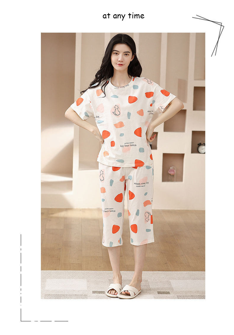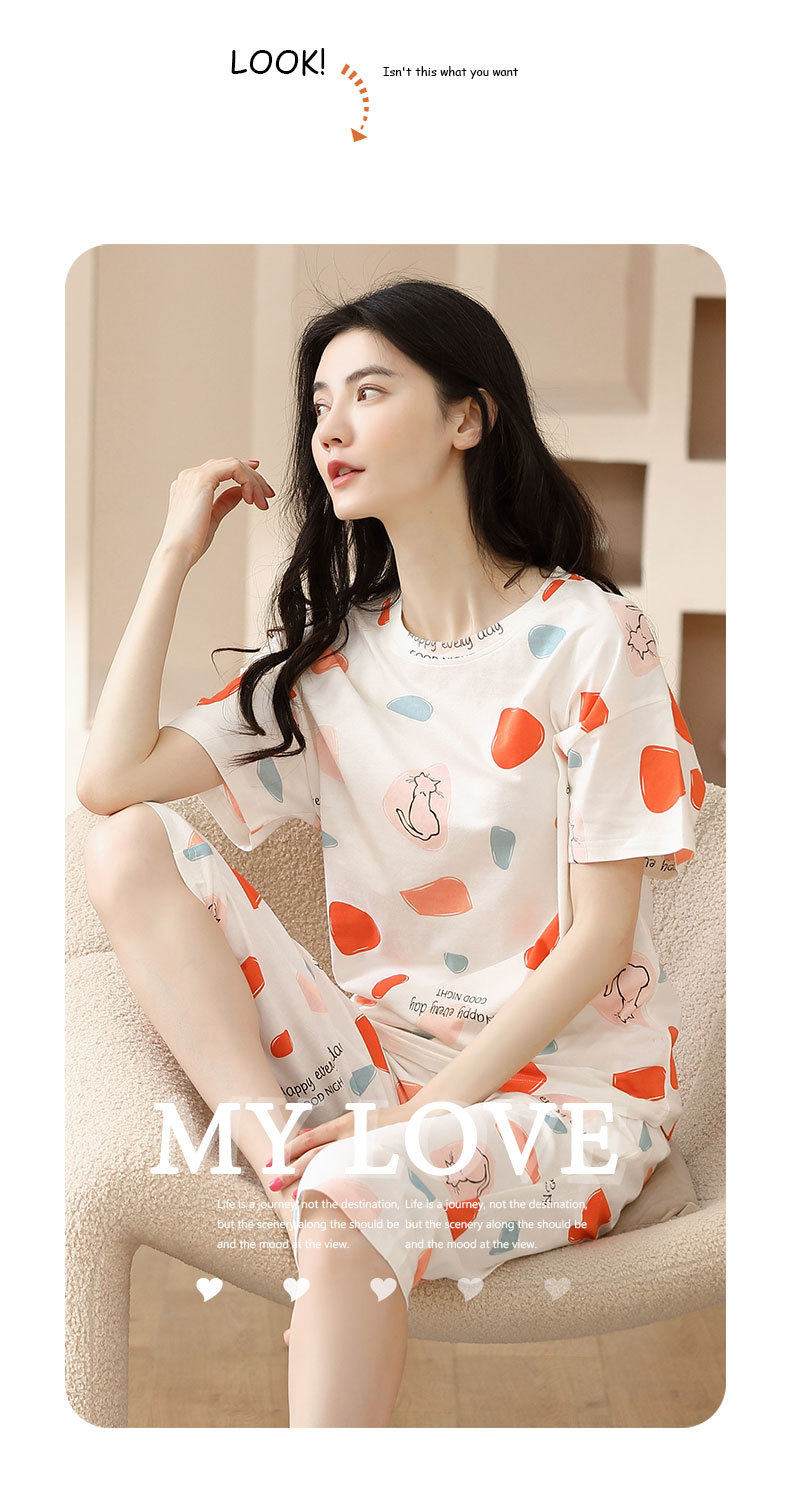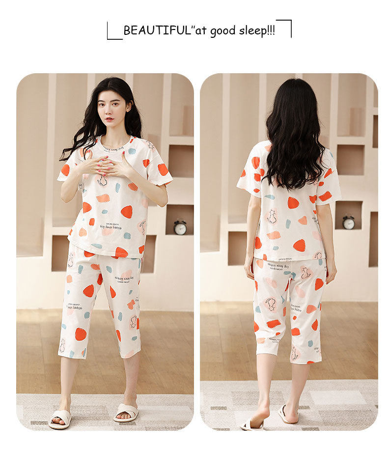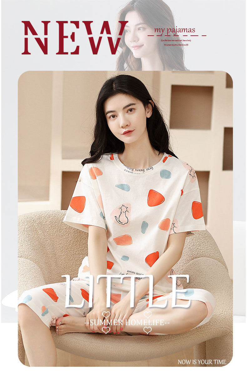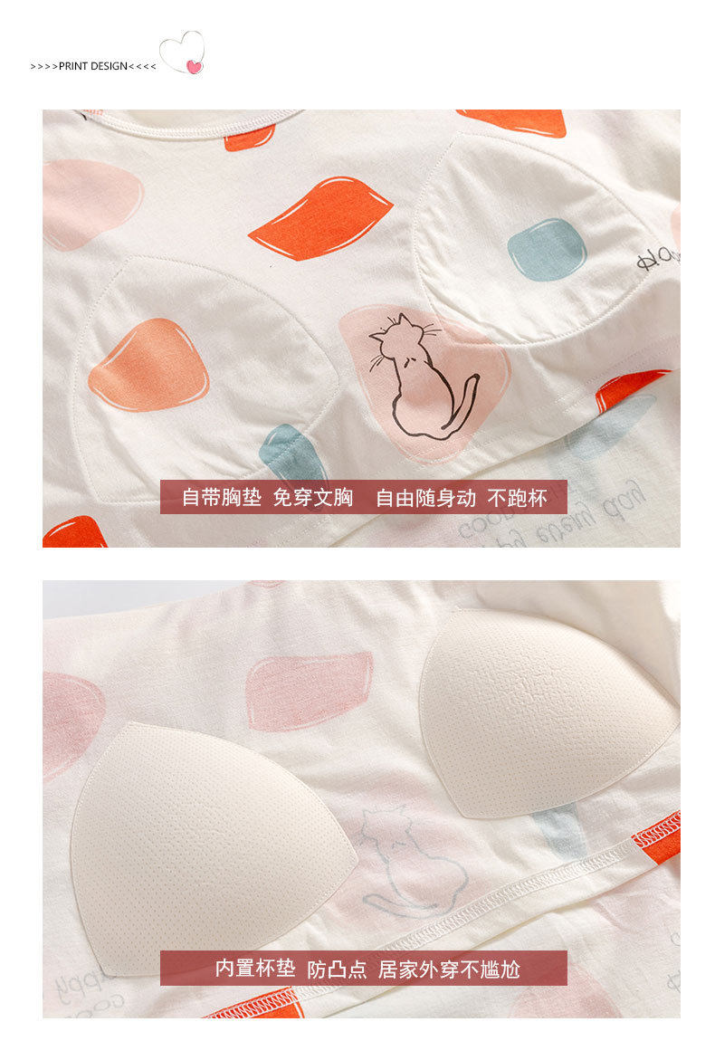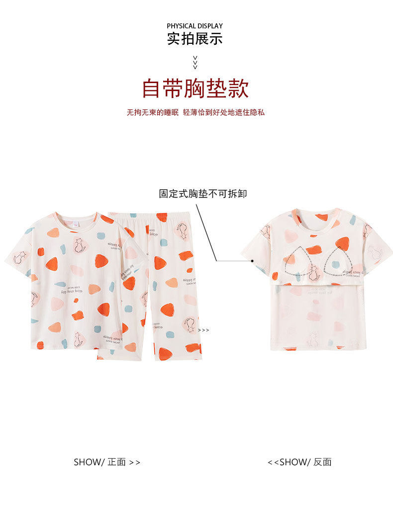 夏季新品纯棉睡衣女短袖七分裤两件套装薄款休闲少女带胸垫家居服 JL-YS311