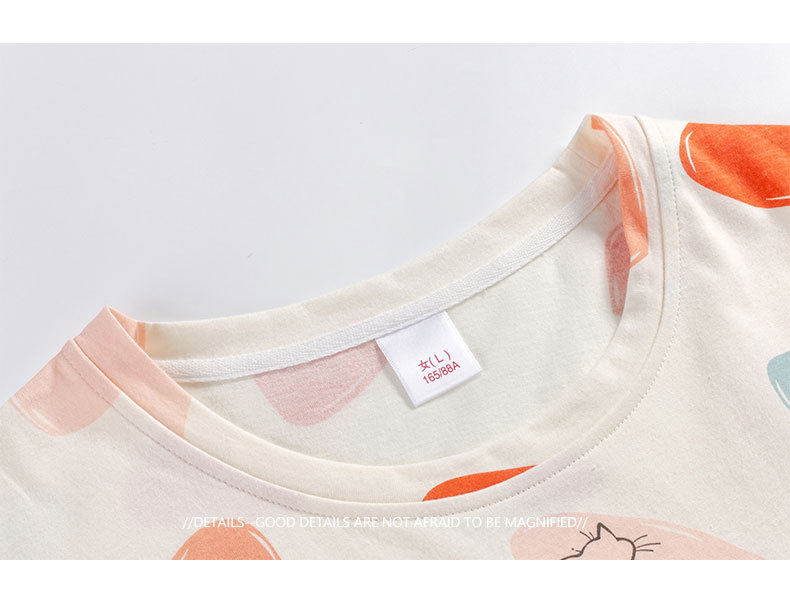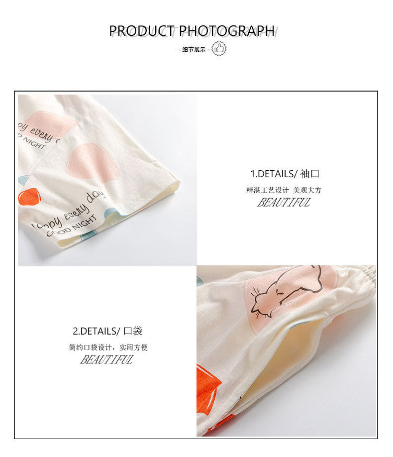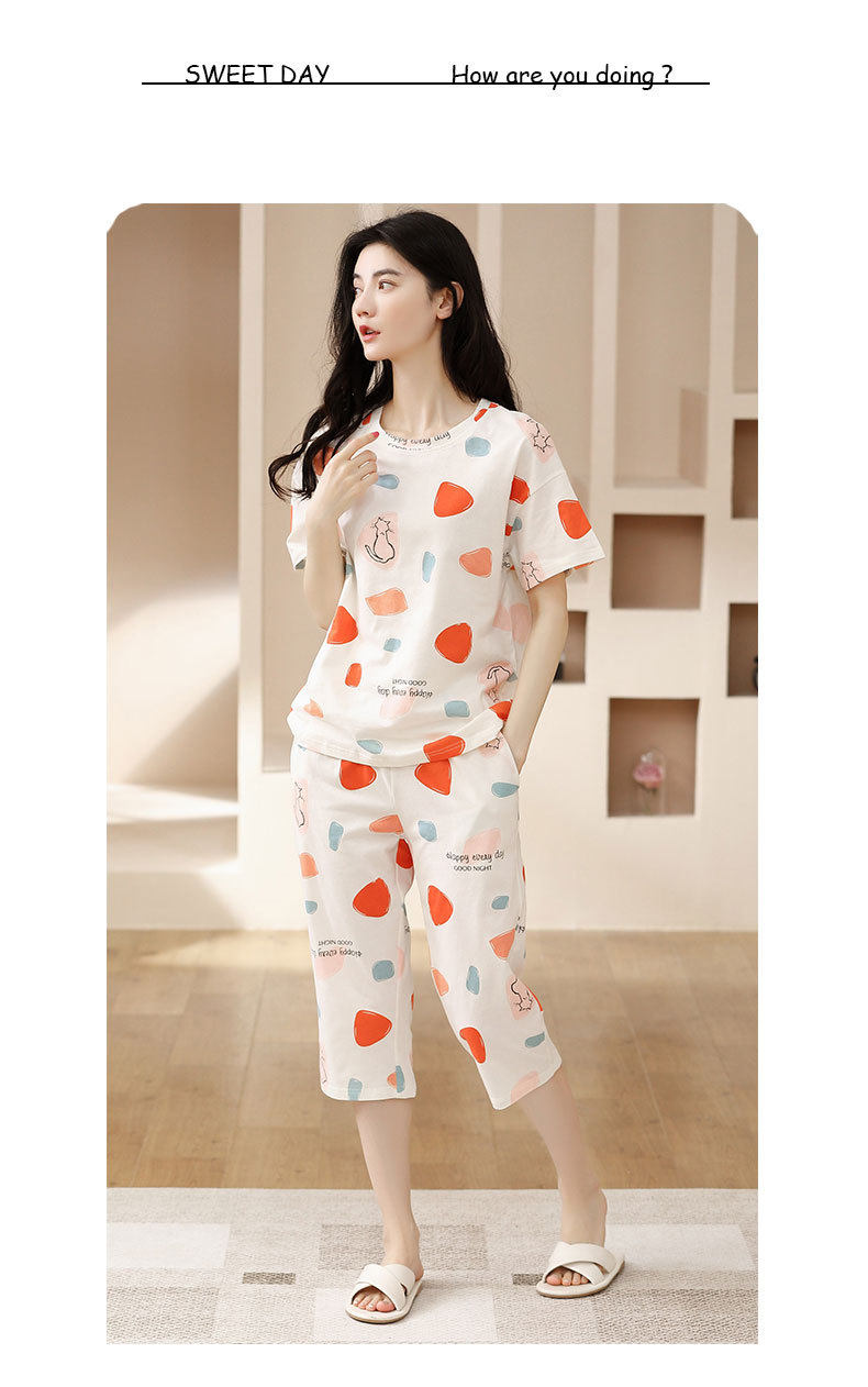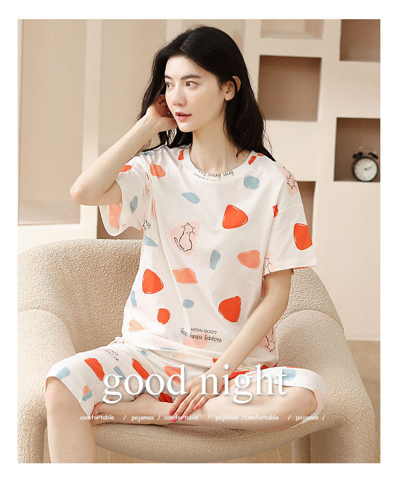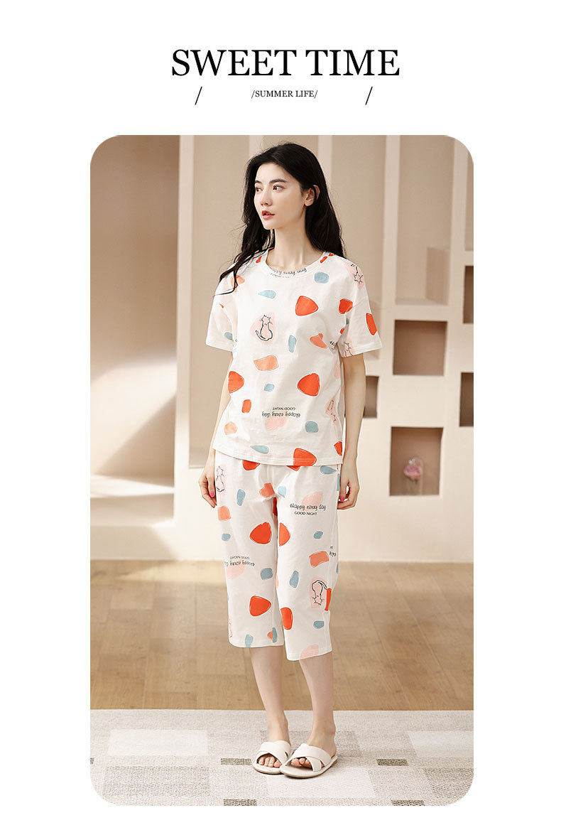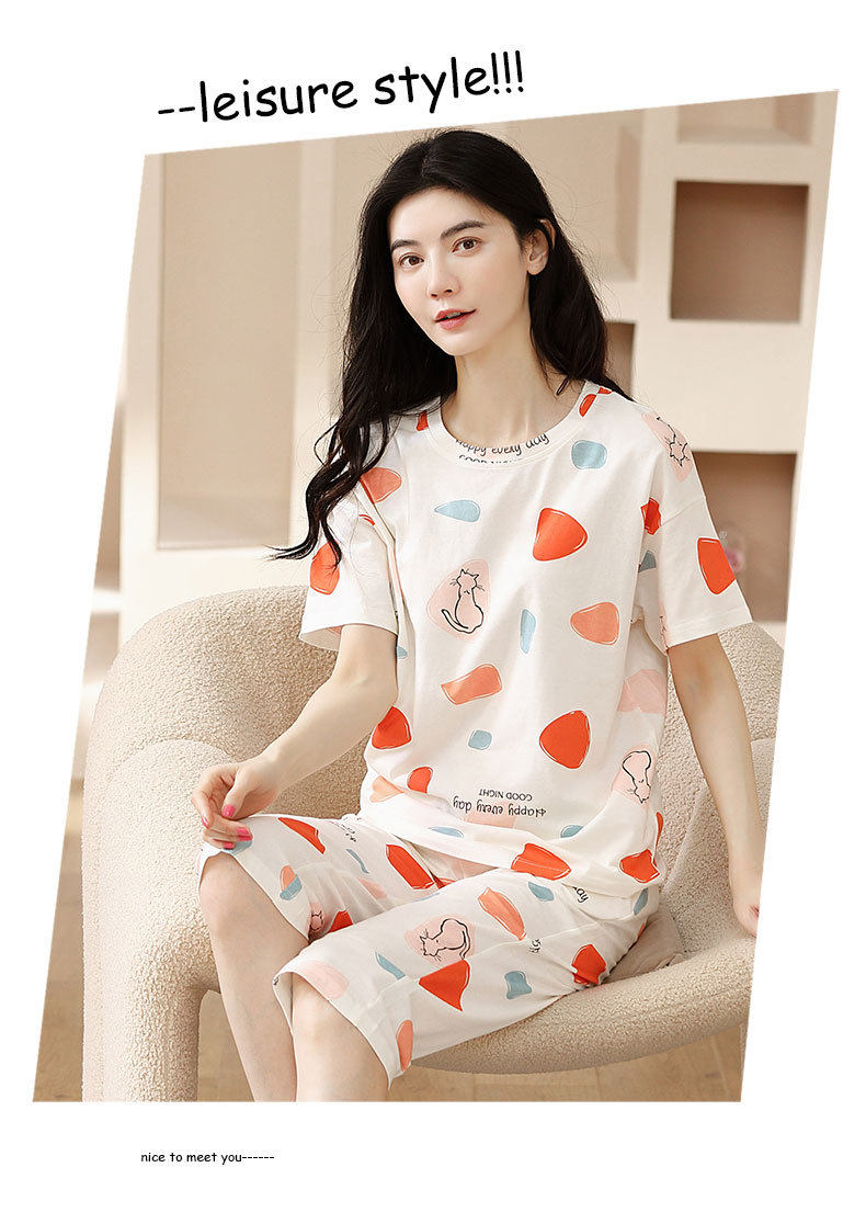 夏季新品纯棉睡衣女短袖七分裤两件套装薄款休闲少女带胸垫家居服 JL-YS311