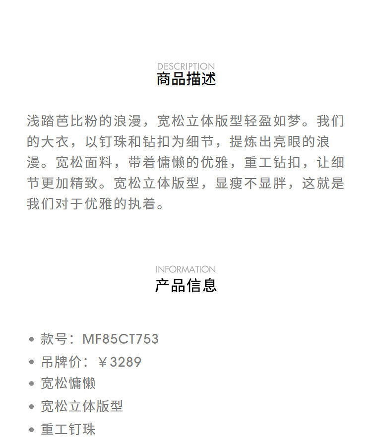 浪漫优雅芭比粉钉珠钻扣毛呢外套MF85CT753