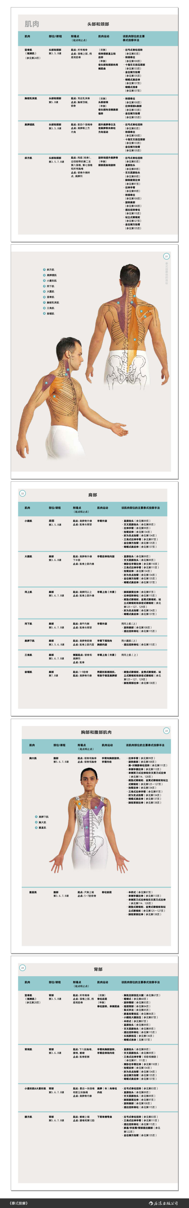 肌肉是泰式按摩师的解剖学目标。本书为我们从解剖学层面讲解骨骼肌肉系统的构成,并且列出了针对每块身体关键肌肉部位的按摩技巧,无论是肌肉标识还是技巧示范,都是彩图展示,易于观摩。