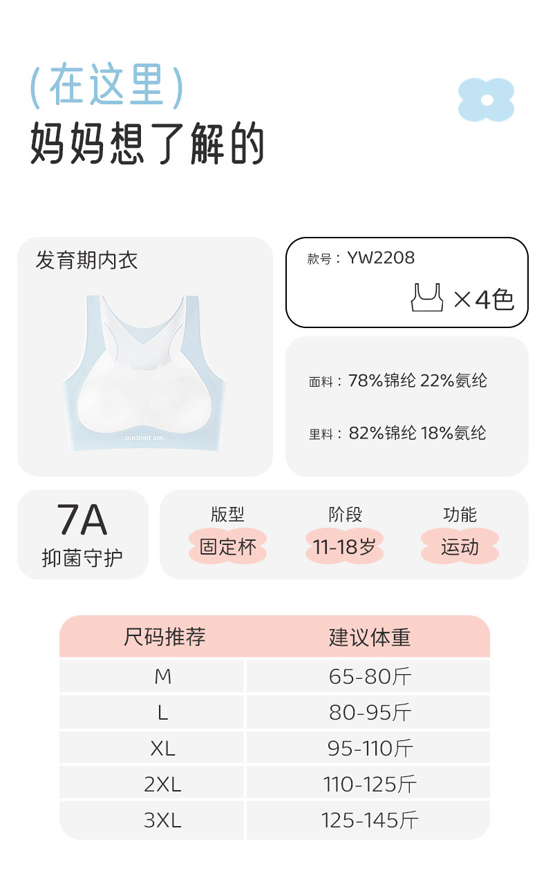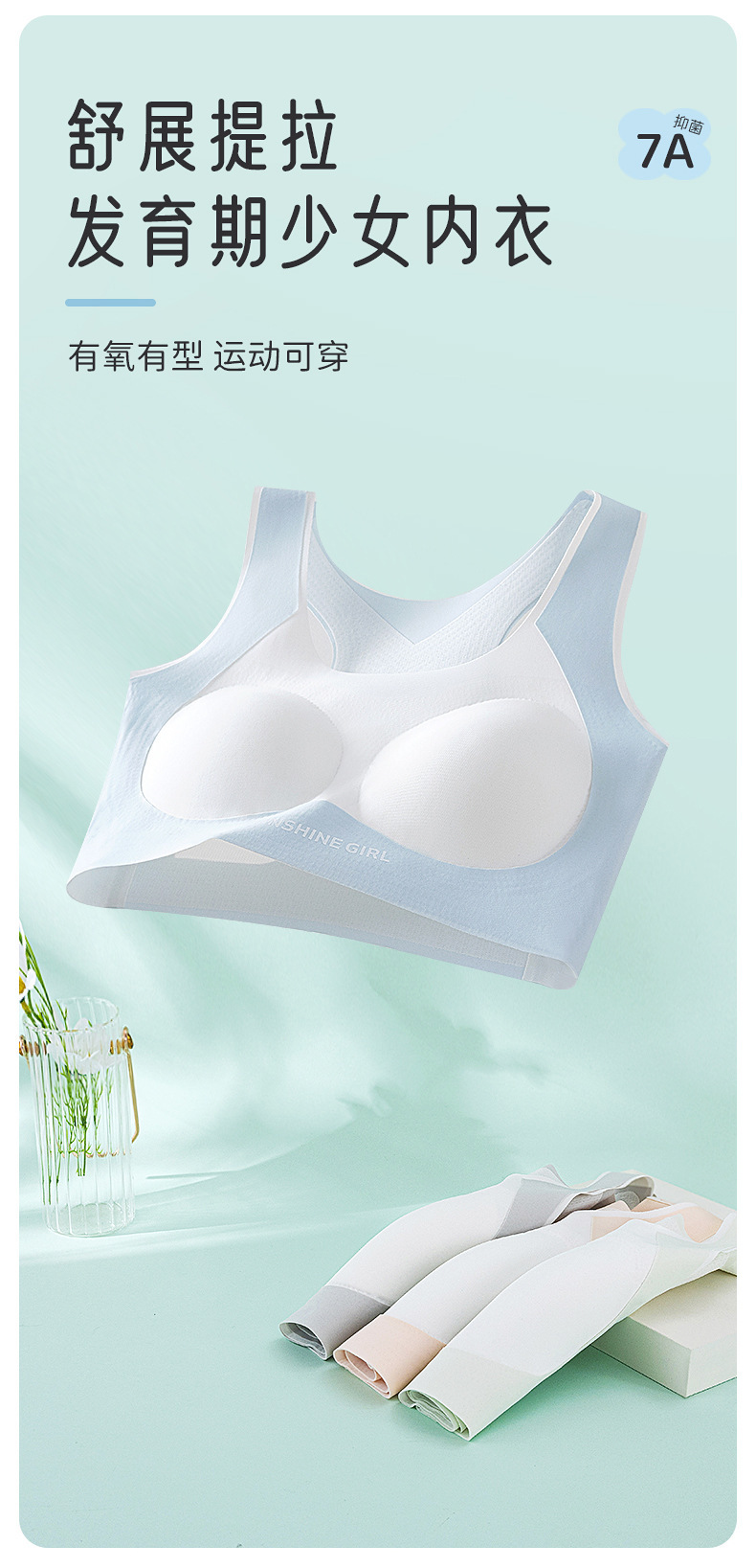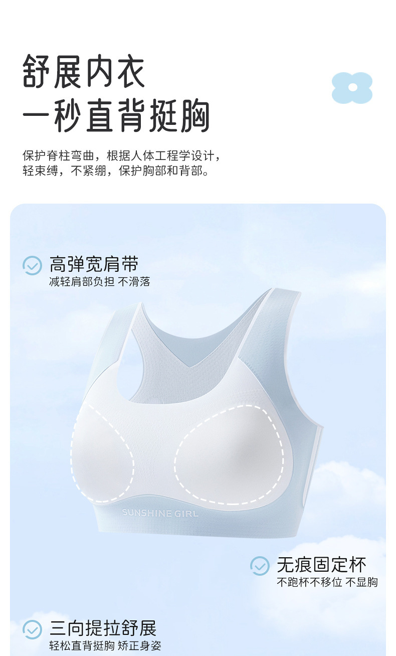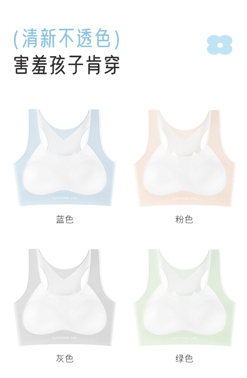 【治愈色系❗️舒展防驼背】少女内衣学生初中发育期女童12-16岁高中生儿童运动背心无痕文胸。jc