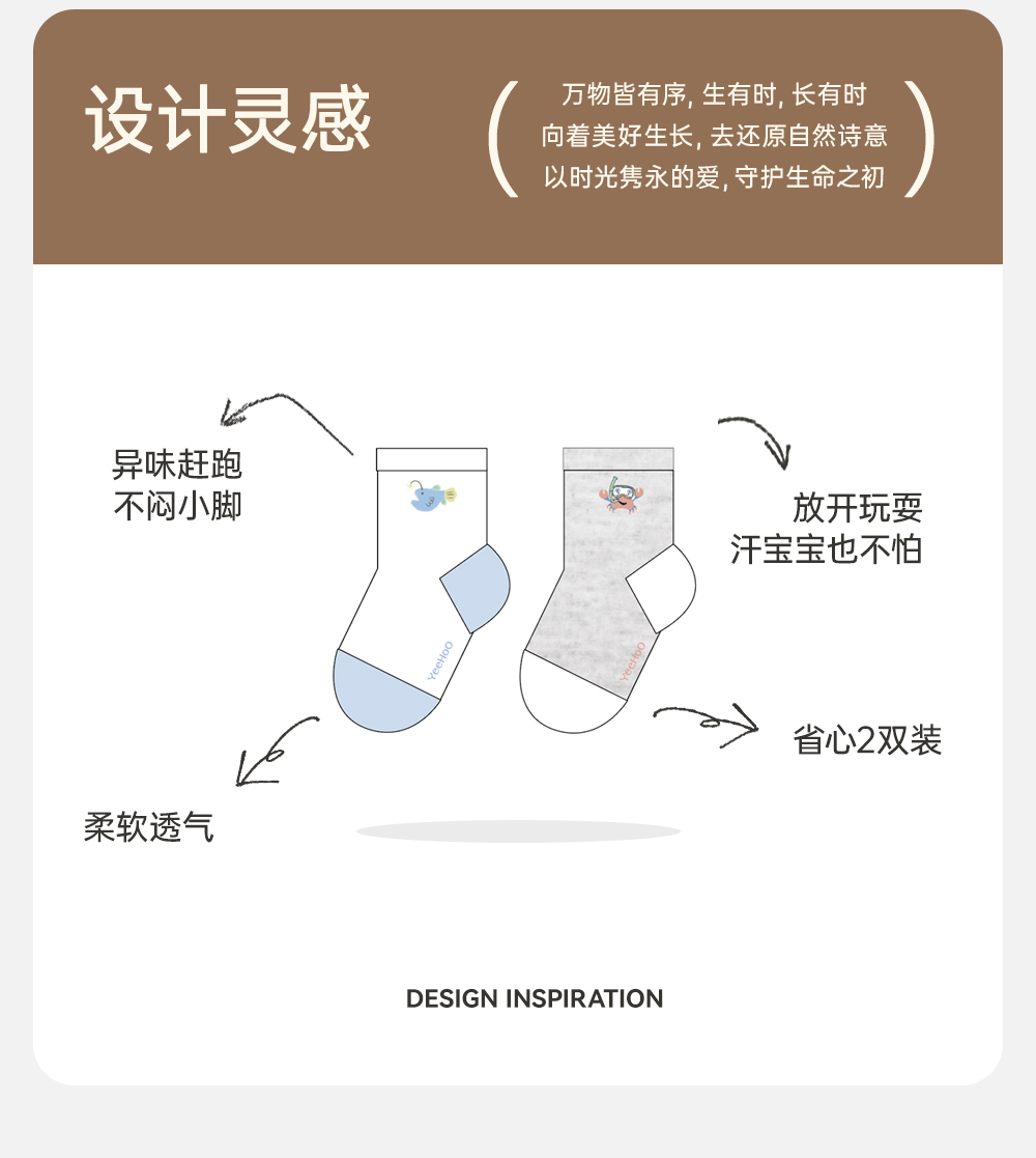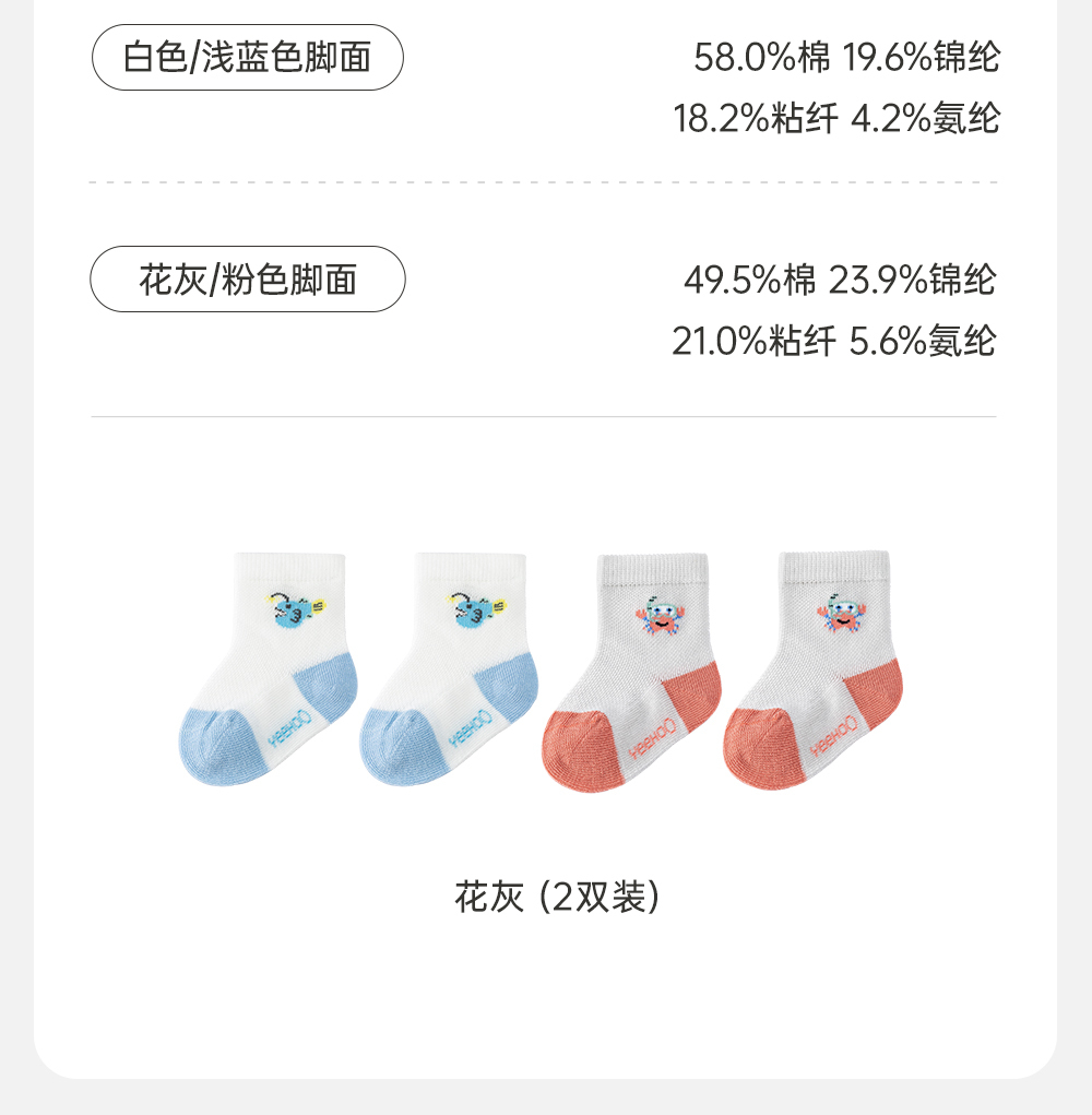【商场同款】英氏儿童袜子防臭抑菌婴幼儿袜子2024新款薄袜两双装