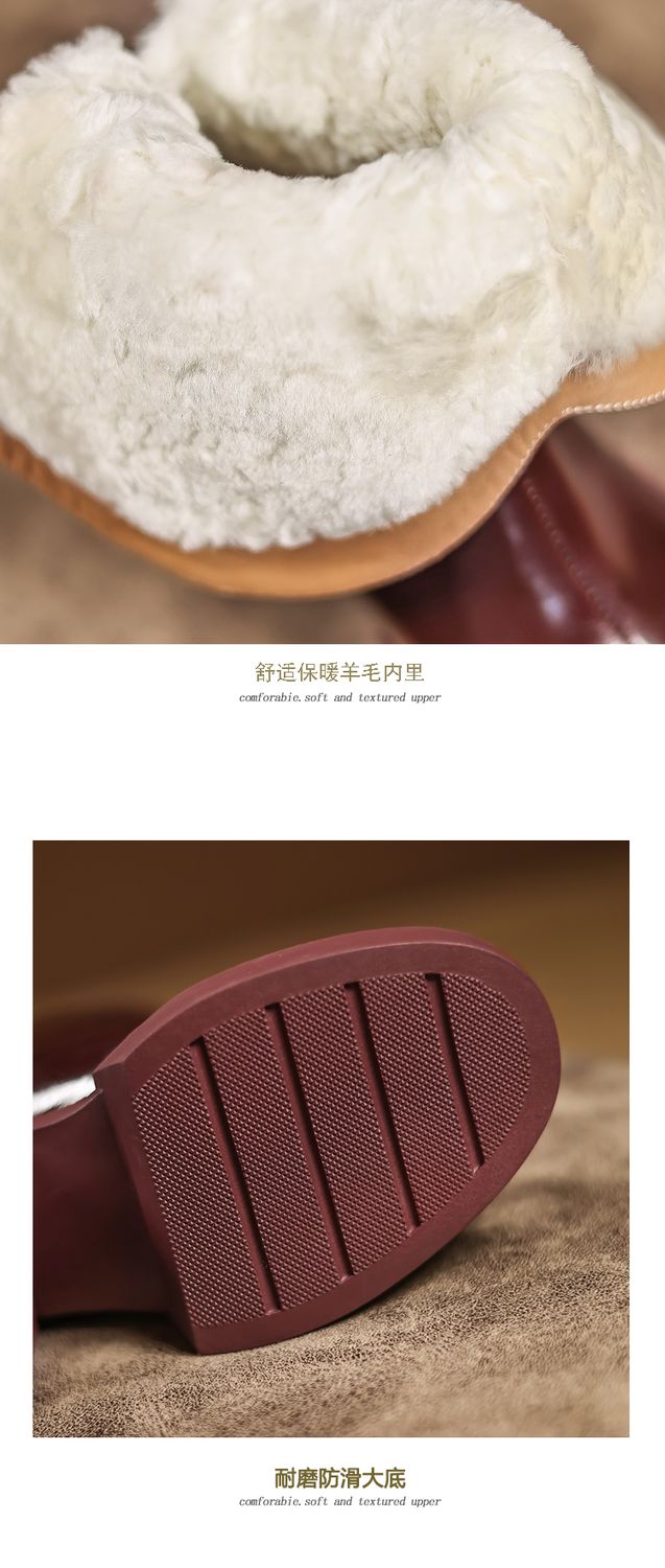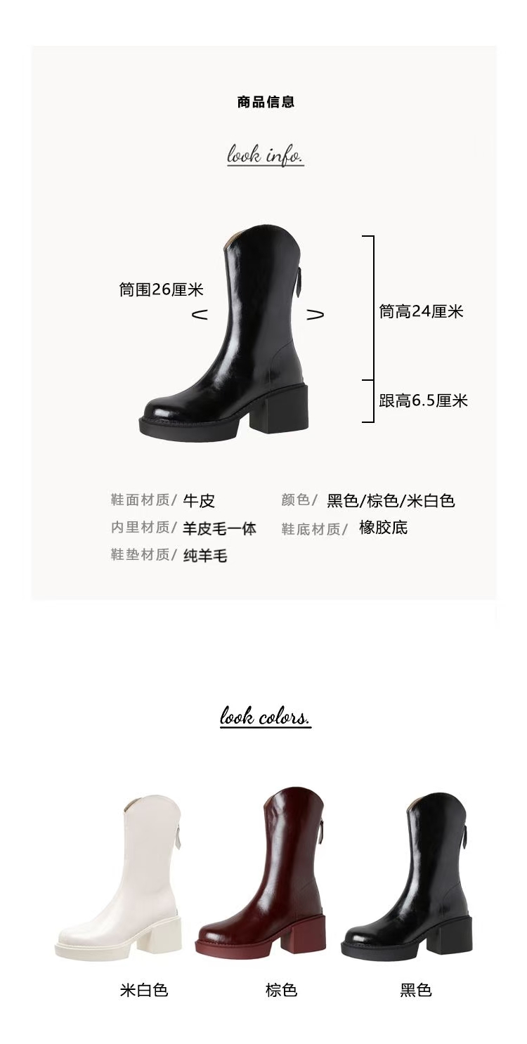货号:2040帮面:牛皮内里:羊皮毛一体鞋垫:纯羊毛跟高:6.5cm筒高:24cm颜色:黑色,米白色,棕色