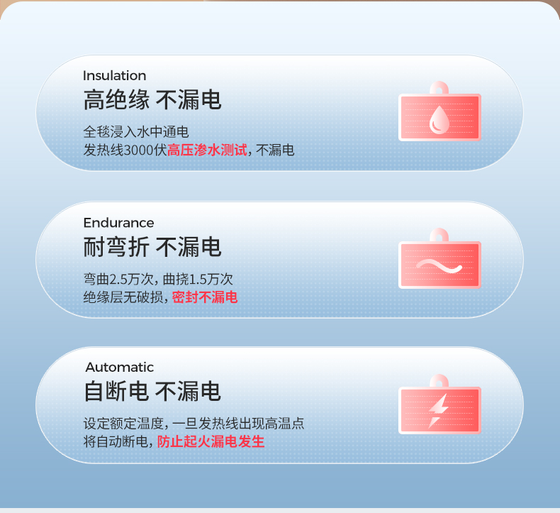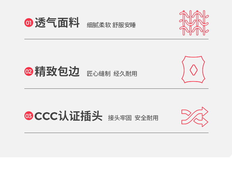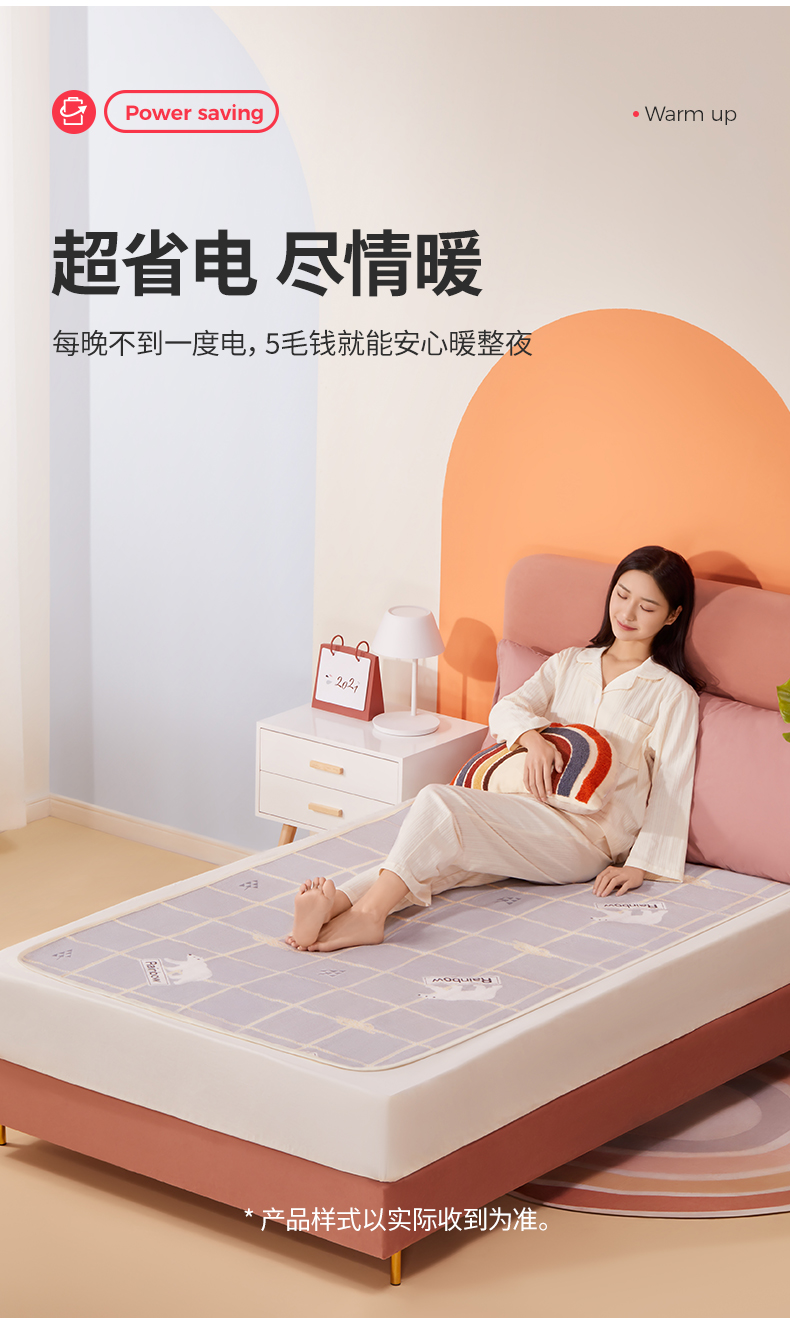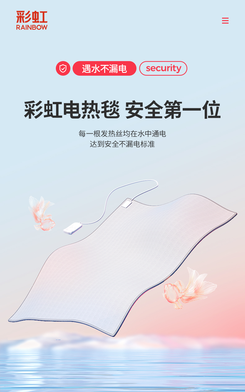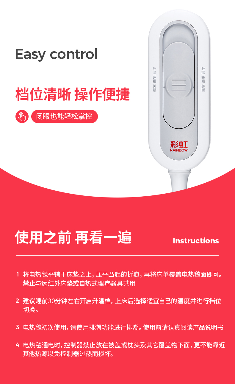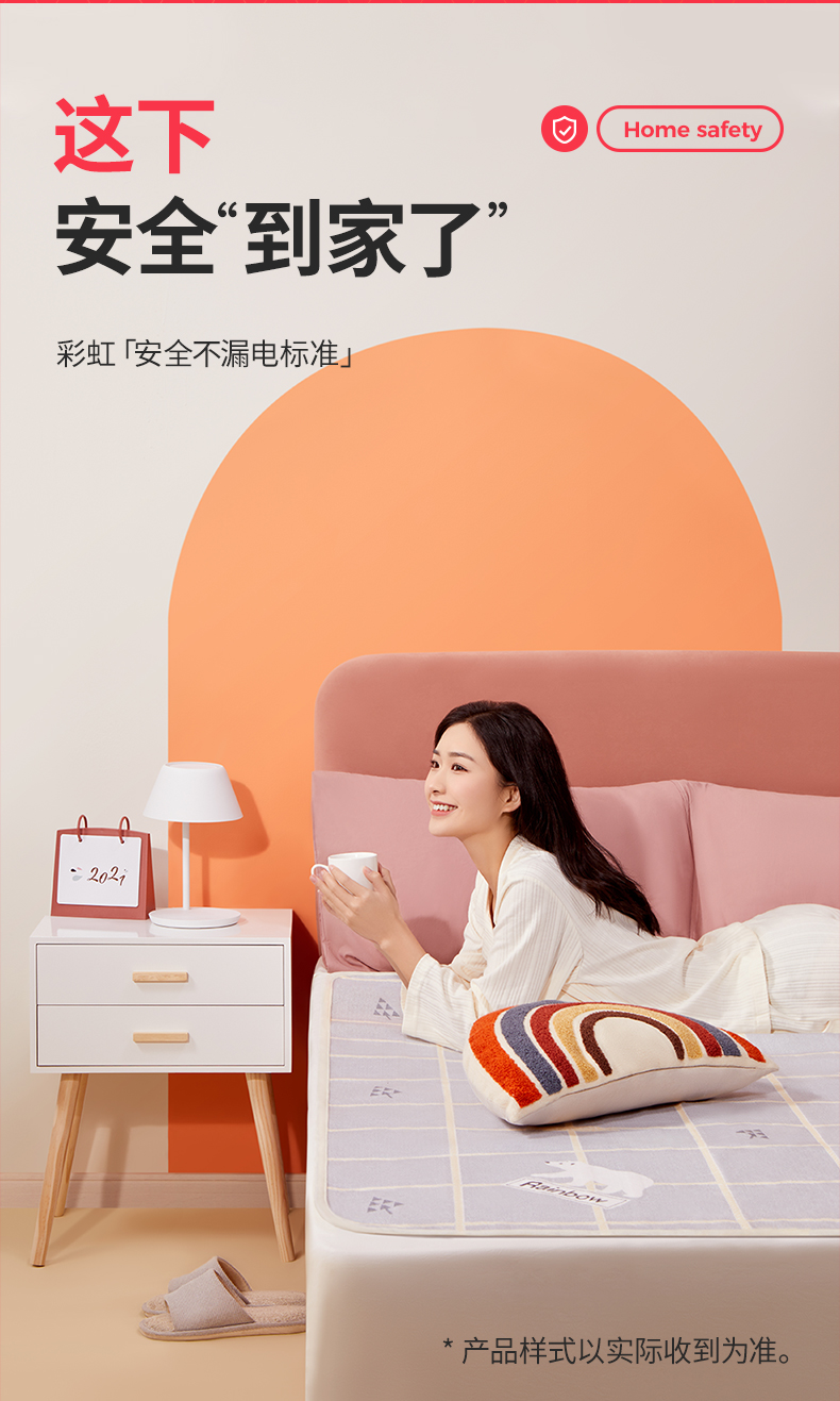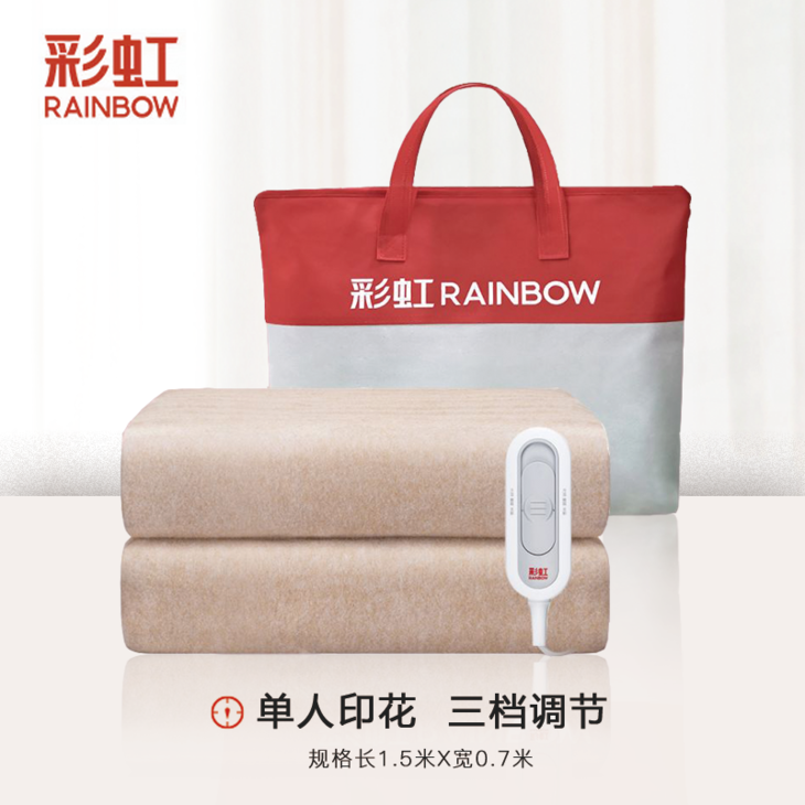 测评优品-彩虹电热毯 柔软舒适 安全性优秀 三档调温 温度均匀 智能定时 高温断电 噪声小 操作简单