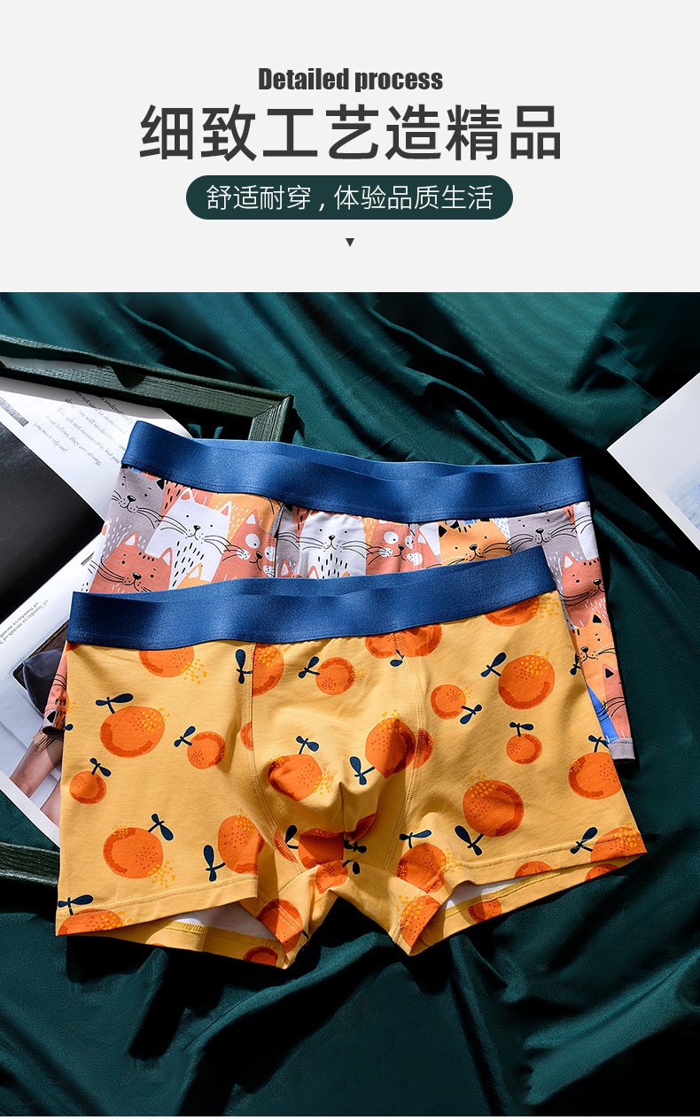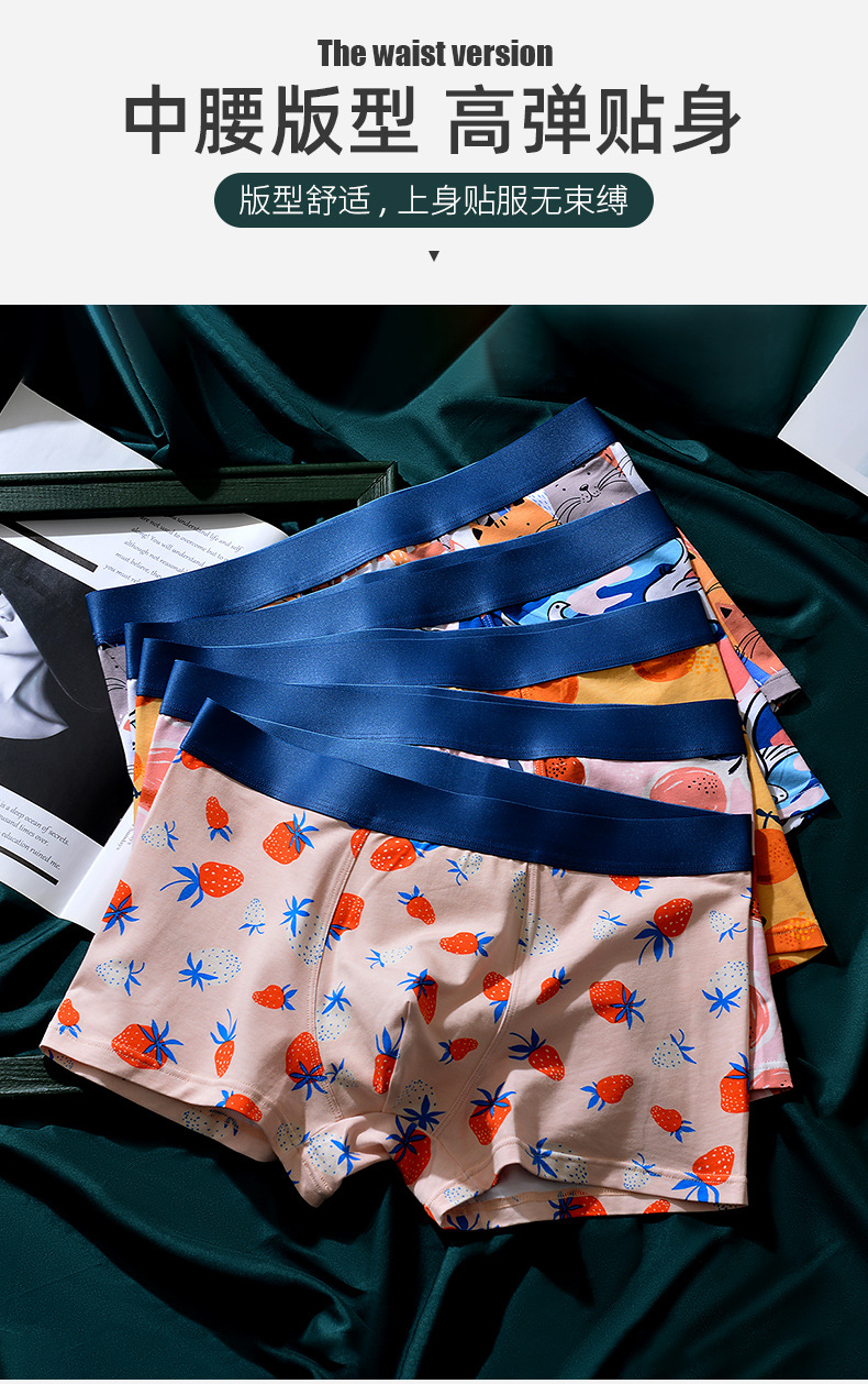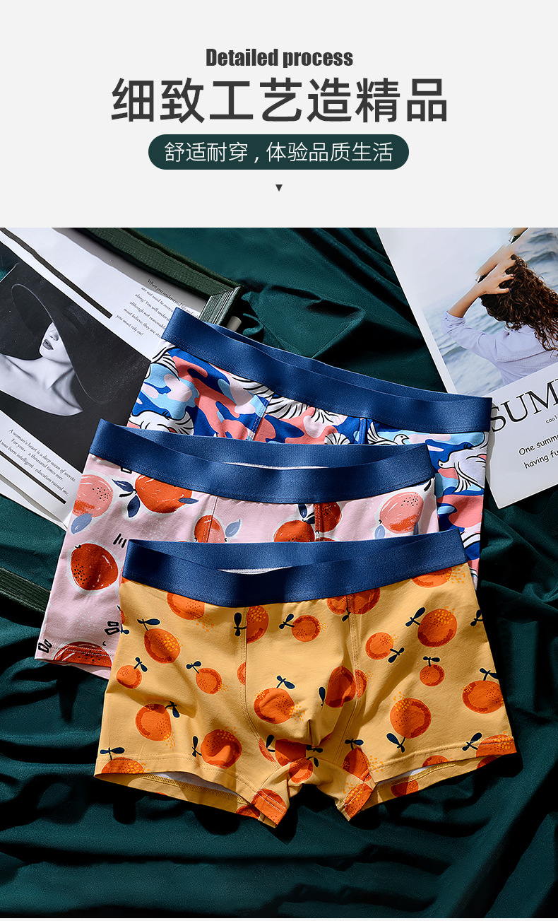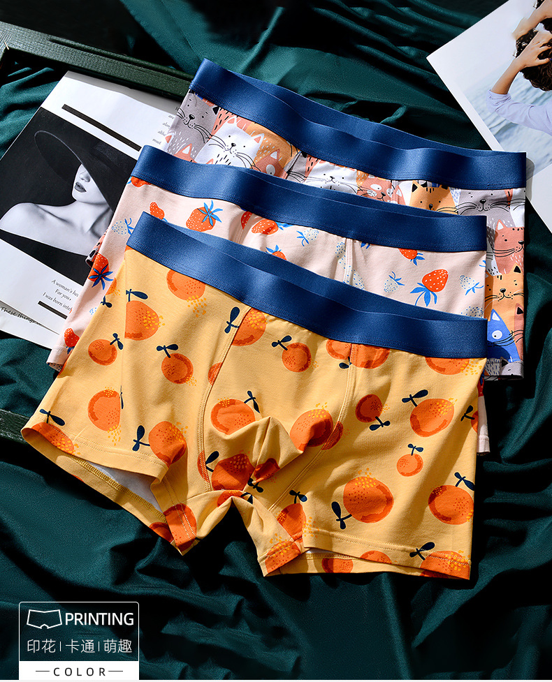 XY-1202 【1条】柿柿如意水果印花男士内裤中腰抗菌透气莫代尔棉内裤男生裤头