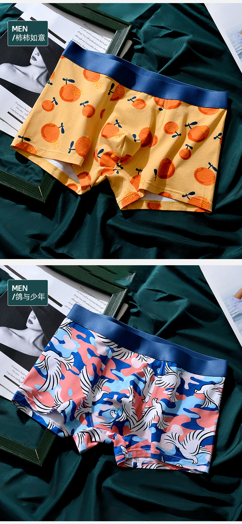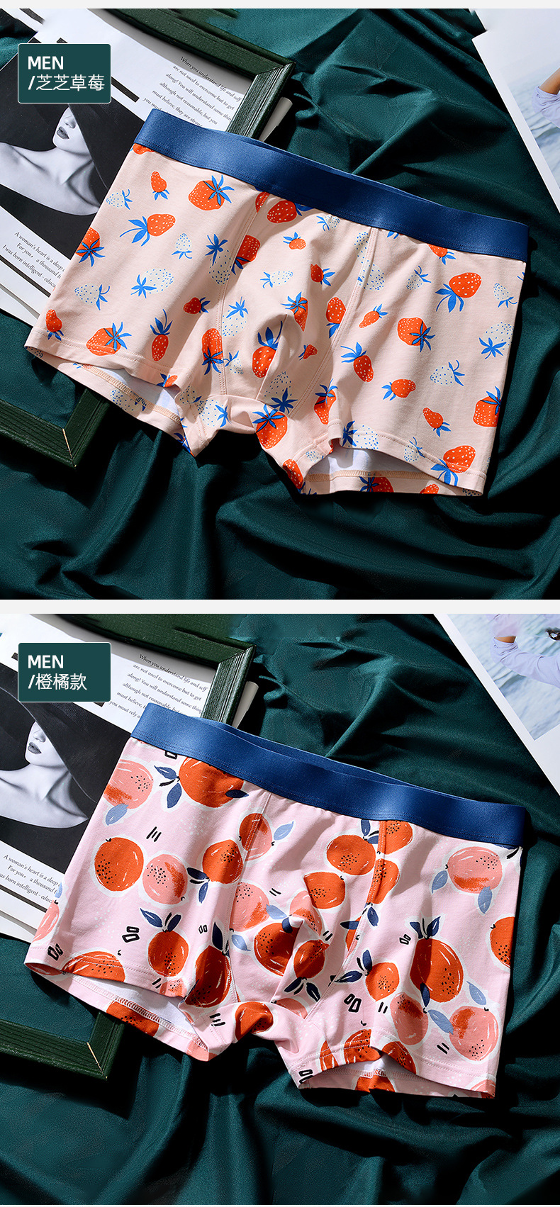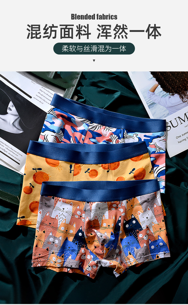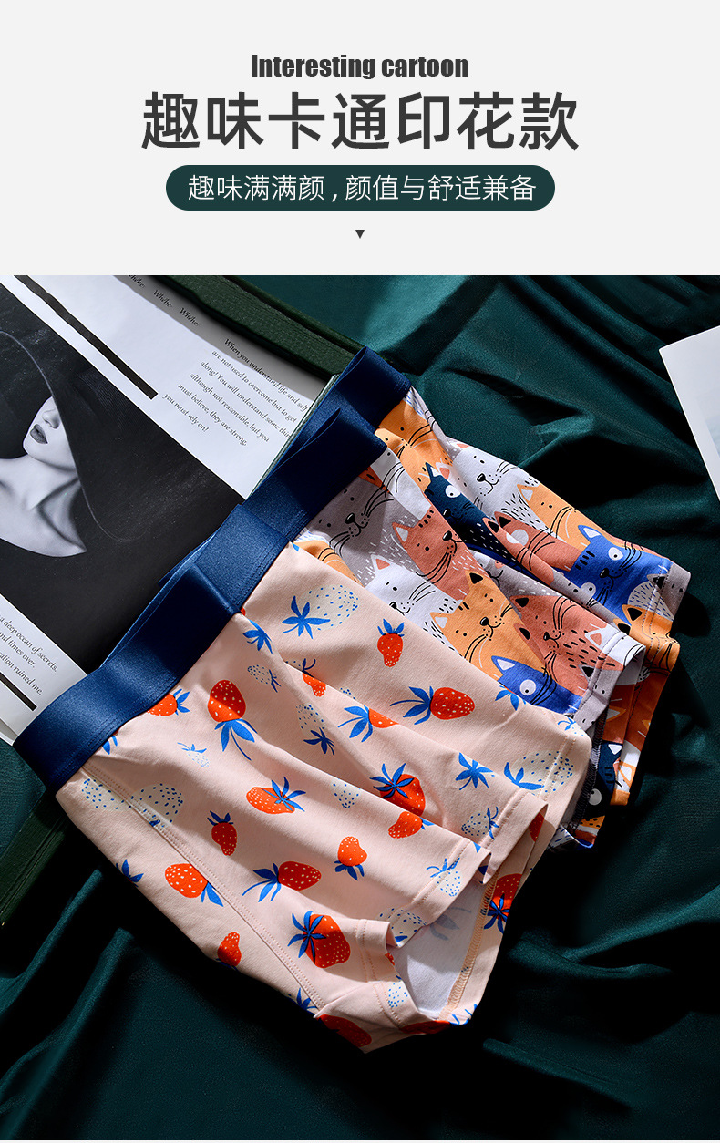 XY-1202 【1条】柿柿如意水果印花男士内裤中腰抗菌透气莫代尔棉内裤男生裤头