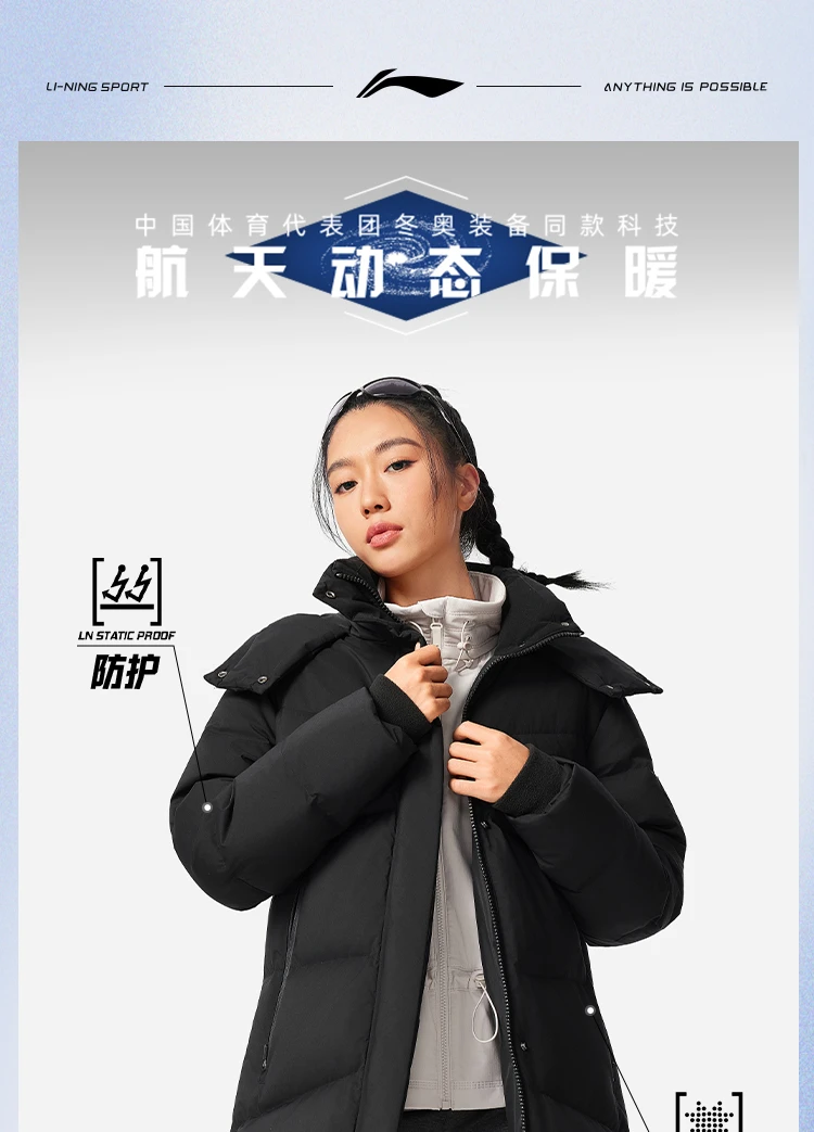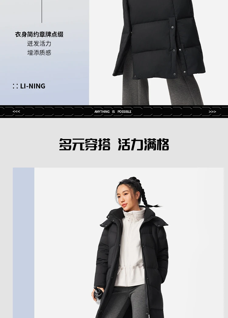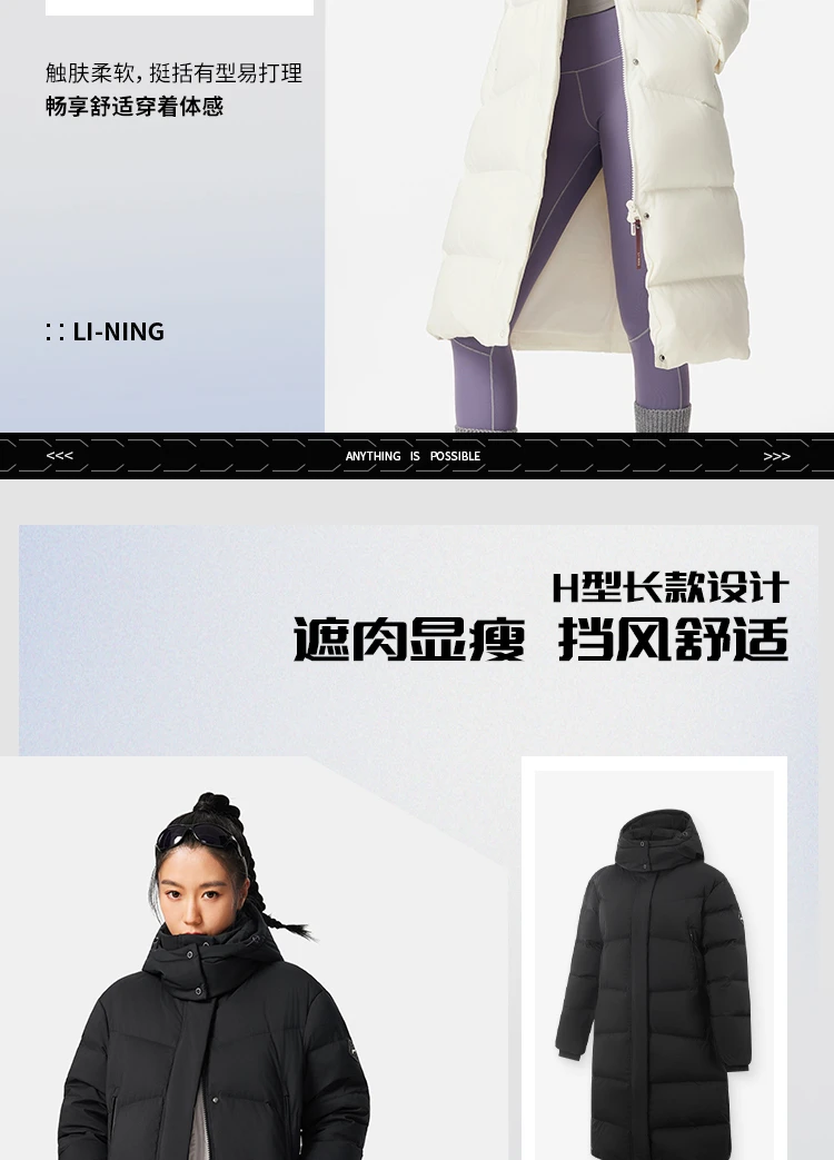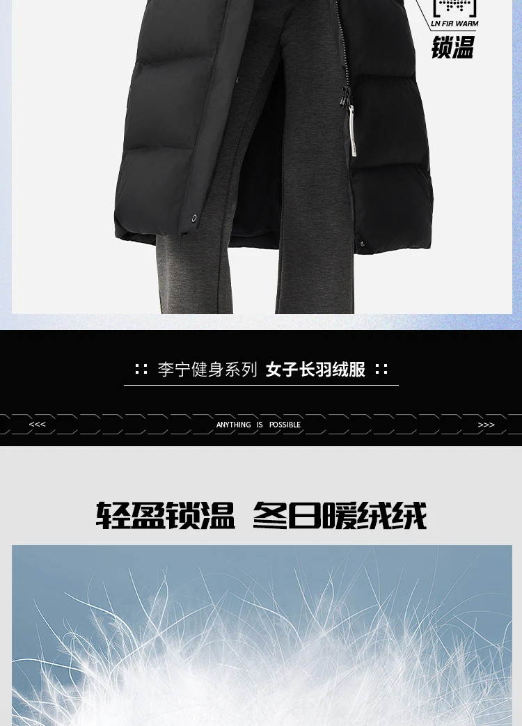 李宁女子防泼水鸭绒长羽绒服AYMV208