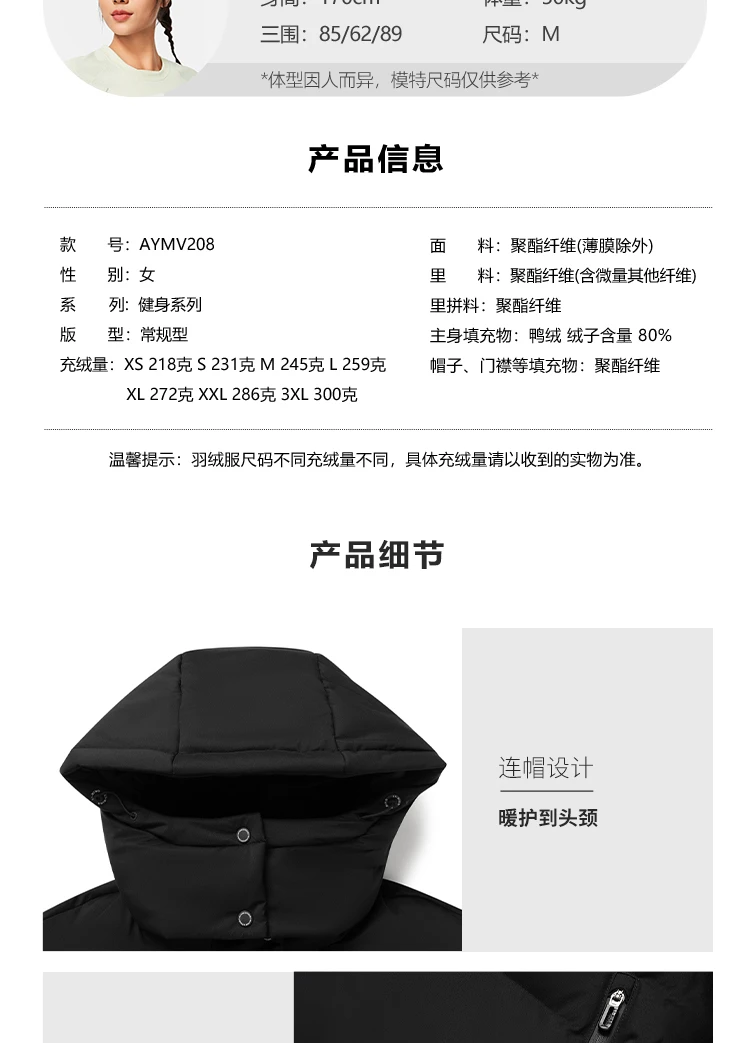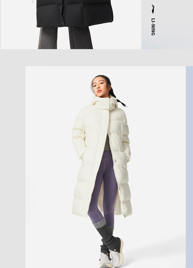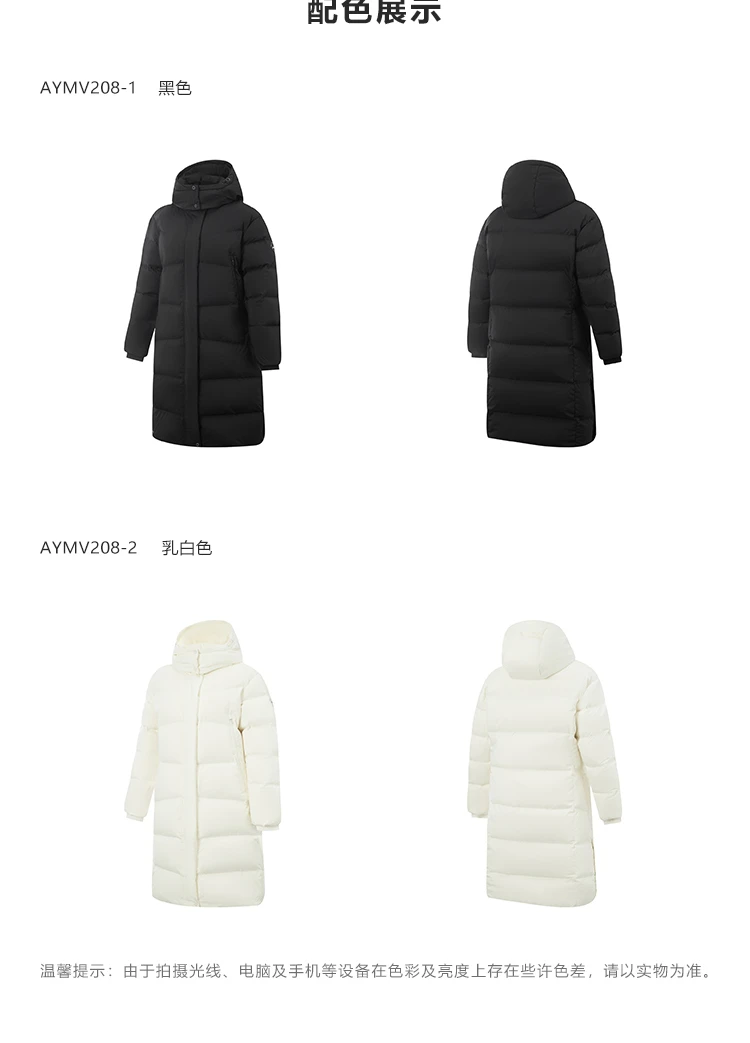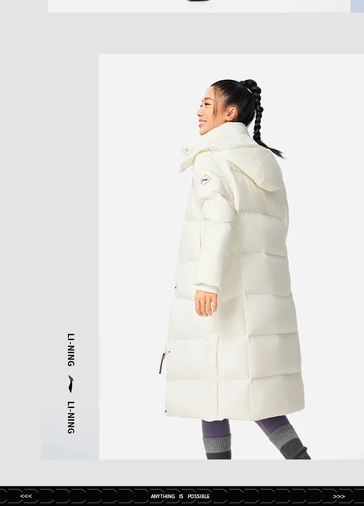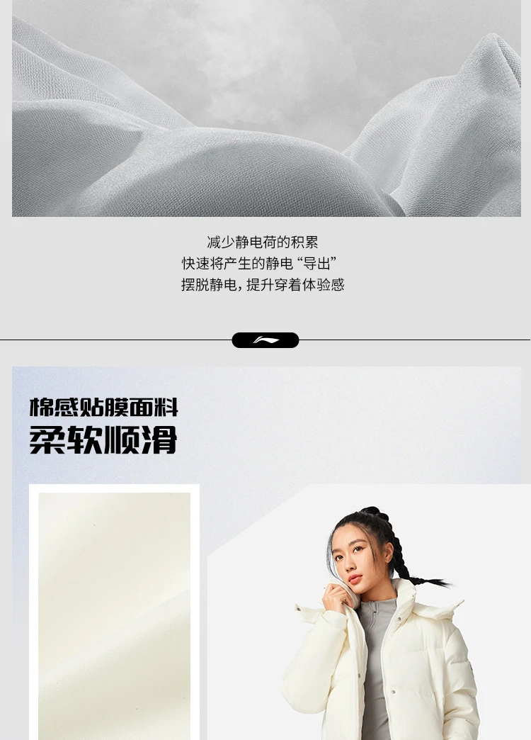 李宁女子防泼水鸭绒长羽绒服AYMV208