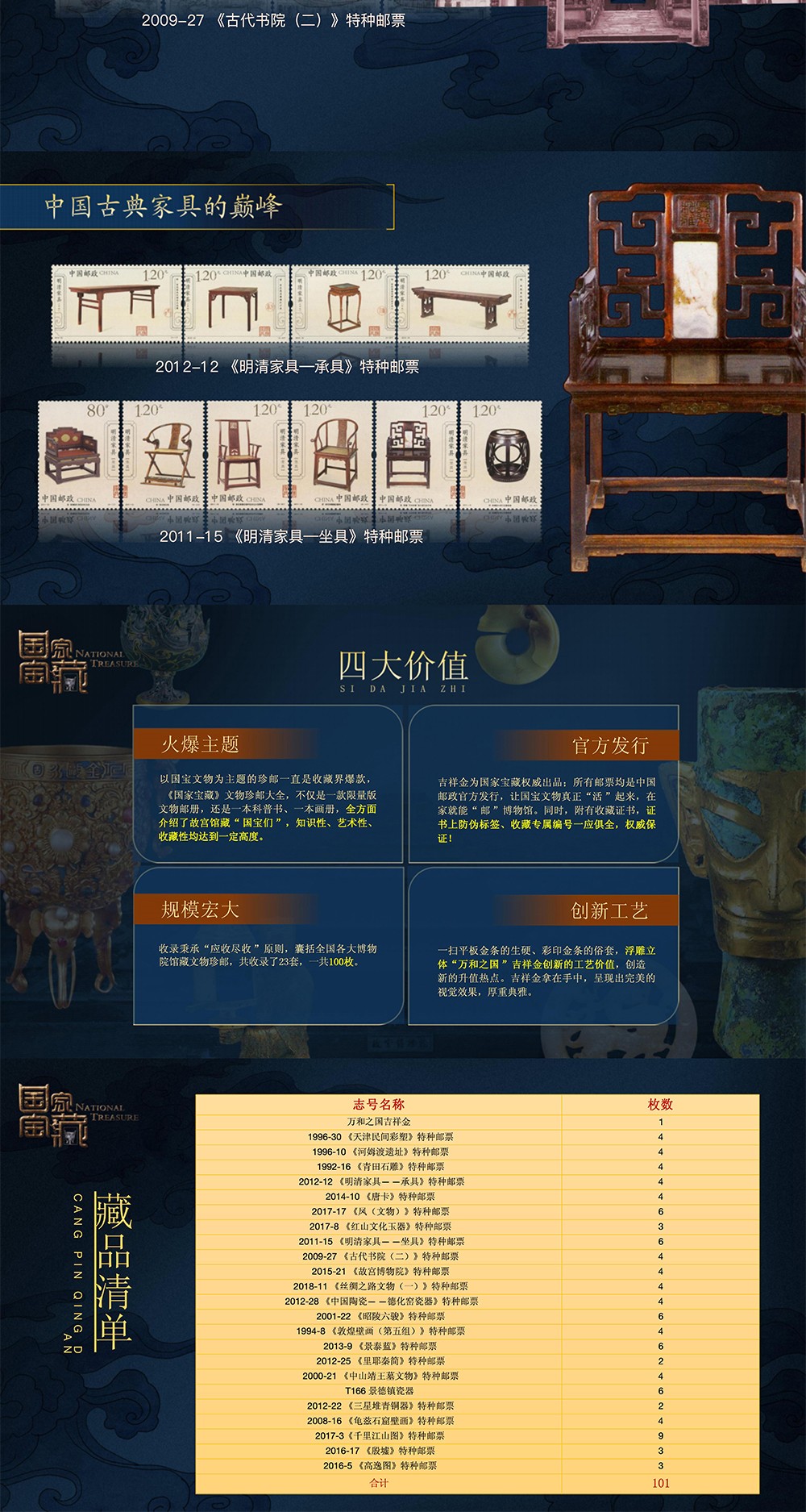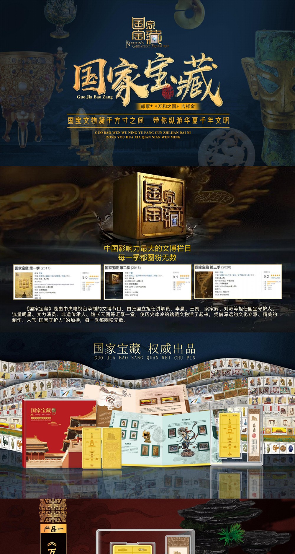 央视《国家宝藏》节目授权 《国家宝藏》珍邮大全 收录23套共100枚文物珍邮和一枚999足金金砖