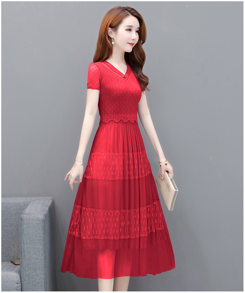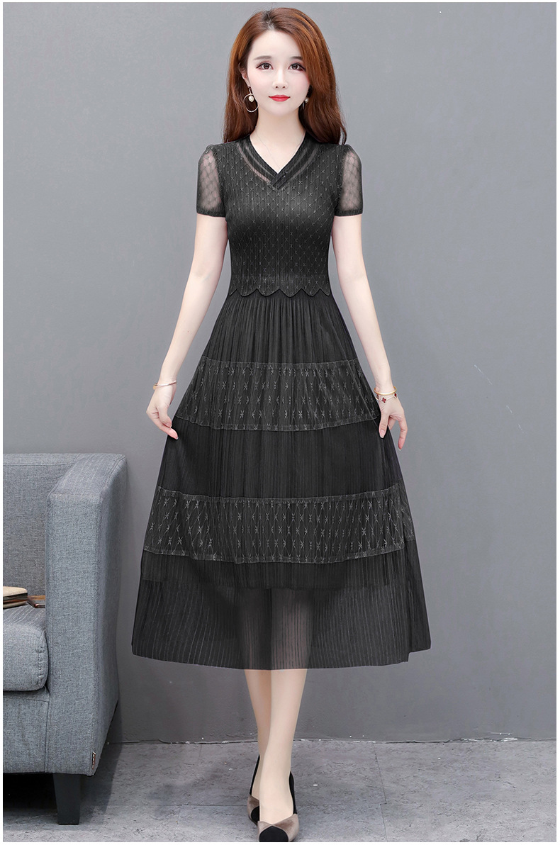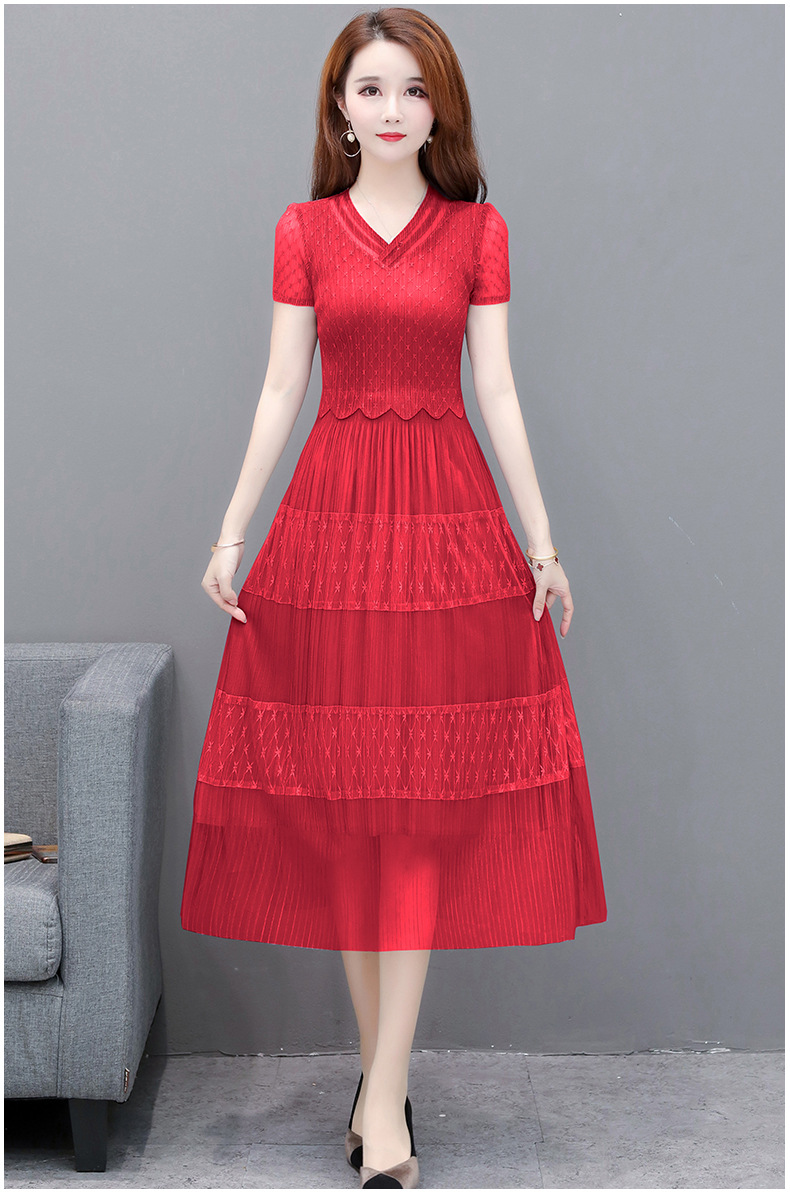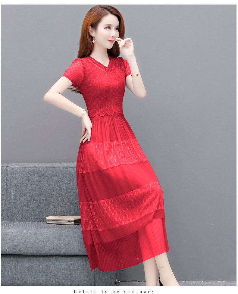 上海旗袍厂YWE-TBEZ-B8082百褶优雅中长连衣裙
