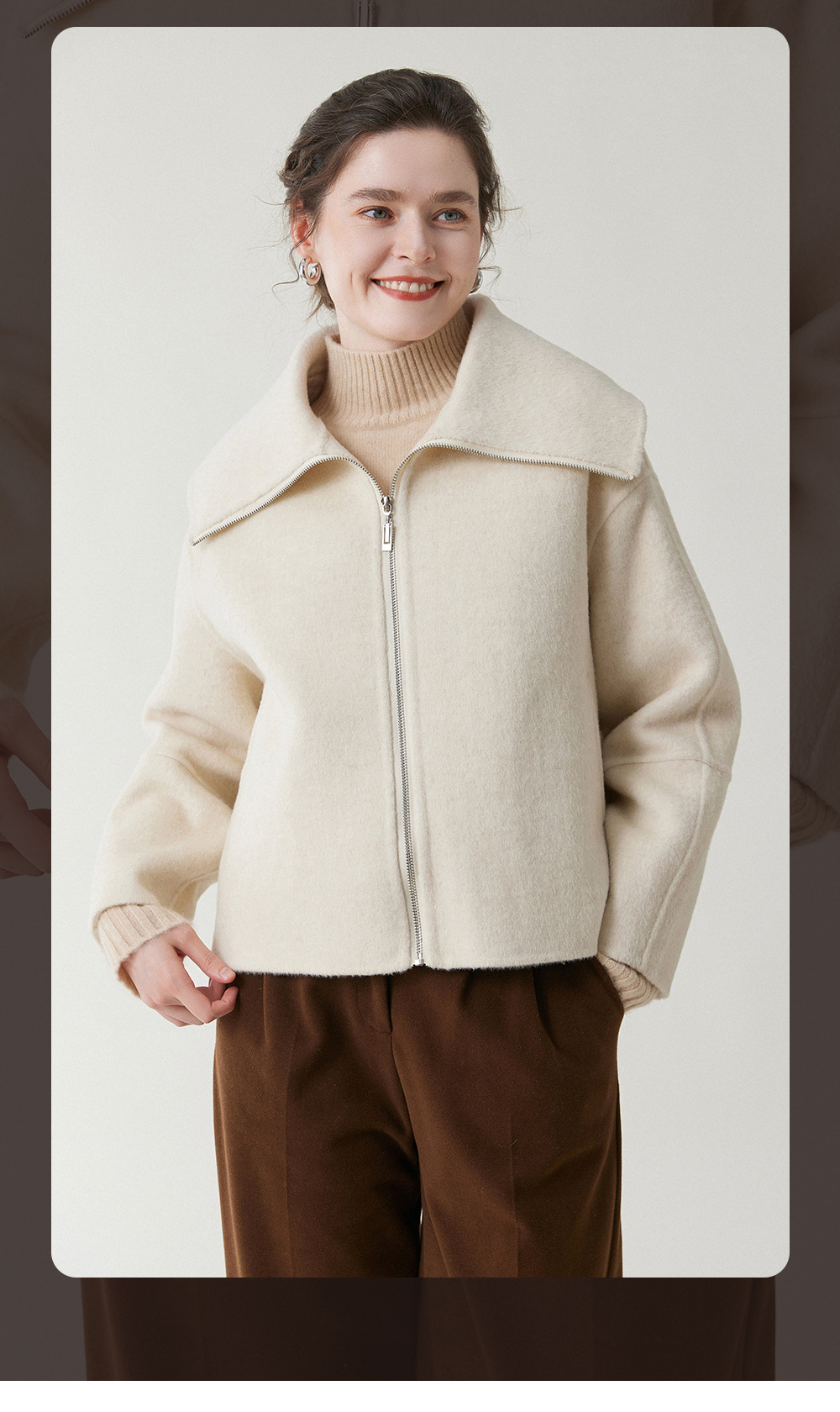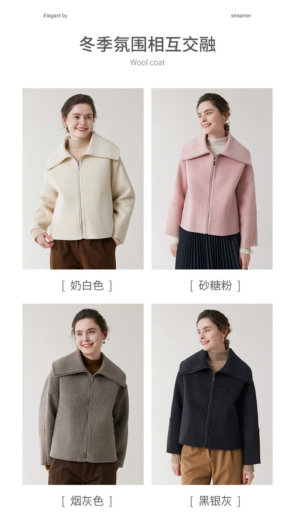 「自」全新升级【铂金会员321/天猫429/差价108】(12839)洛诗琳气质双面毛呢大衣2025秋冬大翻领显瘦纯羊毛短外套