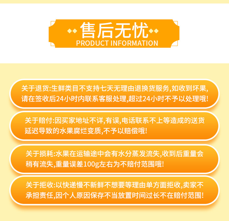 3到货有损坏的情况,保留面单,面单+坏果合拍,24小时内按比例赔付