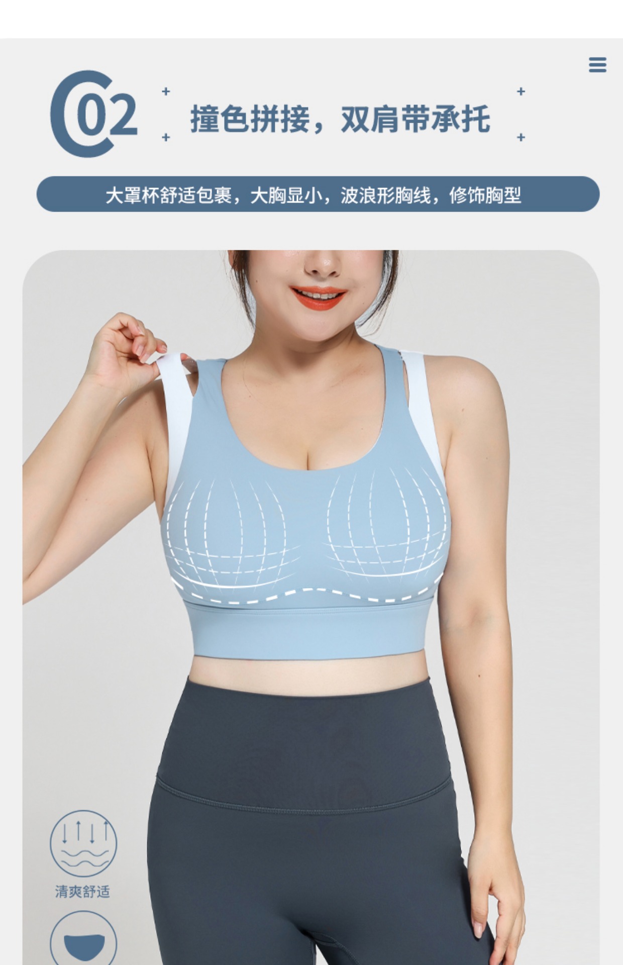 跃牌(呗咪纷纷系列)大码撞色假两件撞色文胸WX608 固定胸垫