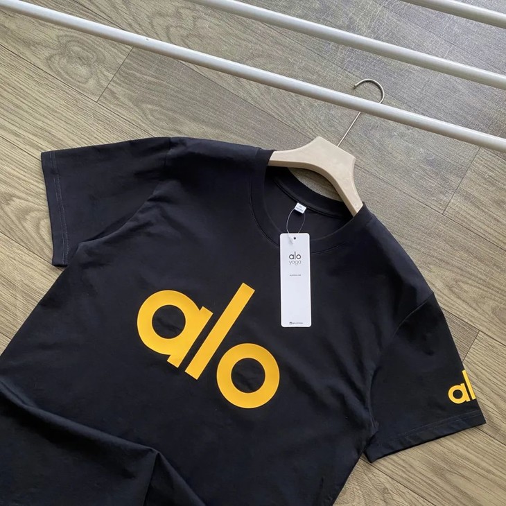 ALO经典发泡字母图案logo印花休闲情侣宽松短袖T恤,