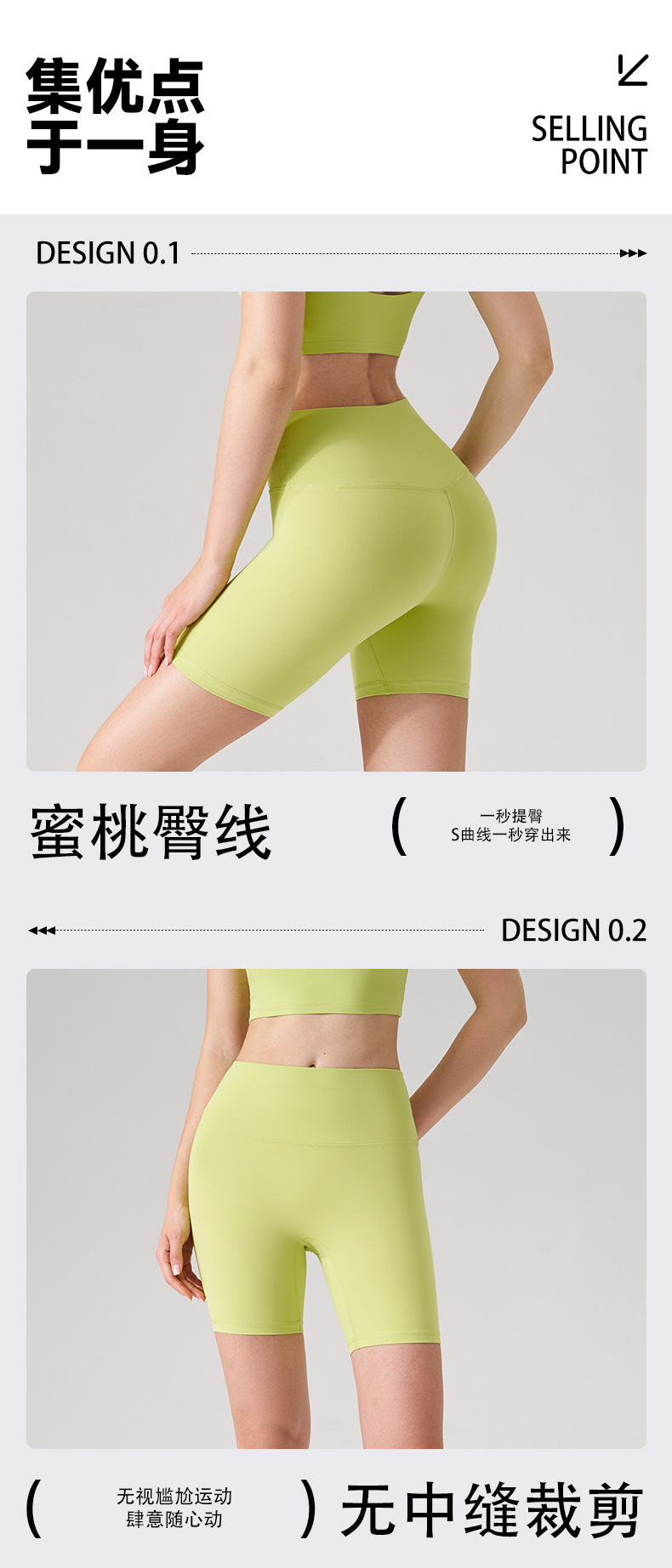 跃牌【轻匀系列】户外无尺码四分瑜伽短裤女士夏季高腰无痕健身运动紧身骑行瑜伽裤DK338