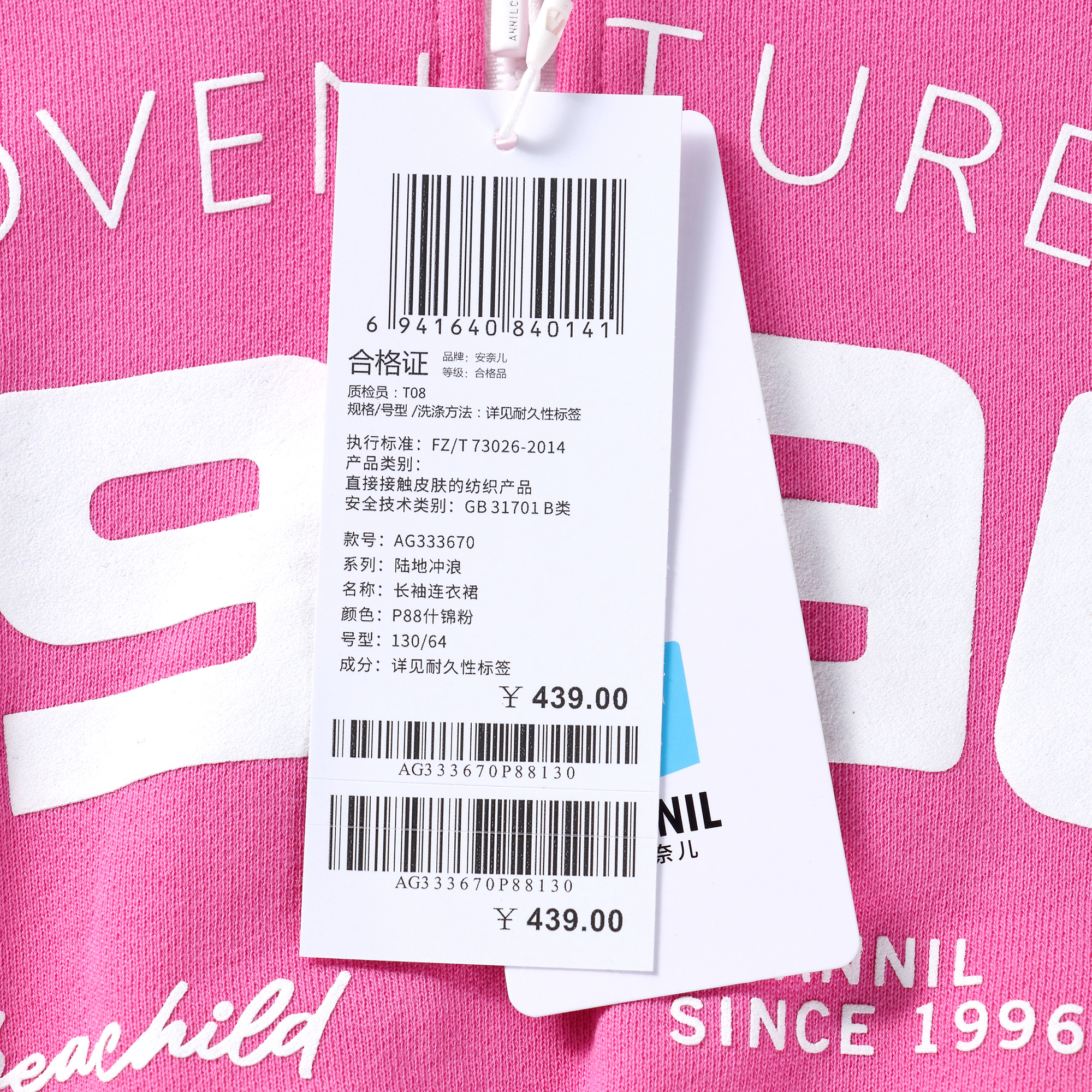 【实体店同款】女童长袖连衣裙2023年秋季新款安奈儿童装AG333670