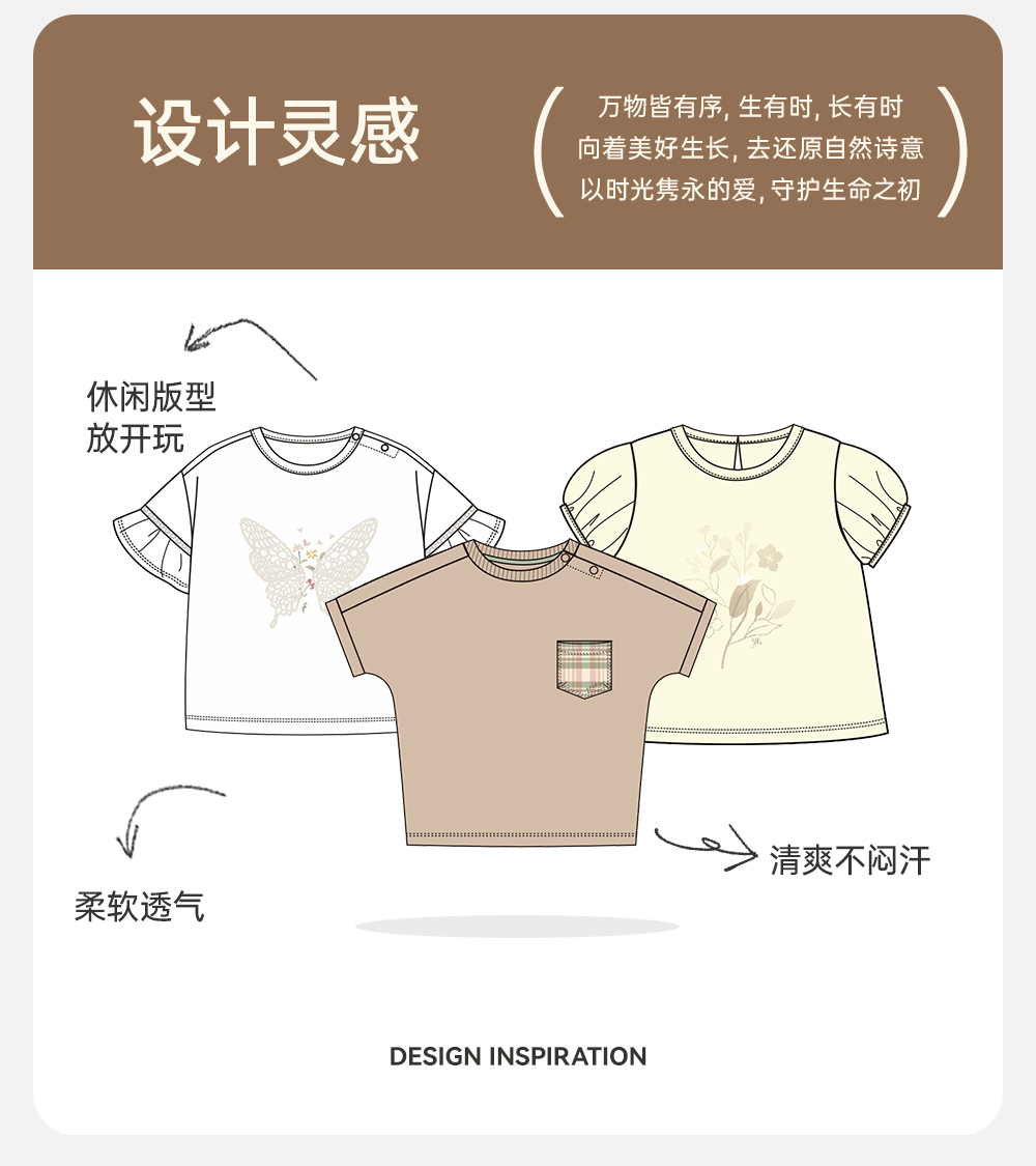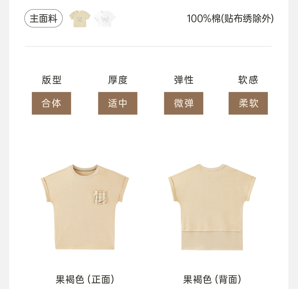 【商场同款】英氏儿童T恤夏季短袖透气男女宝三防套头衫新款