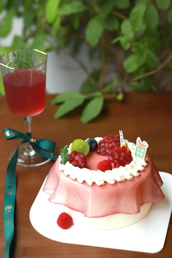以醇香牛乳戚风为底,轻盈如云。夹层铺满时令鲜果与手工草莓覆盆子果酱,果酸与乳香交织,层次分明。顶层突尼斯石榴凝冻如琥珀流淌。镶嵌覆盆子与青提,宛如红宝石缀于晨曦露珠之中。每一口皆是一场味觉与视觉的盛宴,精致而不失自然风味,诠释现代甜品的艺术之美。