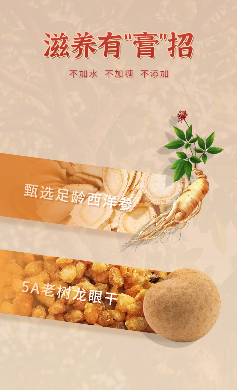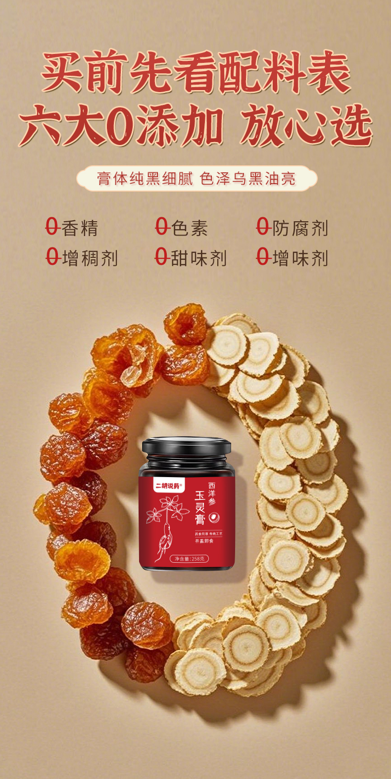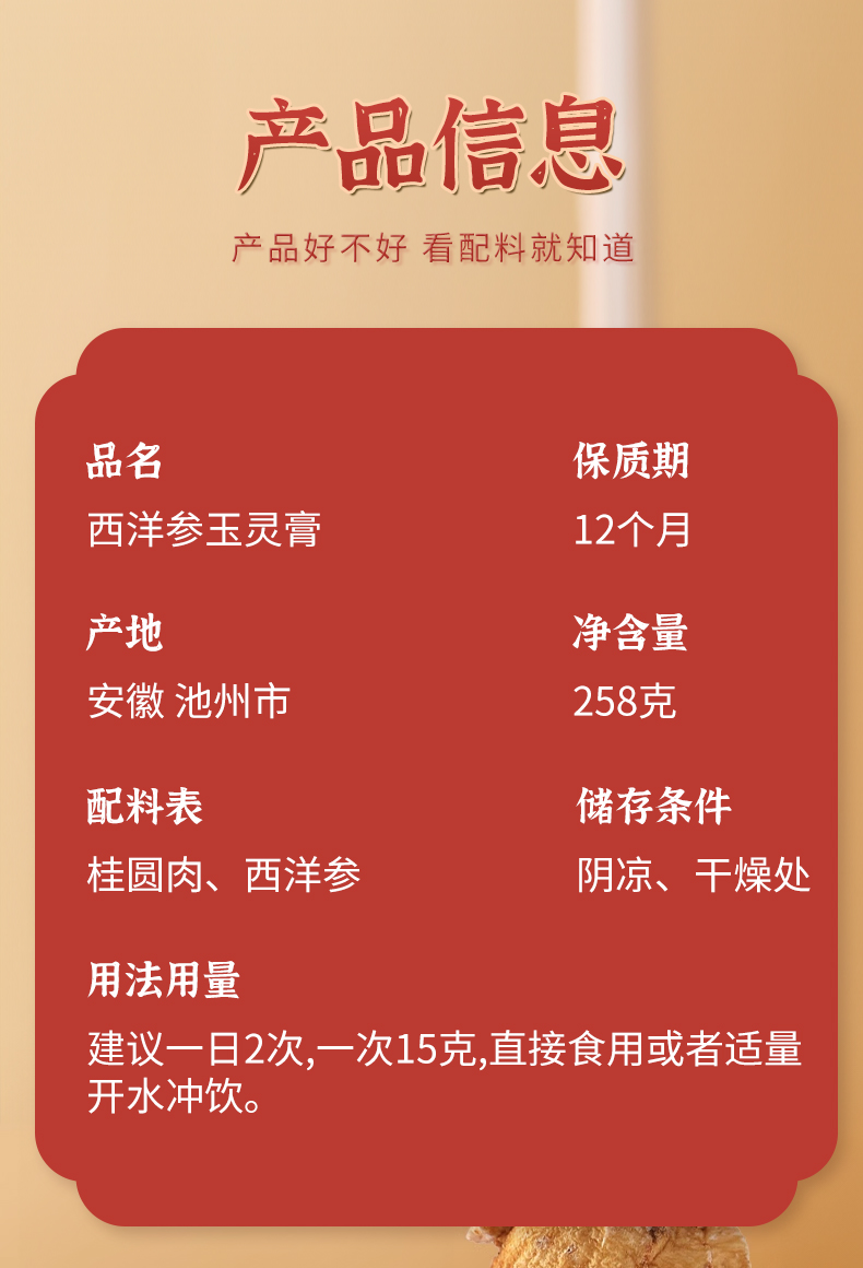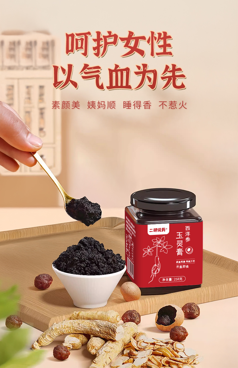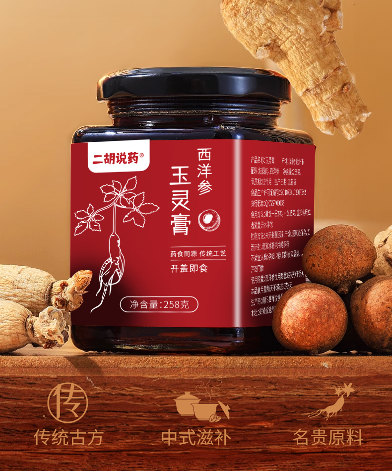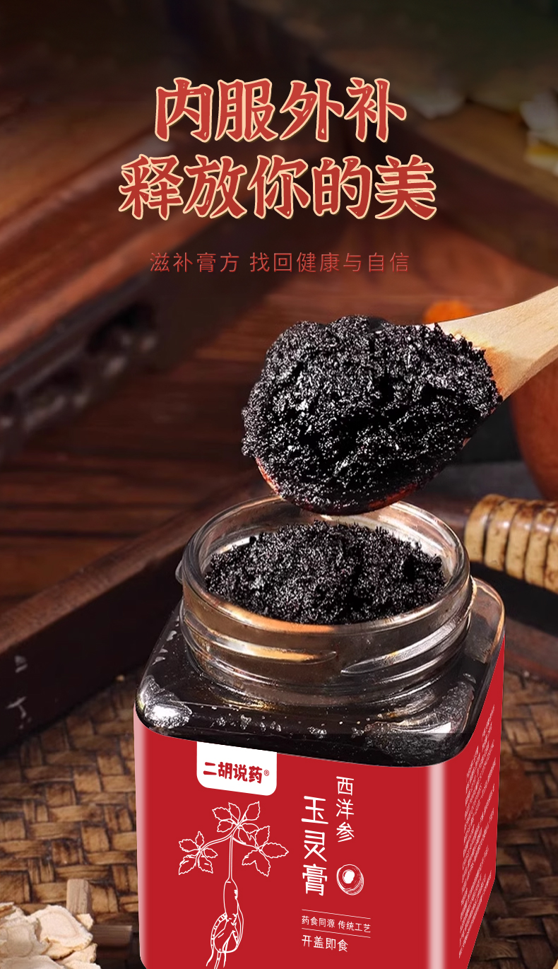 西洋参玉灵膏 文火蒸40小时以上 口感细腻醇和微苦回甘 258克/罐