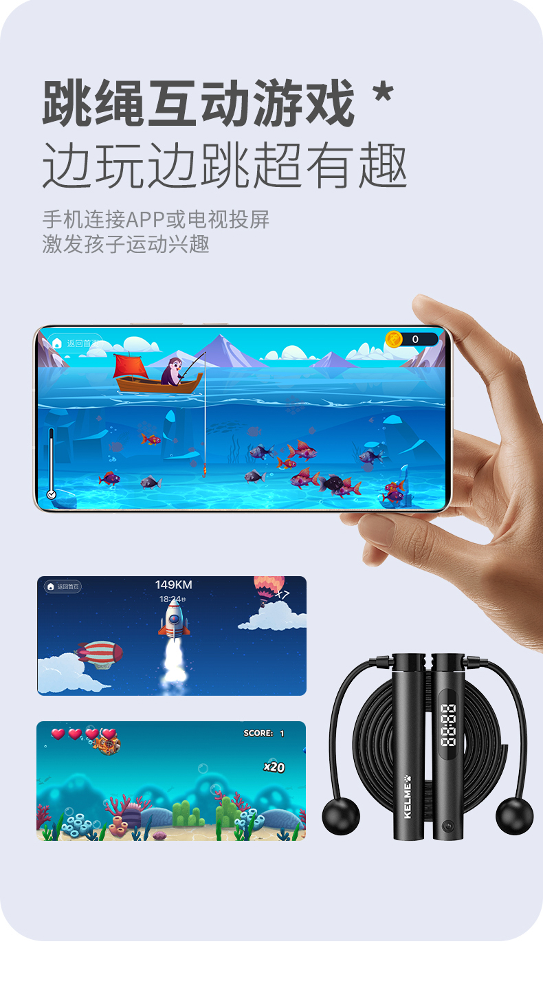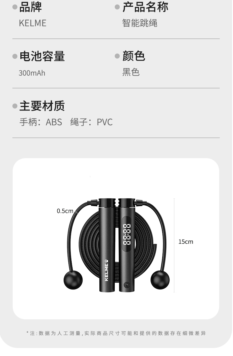 KELME卡尔美新款运动健身智能APP趣味运动跳绳